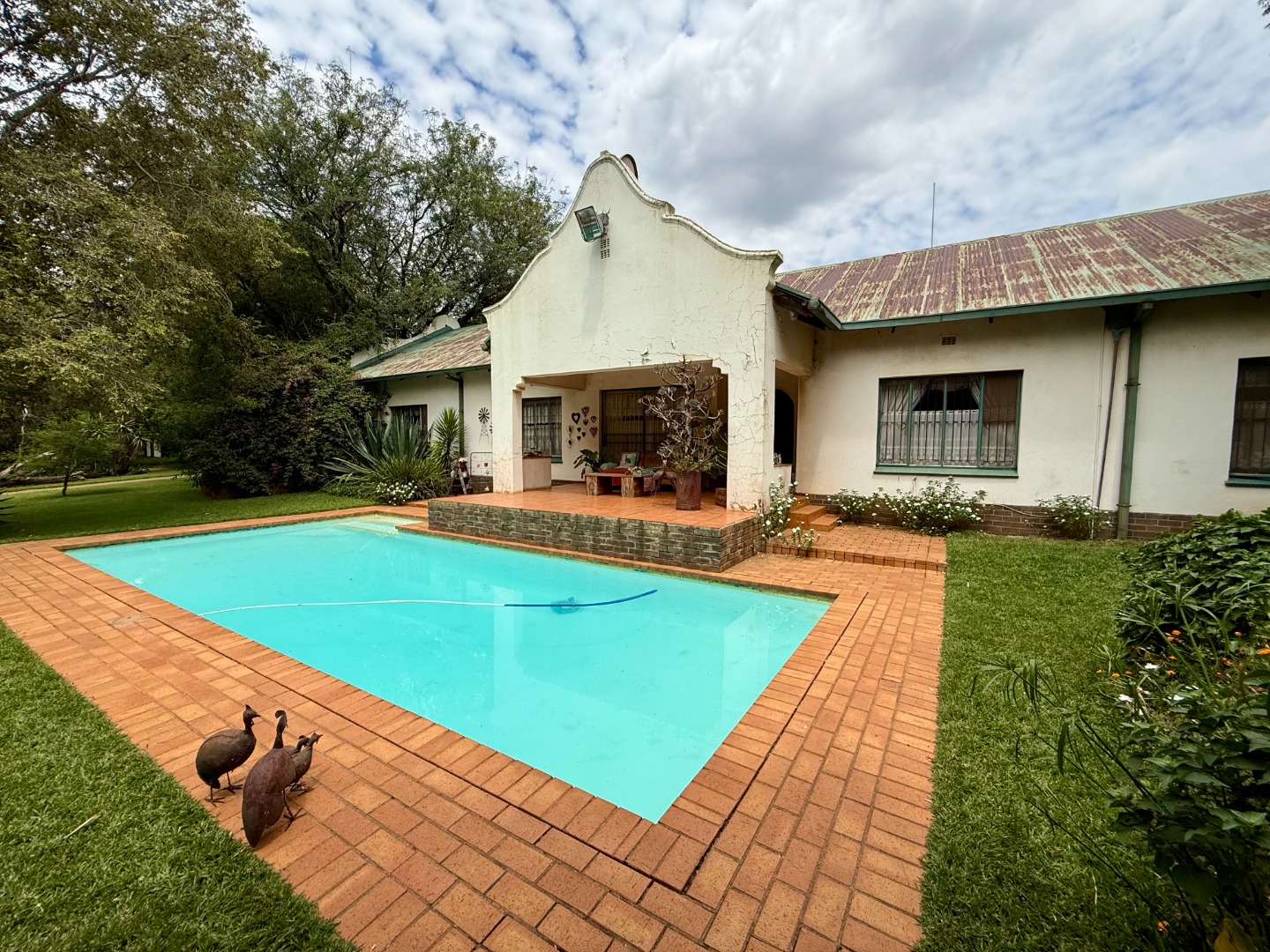 The second property is home to a 4 bedroom house offering 2 lounge areas, a study, a warm dining room, a lovely rustic kitchen with scullery and a fantastic pool area. Outside you will find 2 domestic rooms, a large warehouse and so much space to still develop.