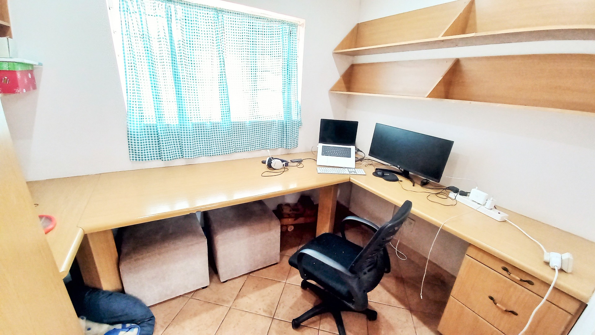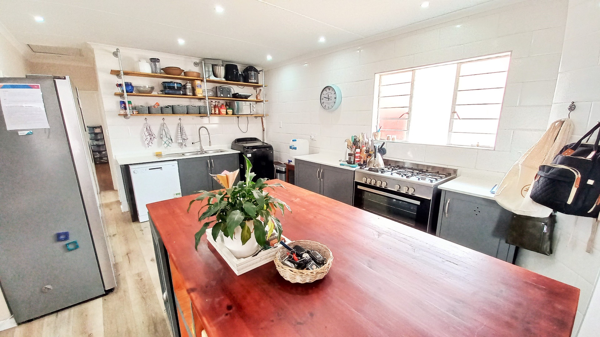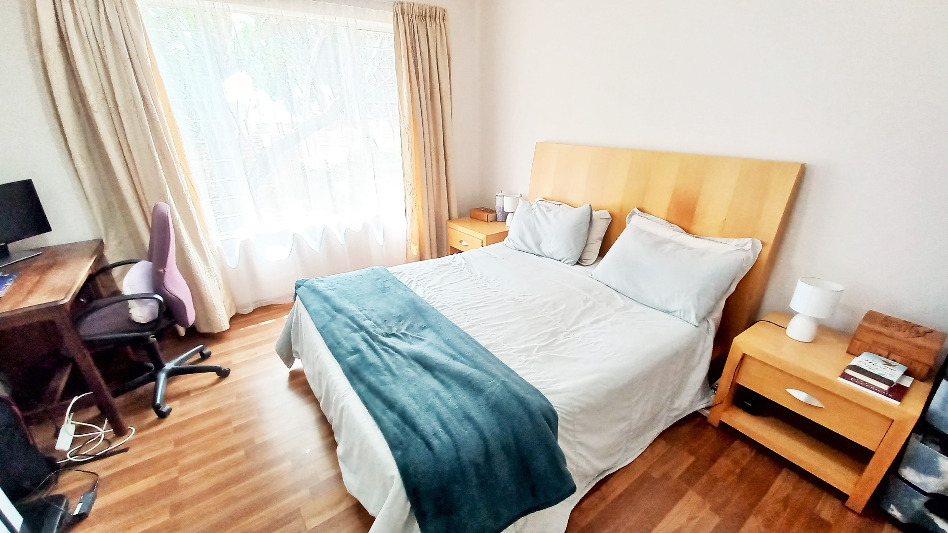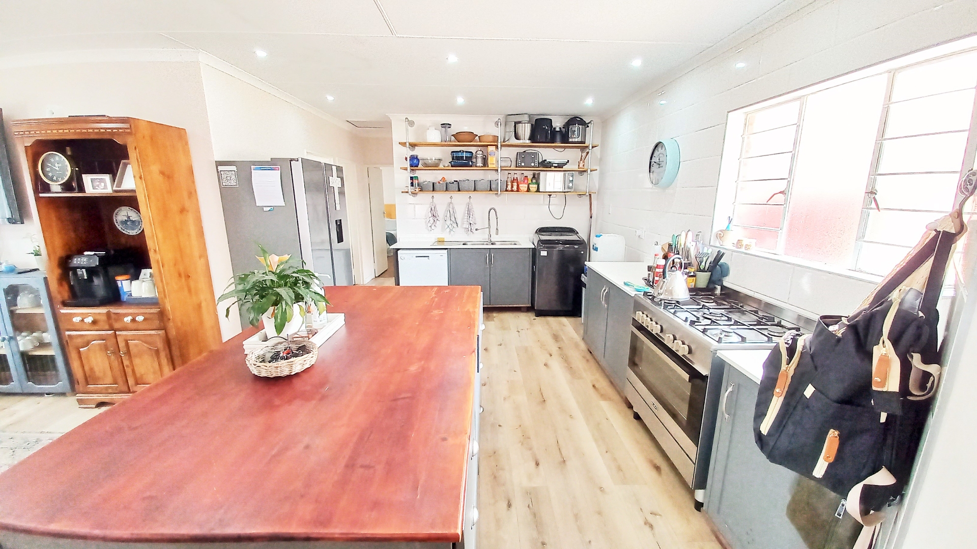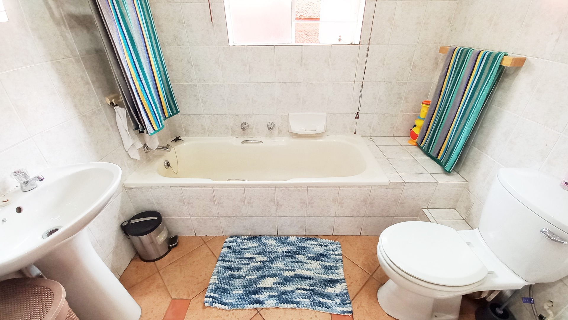 This residence offers four comfortable bedrooms, providing ample space for family or guests. The two bathrooms include one en-suite, ensuring convenience and privacy. Each bedroom benefits from natural light, while security bars on windows throughout the home offer peace of mind.