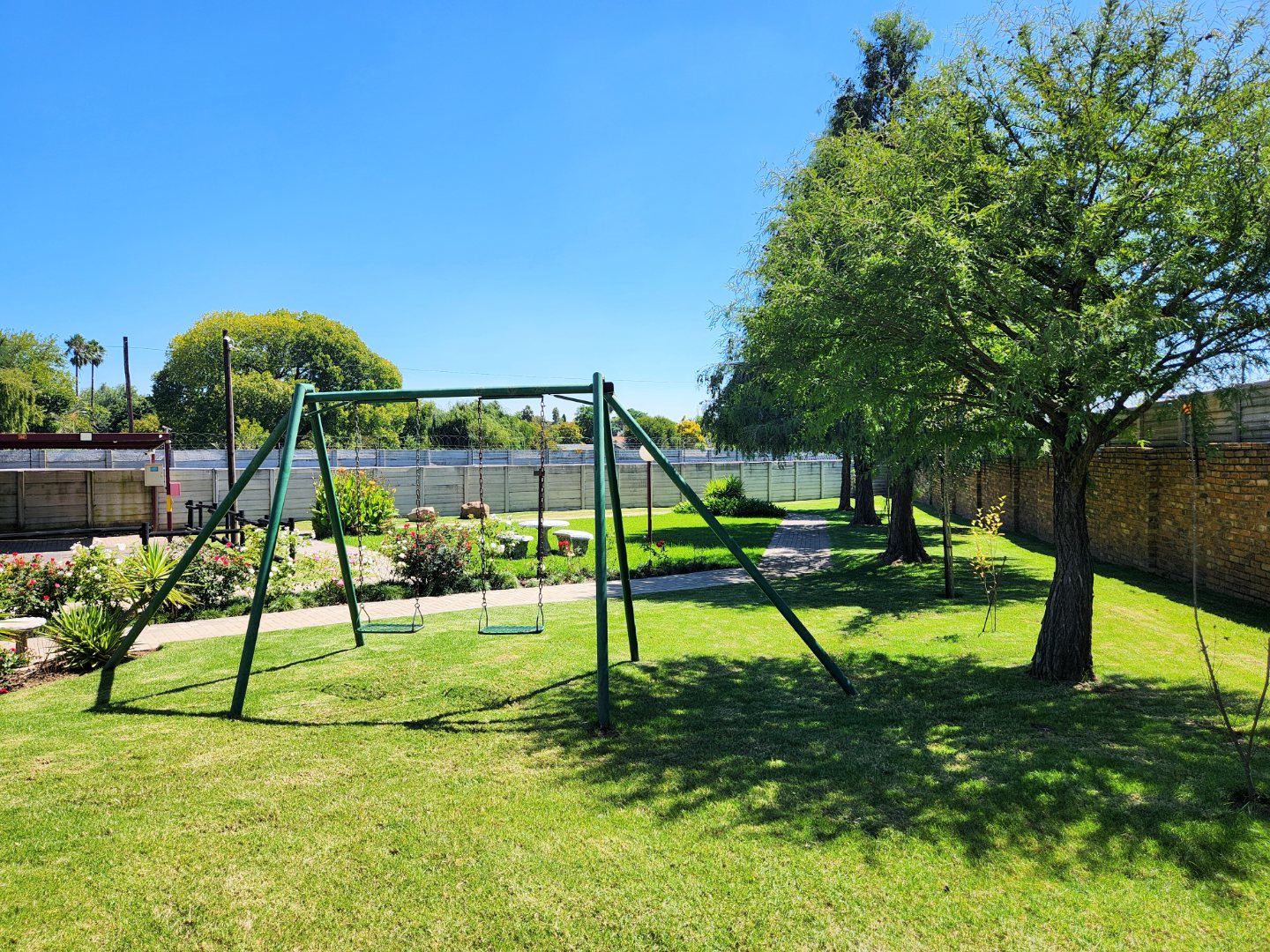 Set on a 200 sqm erf, the property boasts a big private walled garden, ideal for outdoor enjoyment and pet owners, as pets are allowed. A refreshing comunal swimming pool provides a perfect escape during warmer months. Parking is well catered for with a single garage and an additional car-port parking space, accessible via a paved driveway. There is also lots of visitors parking.