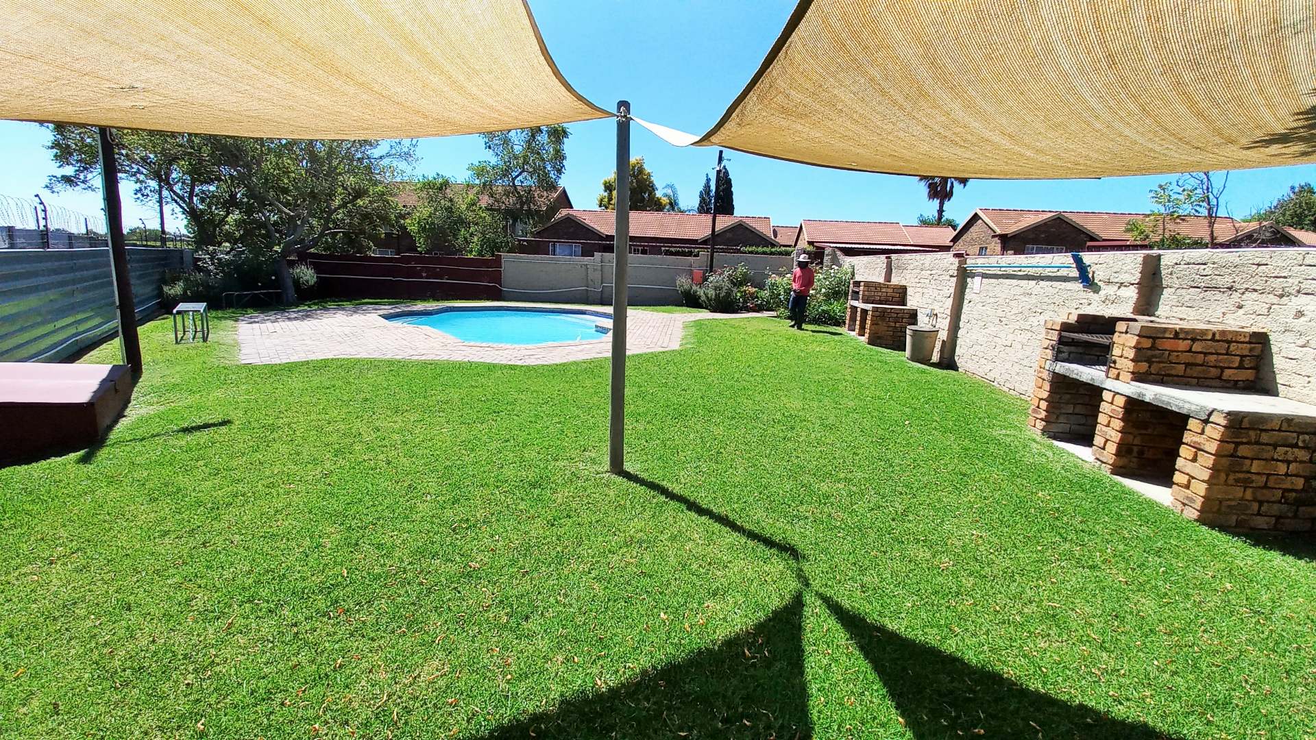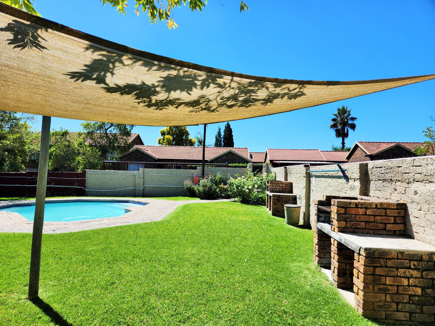 Set on a 200 sqm erf, the property boasts a big private walled garden, ideal for outdoor enjoyment and pet owners, as pets are allowed. A refreshing comunal swimming pool provides a perfect escape during warmer months. Parking is well catered for with a single garage and an additional car-port parking space, accessible via a paved driveway. There is also lots of visitors parking.