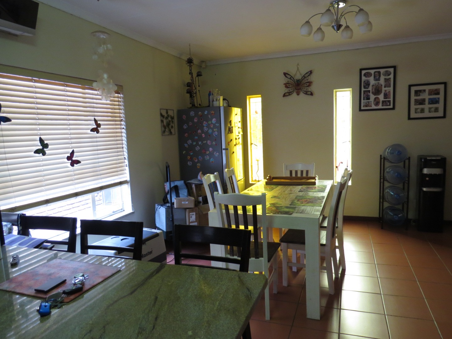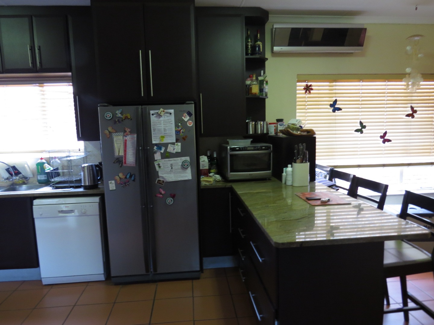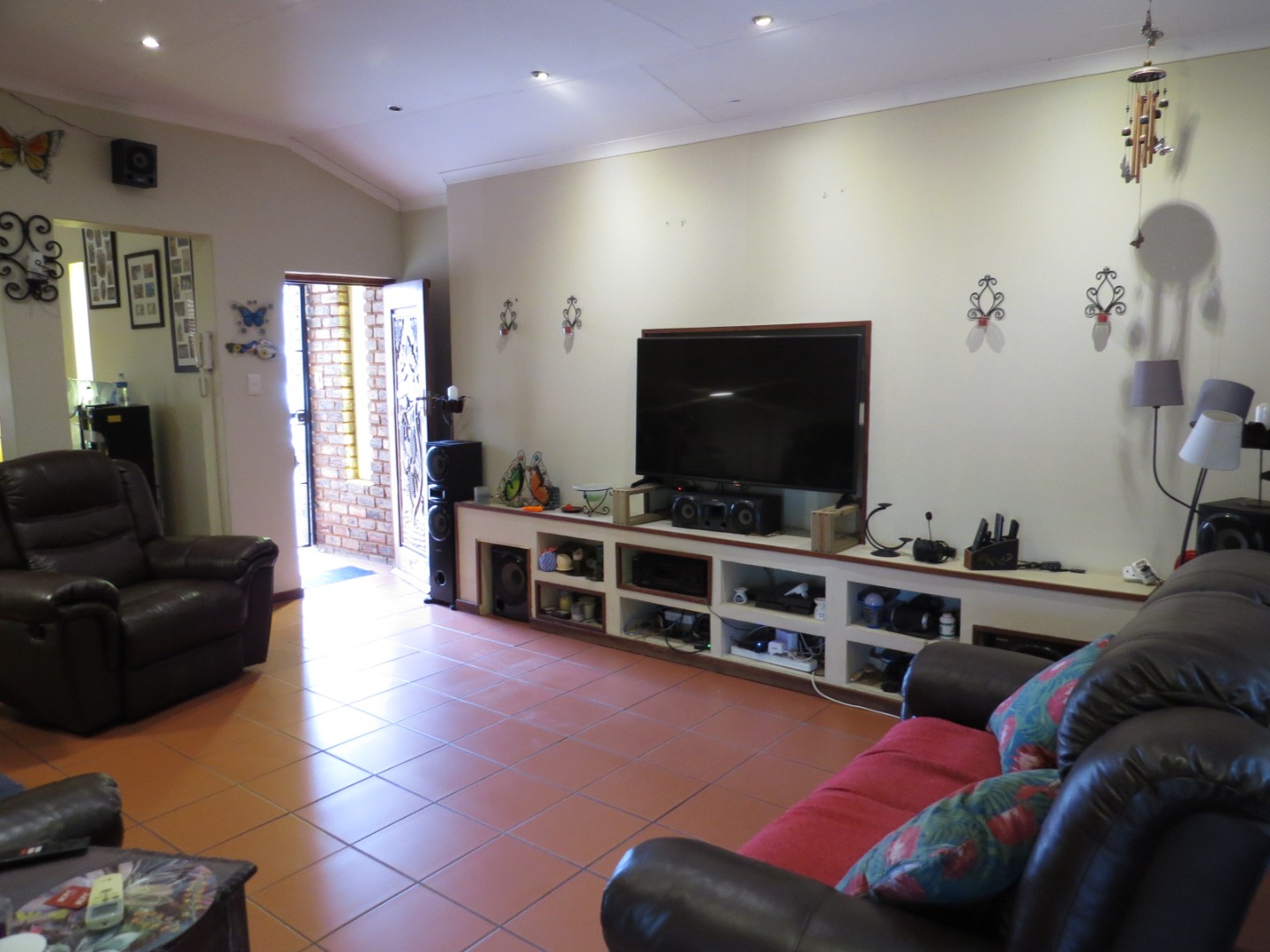Nestled in the suburban heart of The Reeds, Centurion, this property offers a convenient South African lifestyle. Step inside to discover a well-appointed interior featuring a spacious lounge and a dedicated dining area, both benefiting from durable tiled flooring and vaulted ceilings that enhance the sense of space. The modern kitchen boasts dark brown cabinetry, granite countertops, integrated oven and a stainless steel extractor hood, as well as a practical breakfast bar. Air conditioning units ensure comfort throughout the house, complemented by a dedicated study, ideal for working from home.