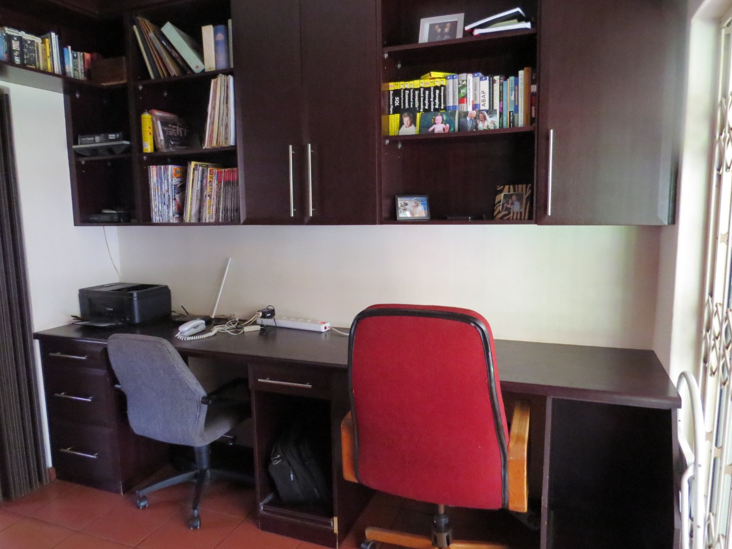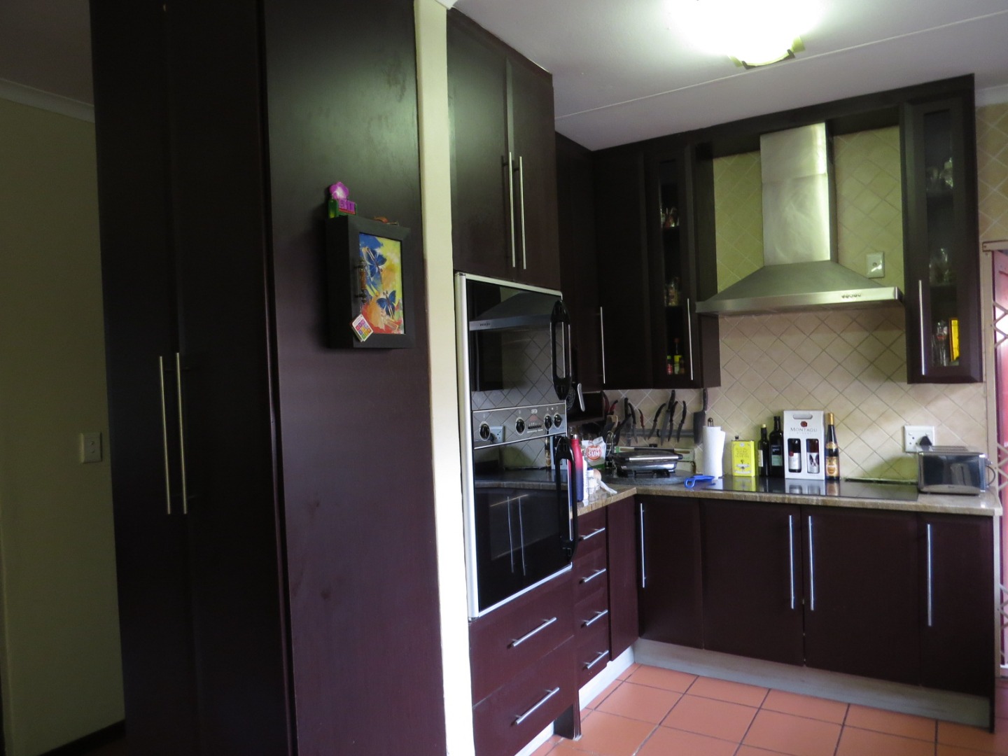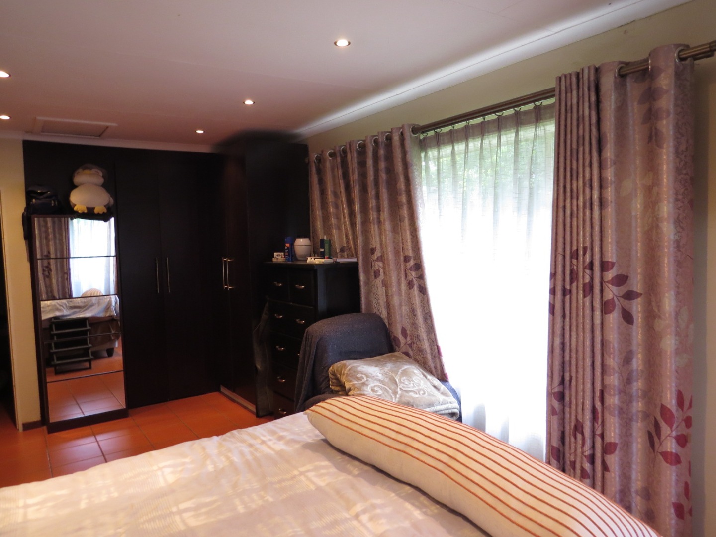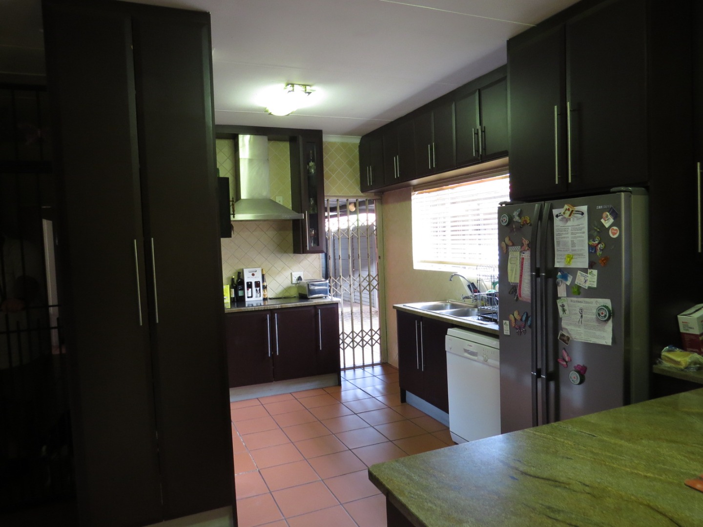 Nestled in the suburban heart of The Reeds, Centurion, this property offers a convenient South African lifestyle. Step inside to discover a well-appointed interior featuring a spacious lounge and a dedicated dining area, both benefiting from durable tiled flooring and vaulted ceilings that enhance the sense of space. The modern kitchen boasts dark brown cabinetry, granite countertops, integrated oven and a stainless steel extractor hood, as well as a practical breakfast bar. Air conditioning units ensure comfort throughout the house, complemented by a dedicated study, ideal for working from home.