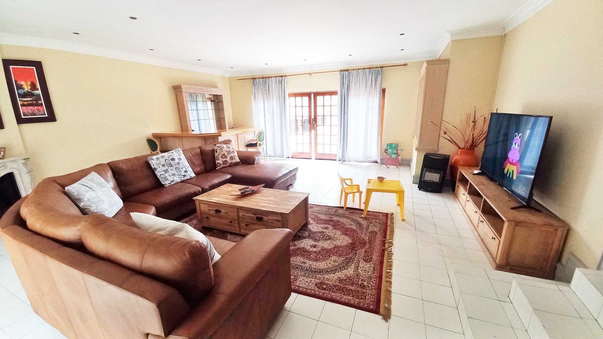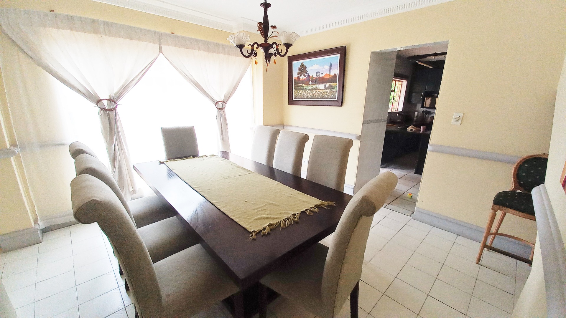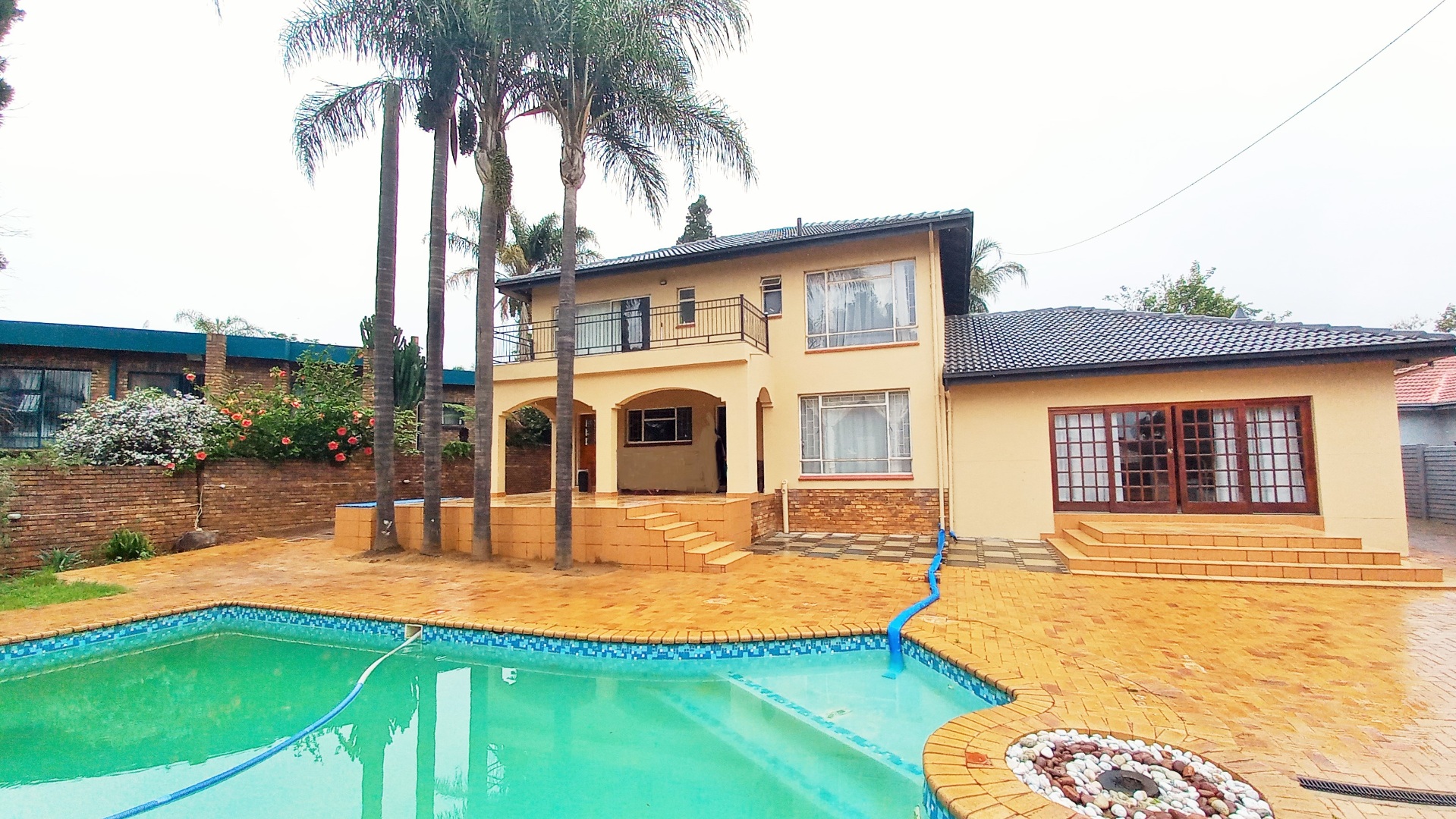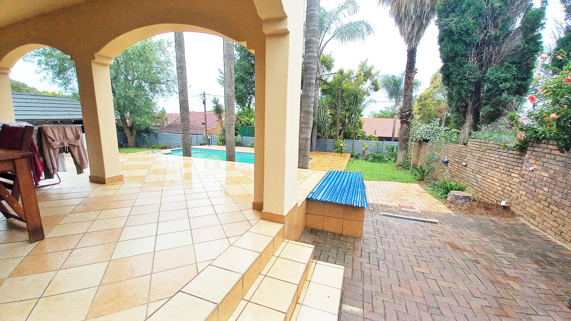 This distinguished two-story residence in Zwartkop, Centurion, presents a commanding street presence with its traditional red tiled roof, secure perimeter fencing, and a paved driveway flanked by mature trees. Upon entry, the home reveals a meticulously appointed interior featuring durable tiled flooring throughout. The ground floor encompasses an inviting entrance hall, two spacious lounges, a dedicated dining room and a stydy/office area, all benefiting from abundant natural light. A versatile multi-functional room, currently configured as a home office, offers direct outdoor access and includes a fireplace, enhancing its utility.