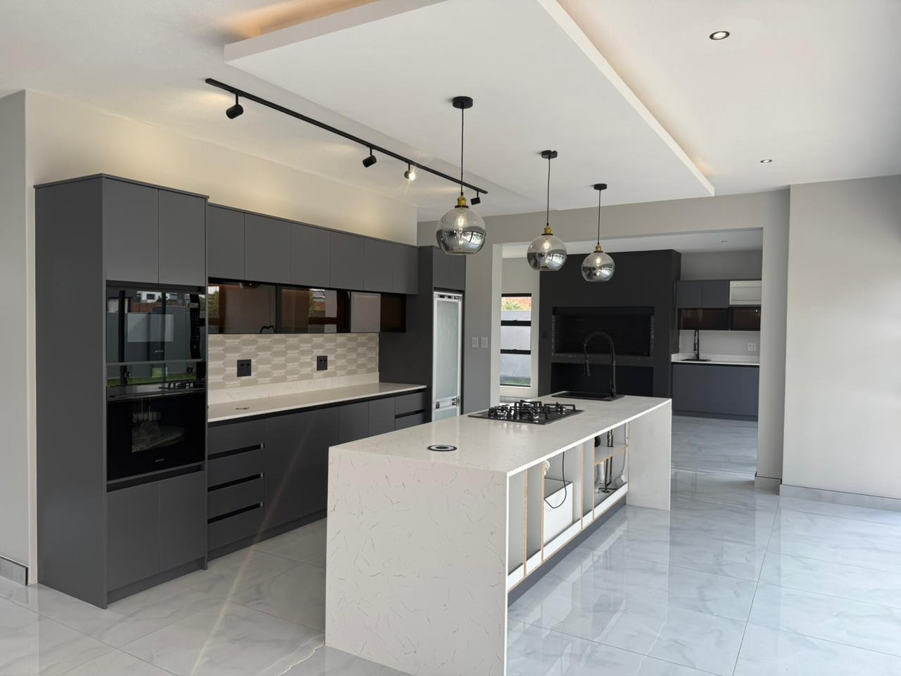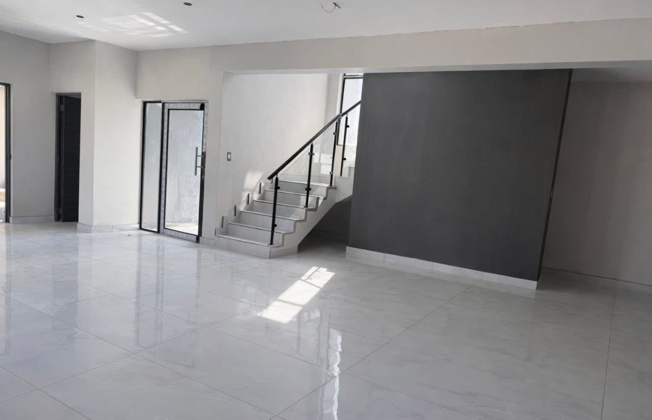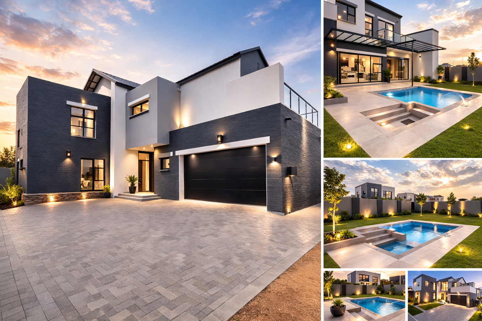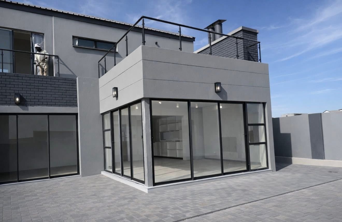 This contemporary residence, nestled within a secure estate, offers a sophisticated lifestyle with its striking modern architectural design. The property boasts a sleek grey and white facade, complemented by dark stone cladding, creating impressive kerb appeal. Step inside to discover an open-concept layout featuring a spacious lounge and dining area, perfect for both relaxation and entertaining. The heart of the home is a state-of-the-art kitchen, equipped with sleek dark grey cabinetry, light quartz countertops, and a large island with a gas cooktop, all set against glossy light grey floor tiles. High ceilings and abundant natural light, enhanced by large windows and a skylight, create an airy and inviting atmosphere throughout. Modern light fixtures add a touch of elegance. The home offers four well-appointed bedrooms and three and a half bathrooms, including two en-suite bathrooms for ultimate comfort and privacy. A convenient guest toilet is also available. Each space is designed with clean lines and neutral palettes, providing a versatile backdrop for personal style. Outdoor living is a highlight, with a private plunge pool and a spacious tiled patio, ideal for al fresco dining and relaxation. A built-in braai area with an integrated sink extends entertaining possibilities. The well-maintained garden and lawn provide a tranquil green space, while a large paved driveway and double garage offer ample parking. Located within an estate, residents benefit from enhanced security, including access control. This modern home combines luxury, comfort, and practicality, making it an ideal choice for discerning buyers seeking a contemporary South African lifestyle. Key Features: * 4 Bedrooms, 3.5 Bathrooms (2 En-suite) * Modern Architectural Design * Sleek Kitchen with Gas Cooktop * Private Plunge Pool & Tiled Patio * Built-in Braai Area * Double Garage & Paved Driveway * High Ceilings & Ample Natural Light * Secure Estate Living * Erf Size: 585 sqm