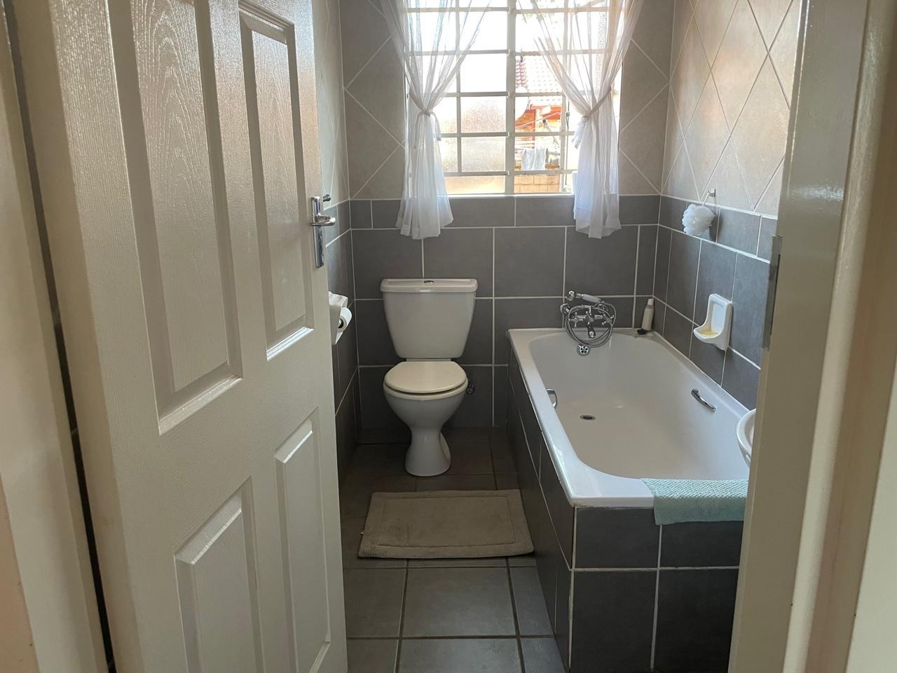 The main bedroom is clad with laminated flooring, built-in cupboards and an en suite bathroom with a shower. The second room is also spacious with built-in cupboards and a separate bathroom with a tub.