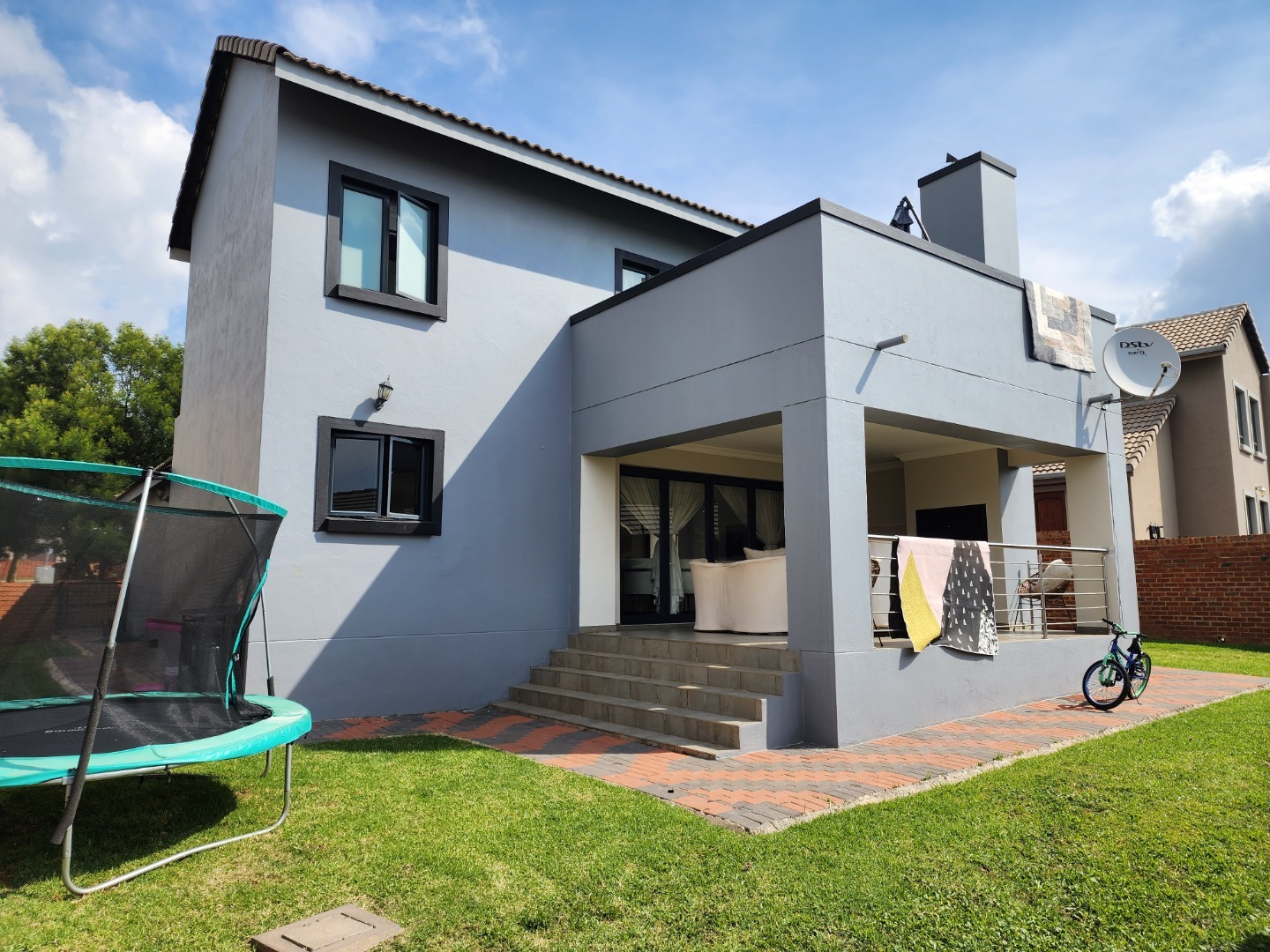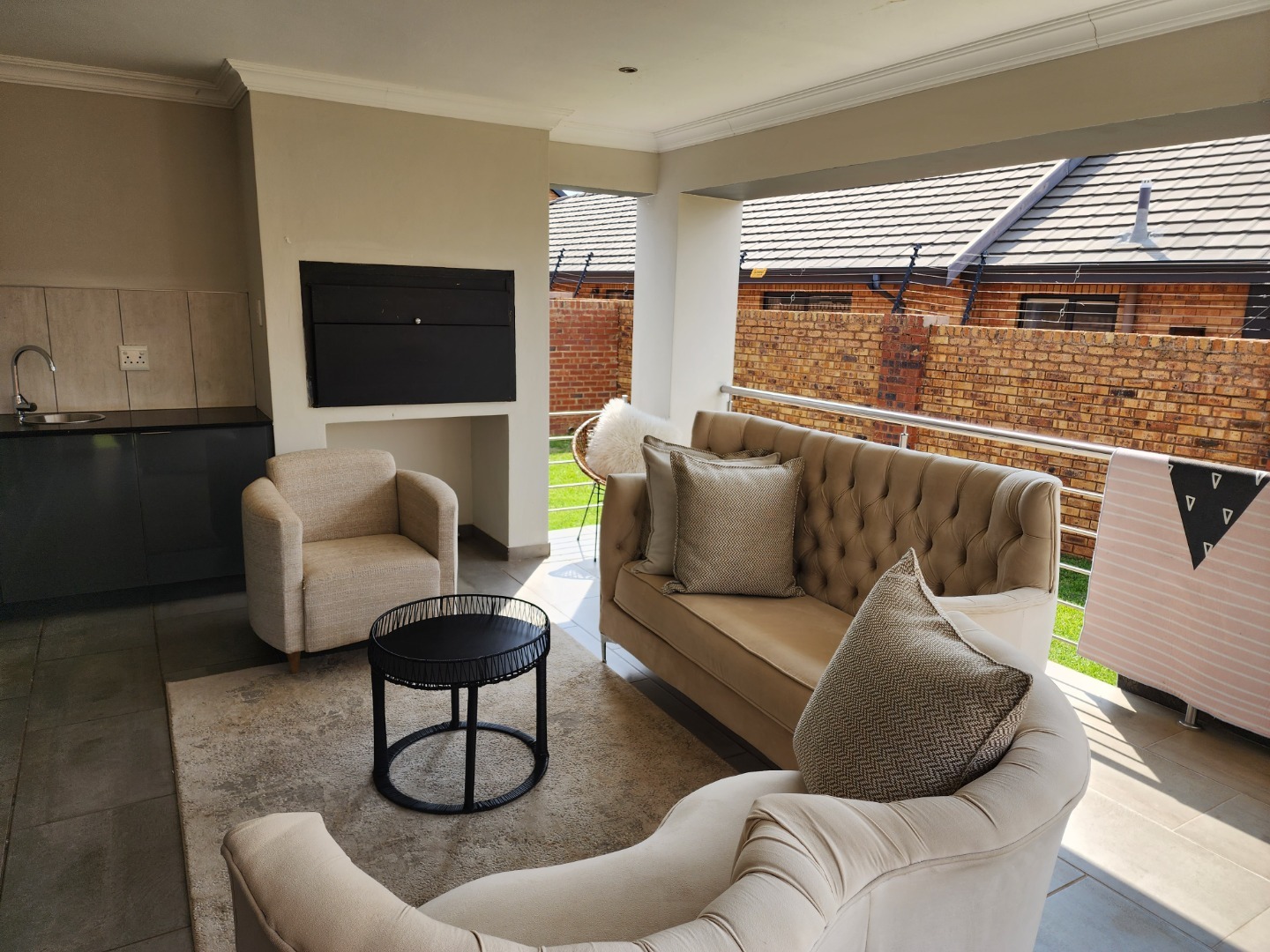 Sliding doors leading to a covered patio with built-in braai.