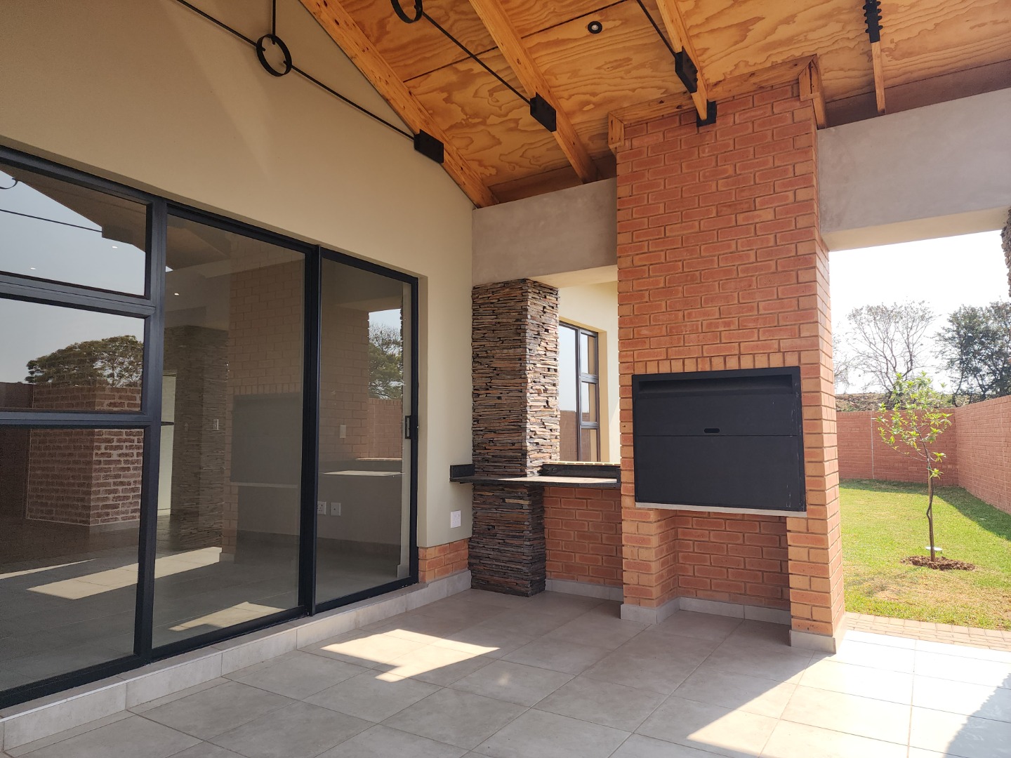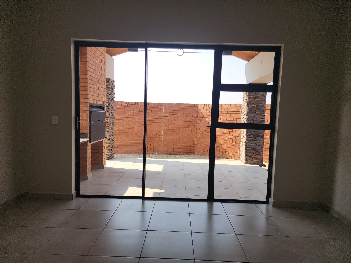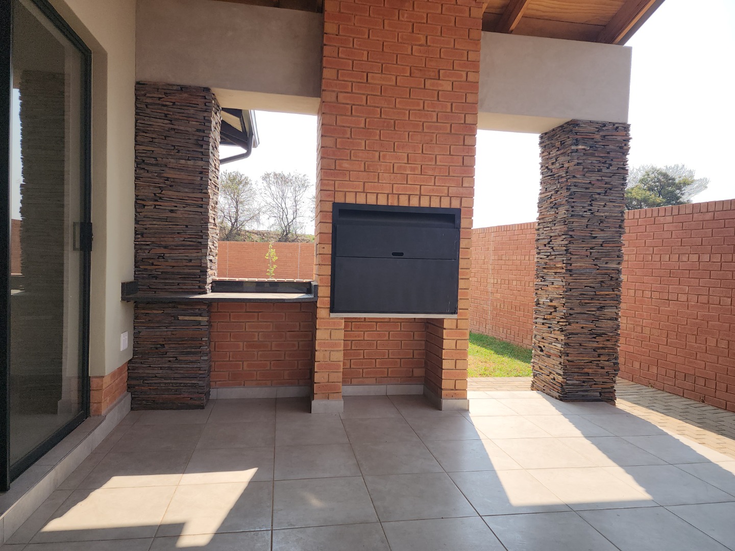 • Living area opens to a patio with built-in braai, surrounded by a small garden