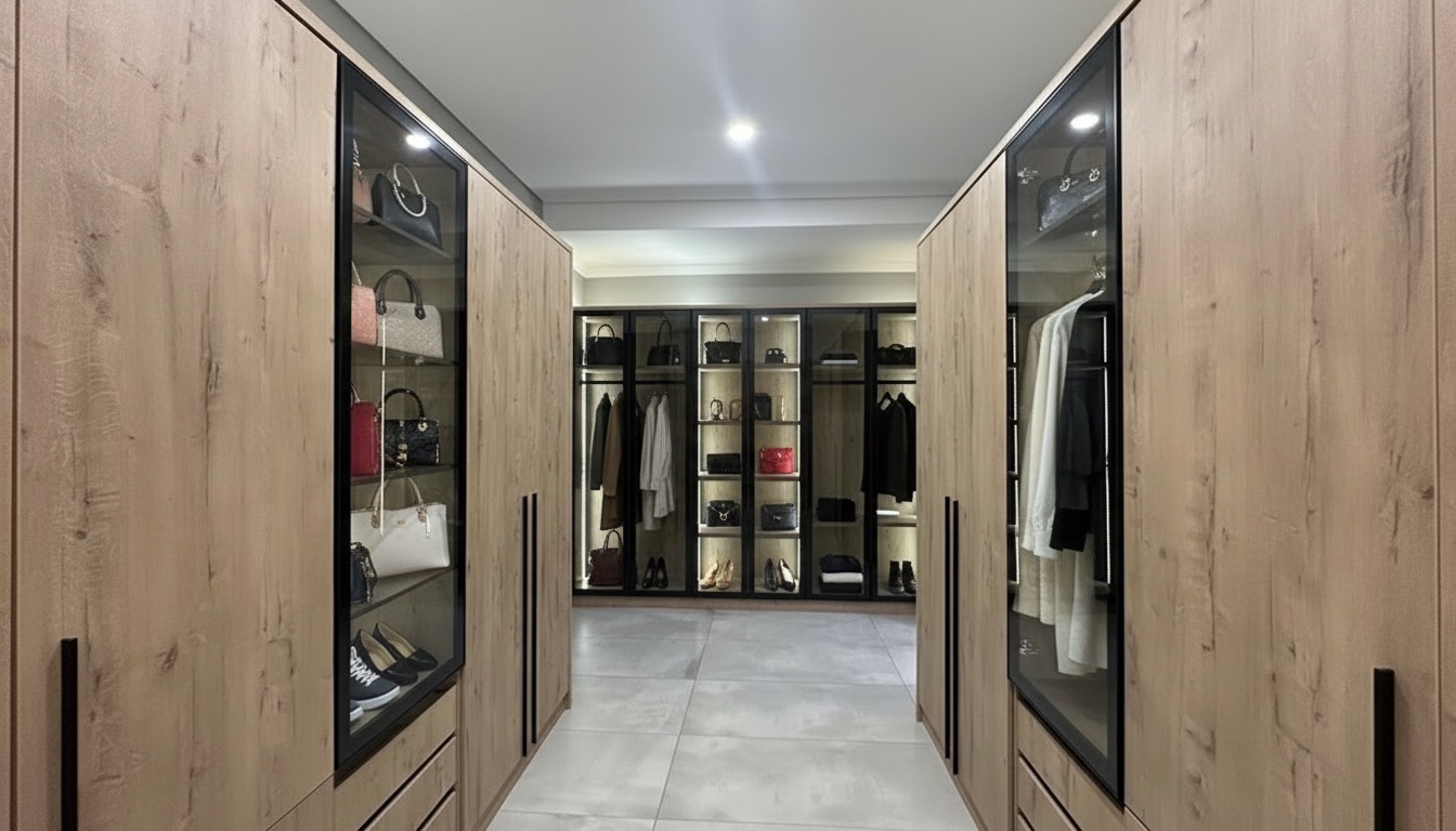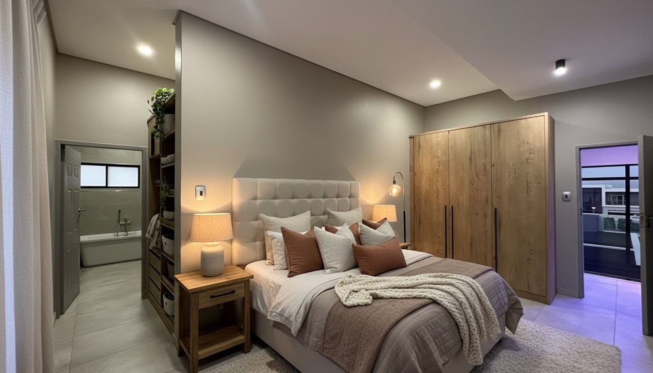 And the main bedroom? Exceptionally large. Large enough for a private lounge within the suite. The bold walk-in cupboard continues the statement design. (Rooms have been styled with AI furnishings to help you visualise the scale and potential.)