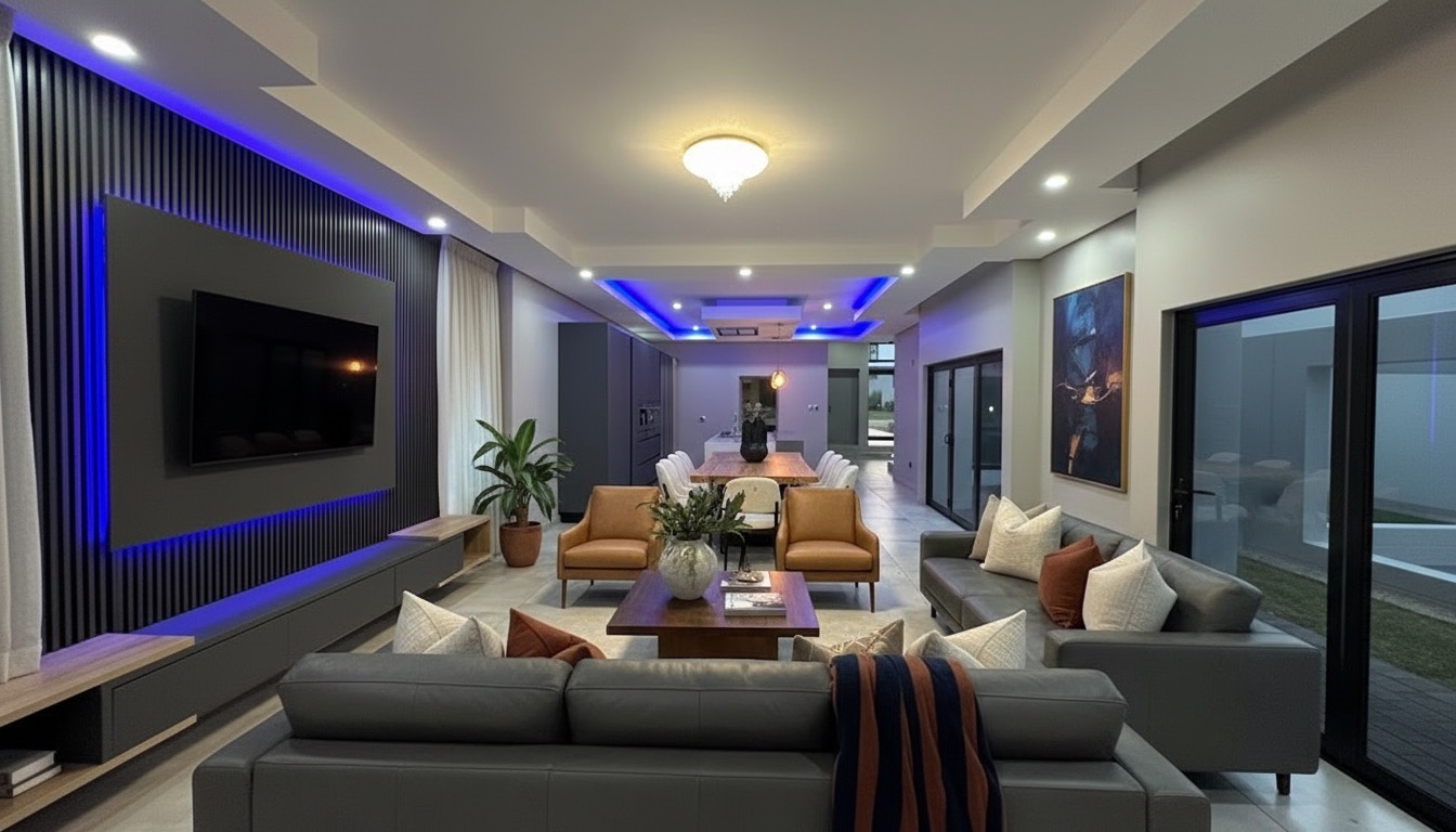 - Expansive living area flowing to braai area and pool