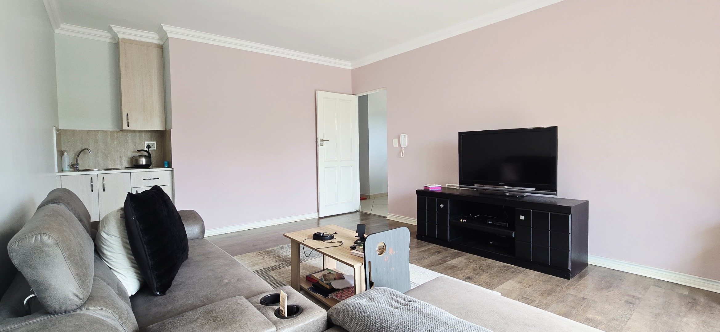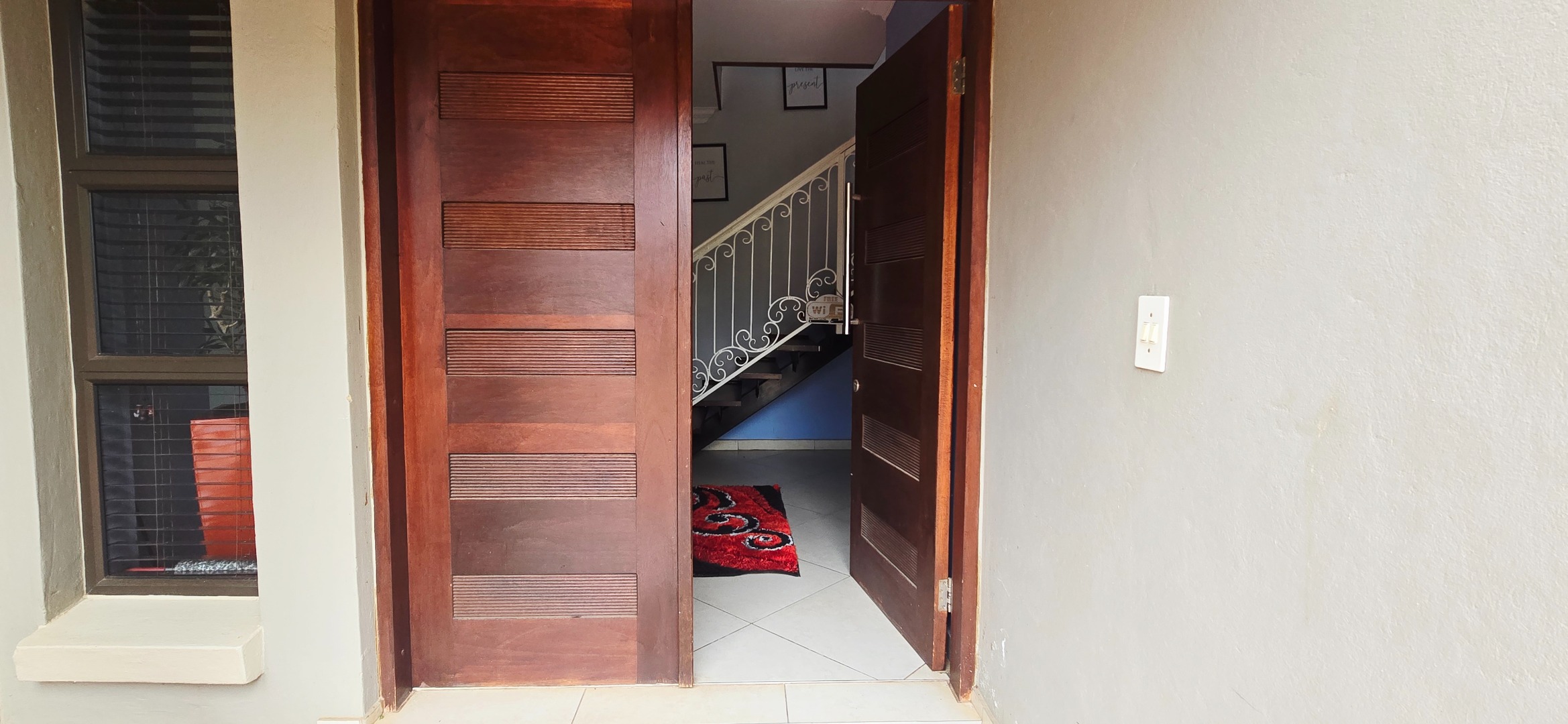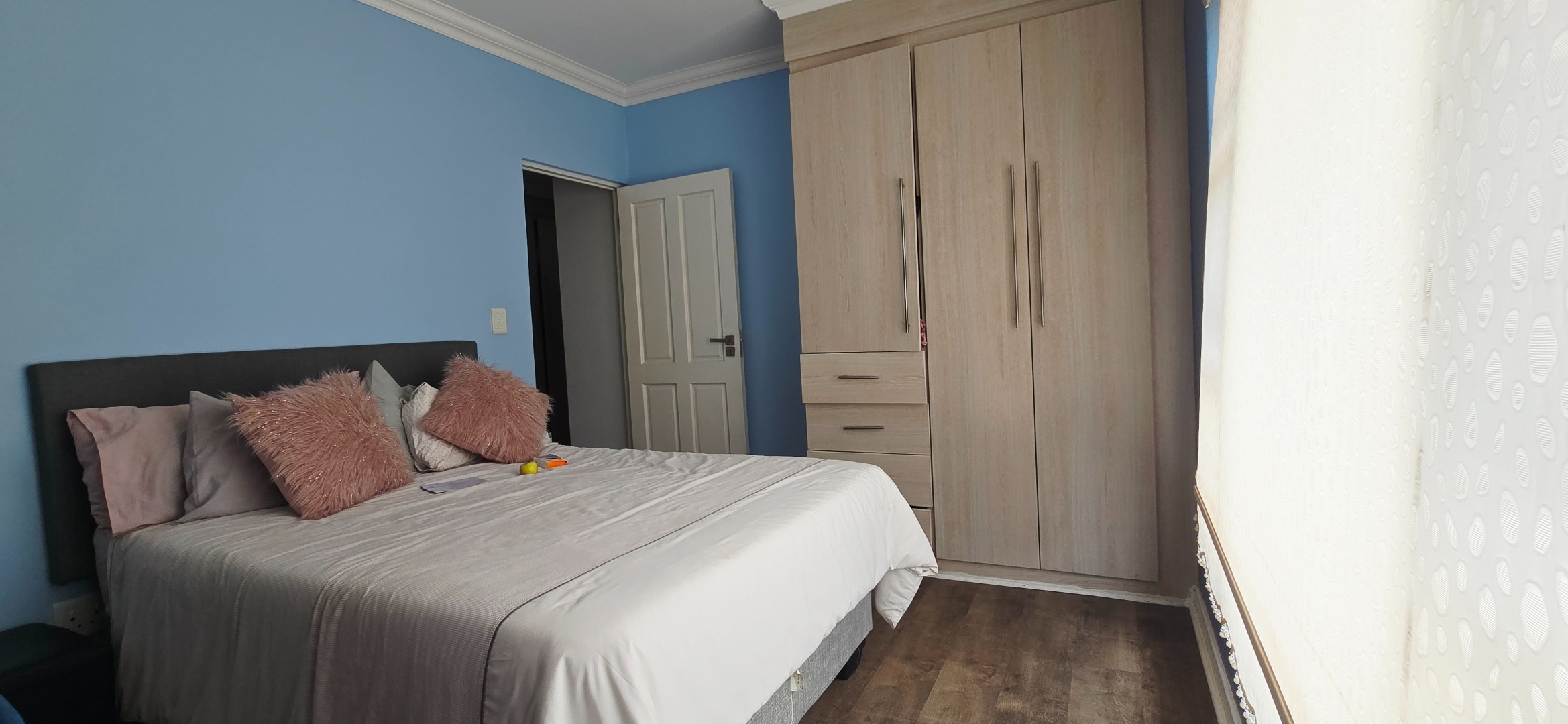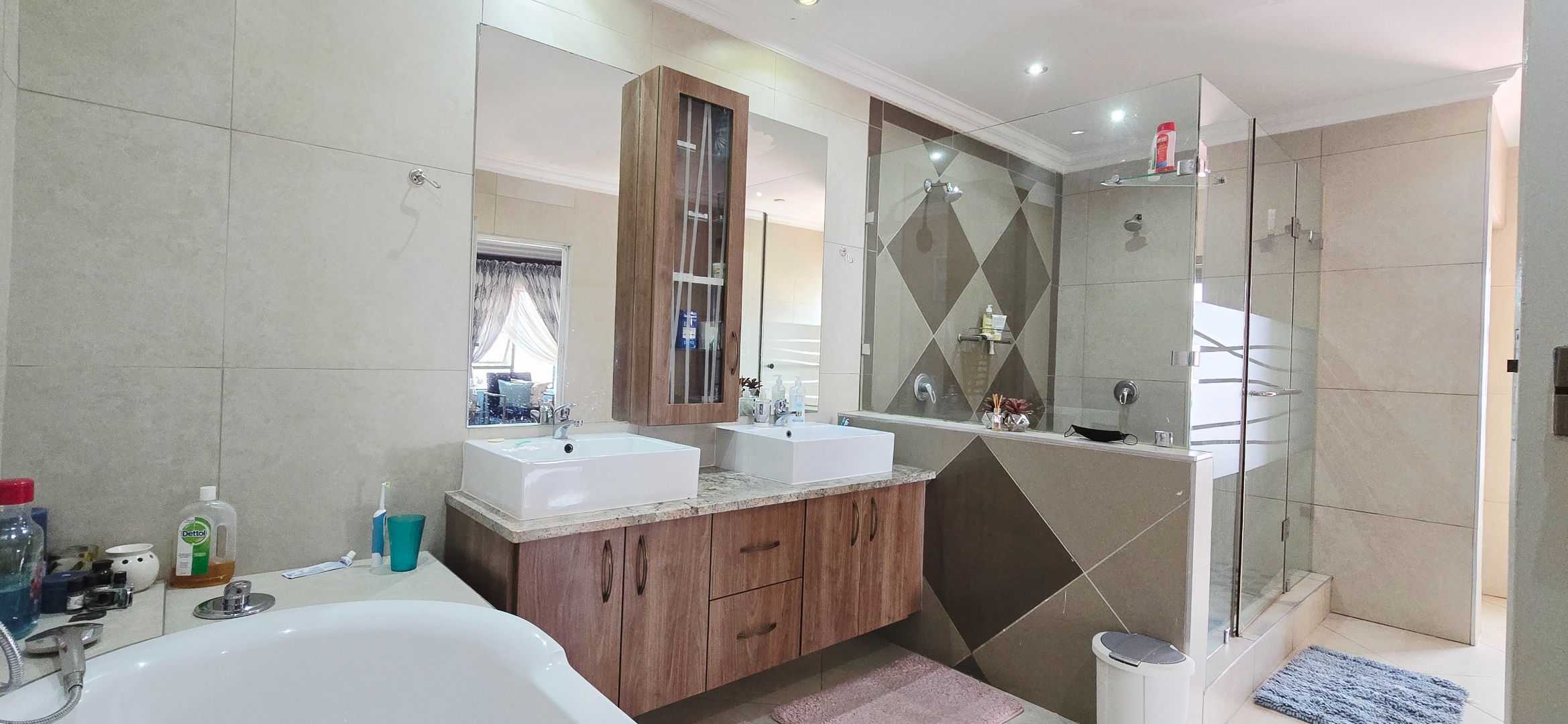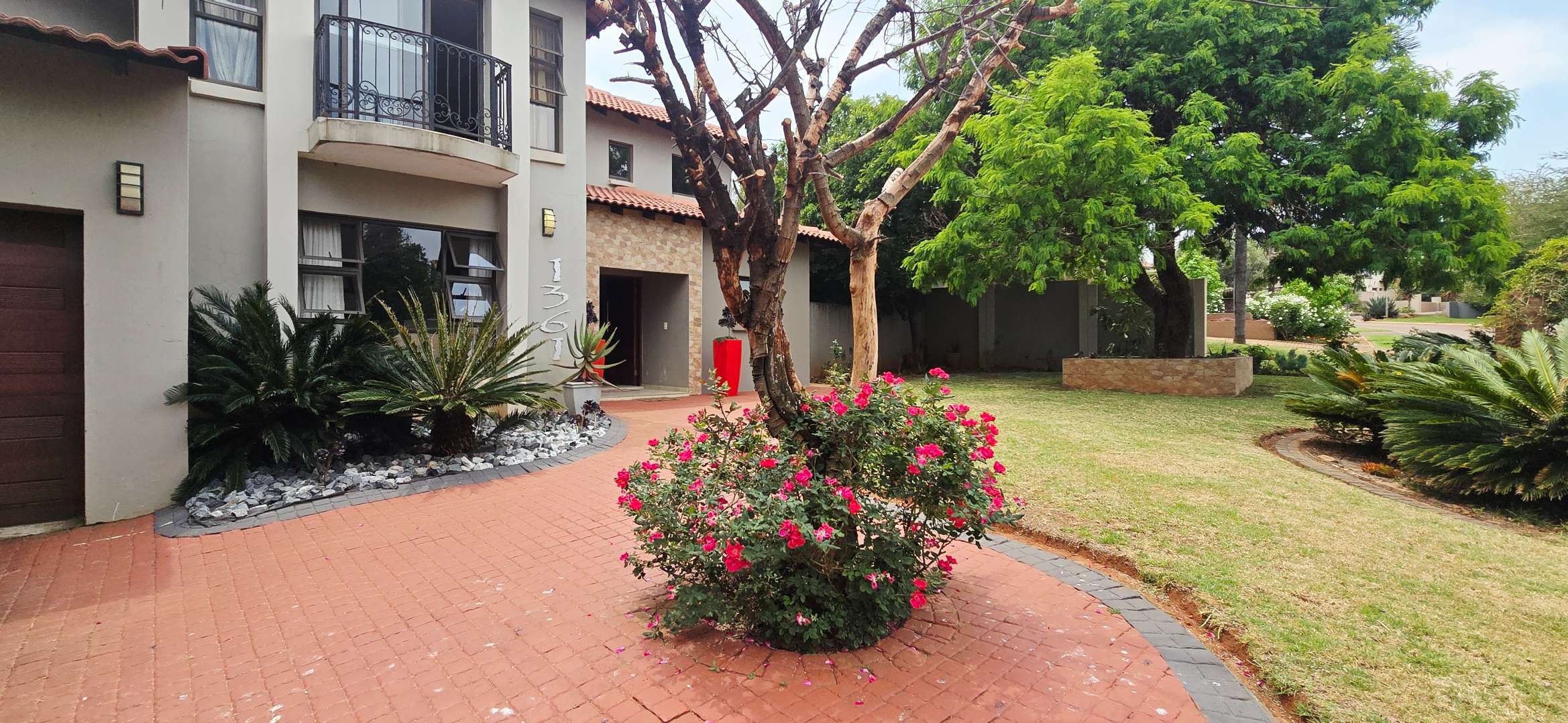 The front door leads you to an open plan home with reception area, living room and dining room flowing out to the enclosed braai room and open patio which overlooks the large garden and sparkling swimming pool. The braai room is enclosed, but can be opened up to join in with the larger patio when you entertain larger groups. The garden space is wonderfully spacious for ball play or furry friends.