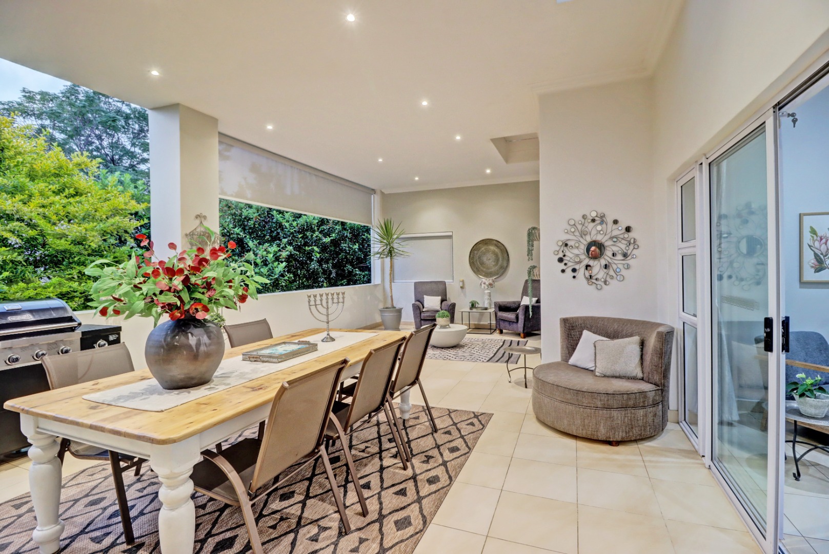 Living and entertaining are a highlight, with two lounges and two dining rooms (excluding the flatlet), seamlessly flowing to an expansive covered patio with built-in braai and awnings—perfect for year-round entertaining.