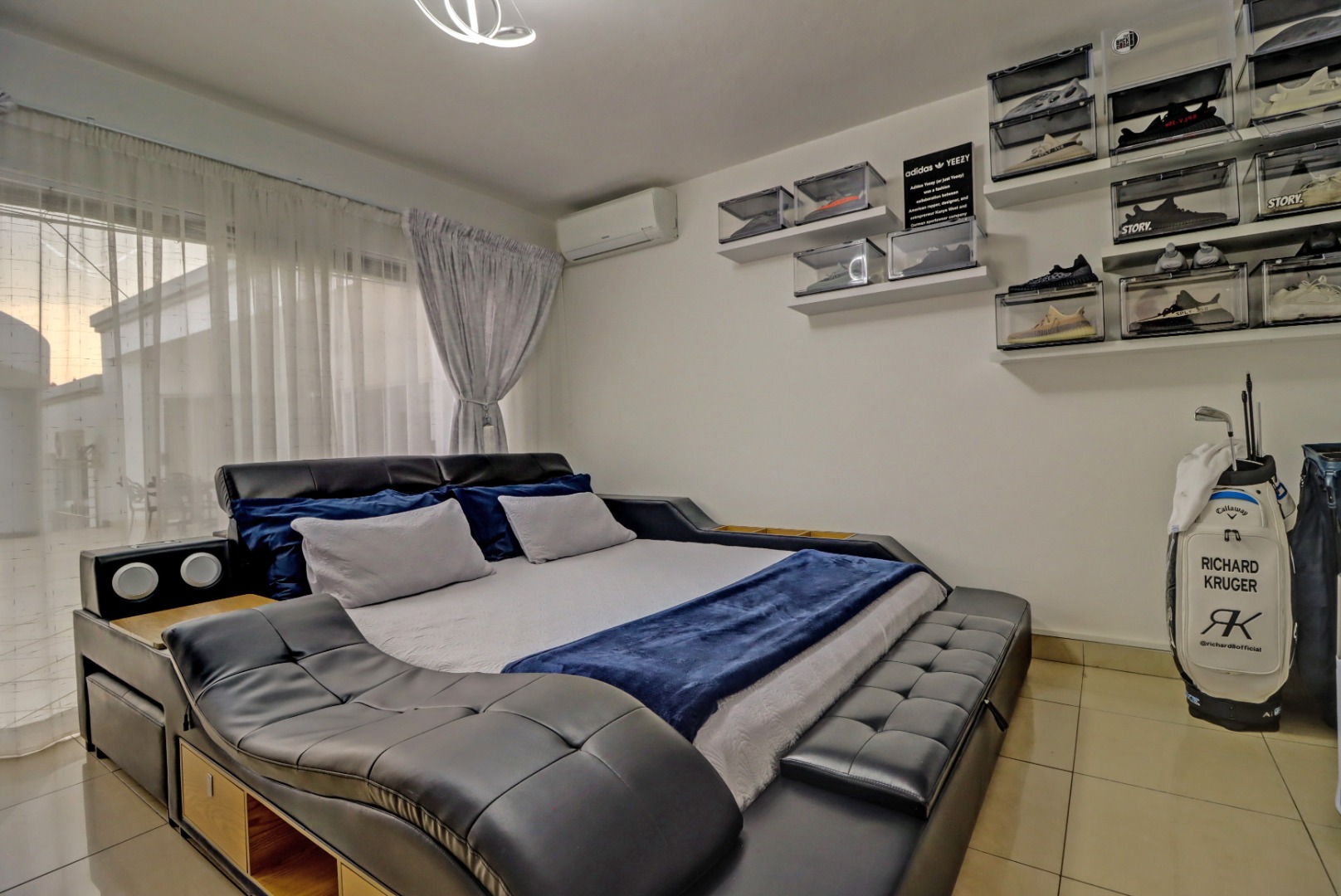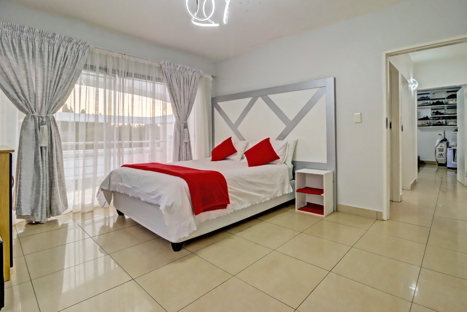 The home's modern conveniences include fibre connectivity, a battery inverter, and solar panels, ensuring energy efficiency and uninterrupted living. Water tanks and an irrigation system underscore a commitment to sustainable living. This property truly embodies luxury living in a secure, amenity-rich environment.