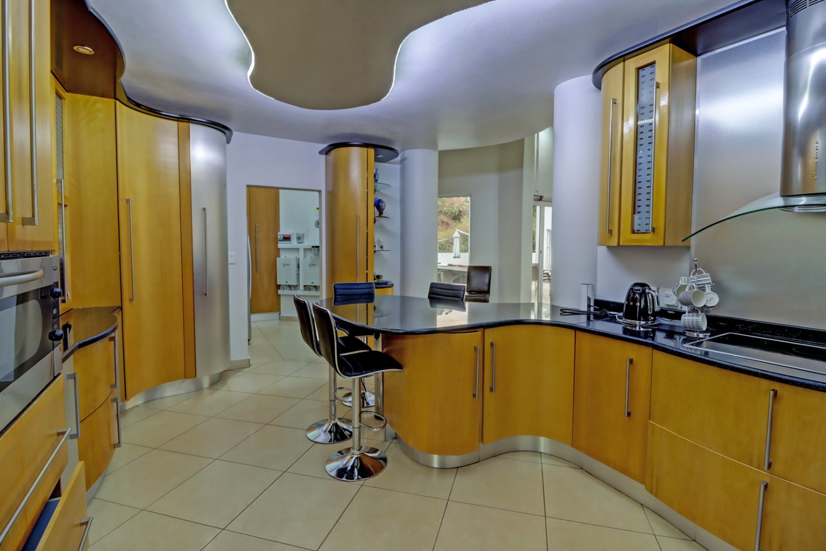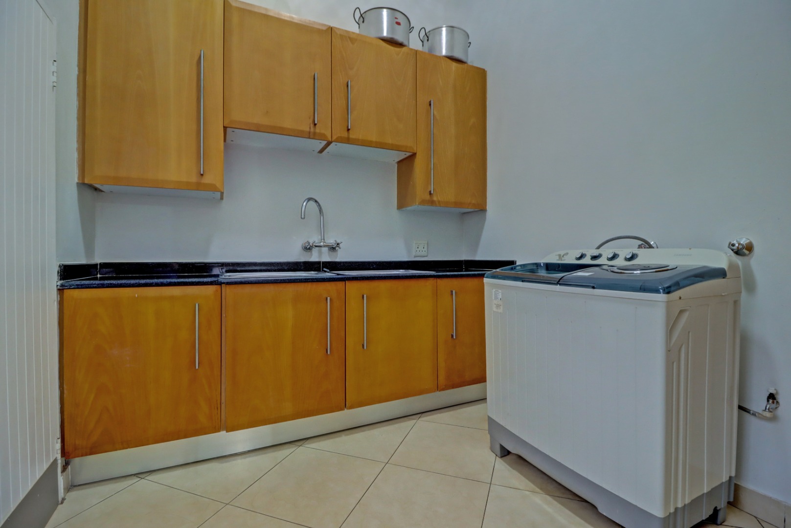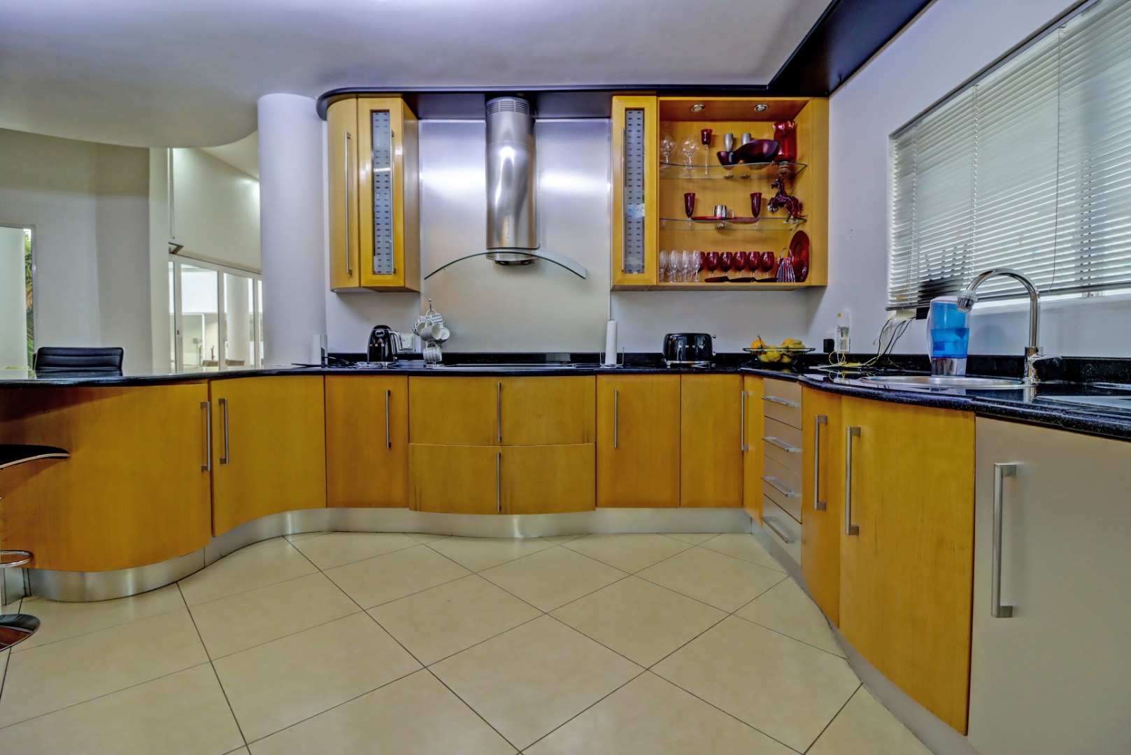 The heart of this home is its bespoke kitchen, boasting unique curved light wood cabinetry, integrated stainless steel appliances, and luxurious black granite countertops, complete with a functional breakfast bar and a convenient pantry. Seven opulent bedrooms and 6.5 lavish bathrooms, including three exquisite ensuites and a spa bath, provide private sanctuaries of relaxation. Additional accommodation is thoughtfully provided by staff quarters and a versatile 2 bed-roomed flat.