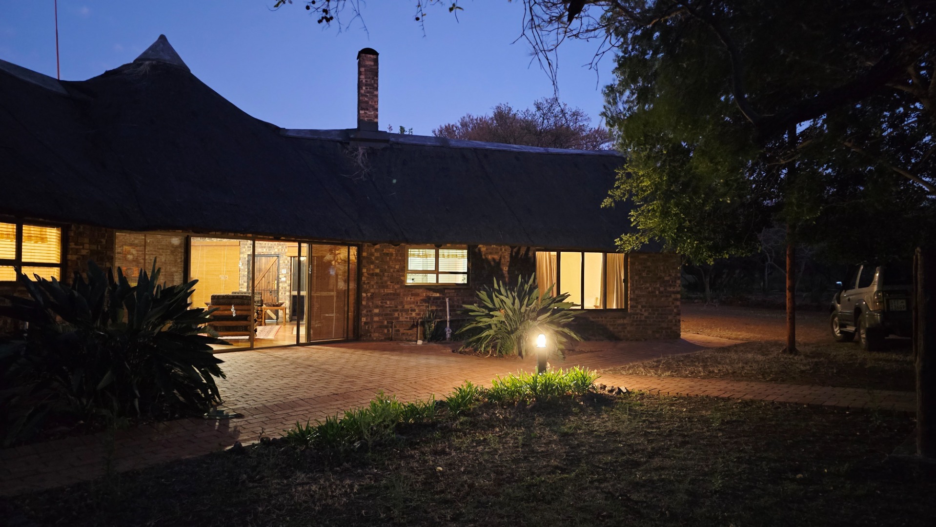 The habitat of this Game Ranch is unique in the sense that it varies from highveld to Sourish Mixed Bushveld to typical Mixed Bushveld boasting a very wide range of palatable and nutritious grass species and an absolute abundance of large Bushveld trees. The topography changes from bushveld savannah to undulating slopes and mountains with deep gorges to highveld flats and offering numerous awe-inspiring vistas. Complimenting this unique surrounding is a number of natural dams, one of which is a huge dam fed by a perennial springs and a waterfall at one of the inlets into the dam, all of this which can be enjoyed at leisure from the patio of the two bedroomed chalet perched just above the dam-wall while having a barbeque.