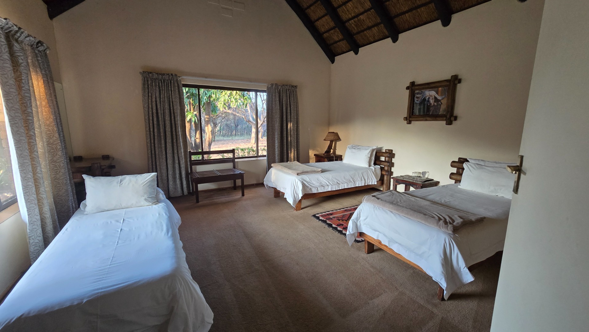 Game includes, amongst many others, Buffalo, Sable Antelope and Tsessebe as already mentioned, as well as Blue Wildebeest, Eland, Kudu, Red Hartebeest, Giraffe, Njala, Waterbuck, Zebra, Bushbuck, Mountain Reedbuck, Klipspringer and other small game and Ostrich. Also, Warthog, Bushpig, Leopard, other smaller predators, Baboon and Vervet Monkeys. The farm is alive with an extremely rich birdlife and as such a very popular bird watcher’s destination.
