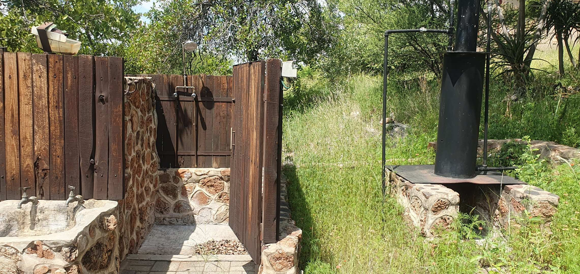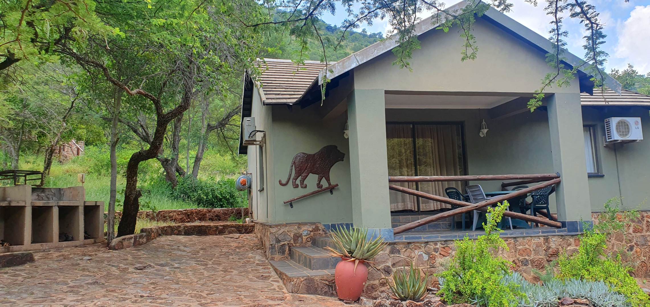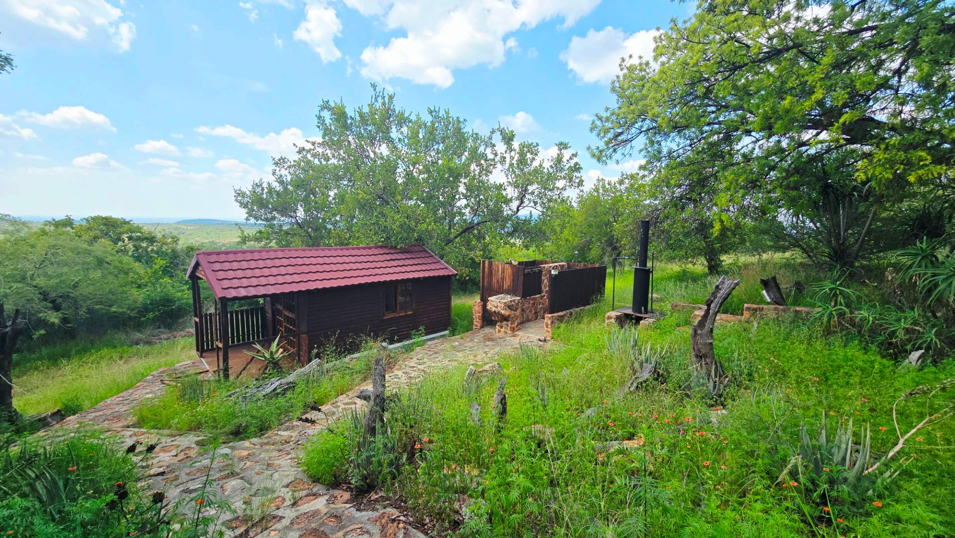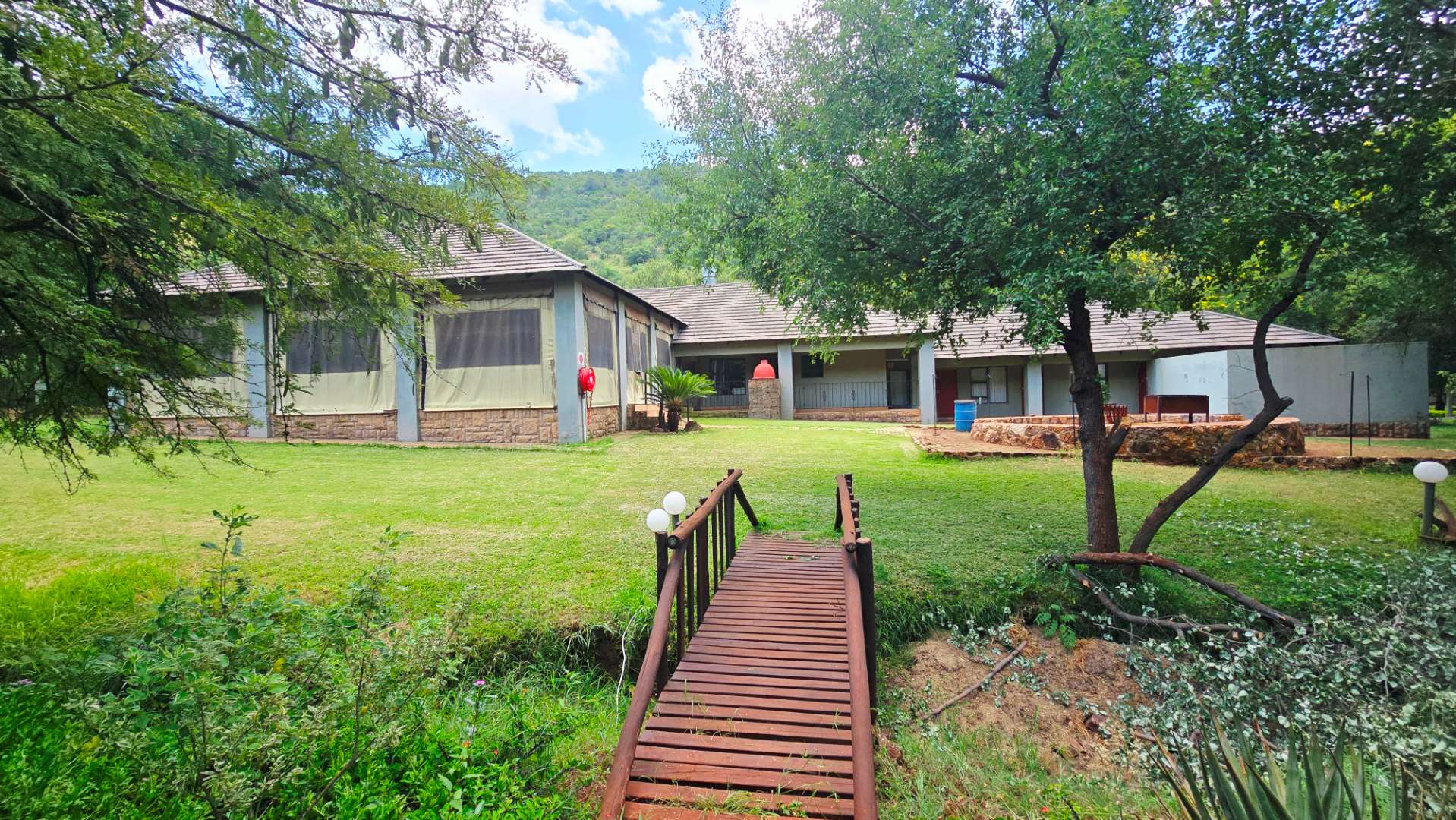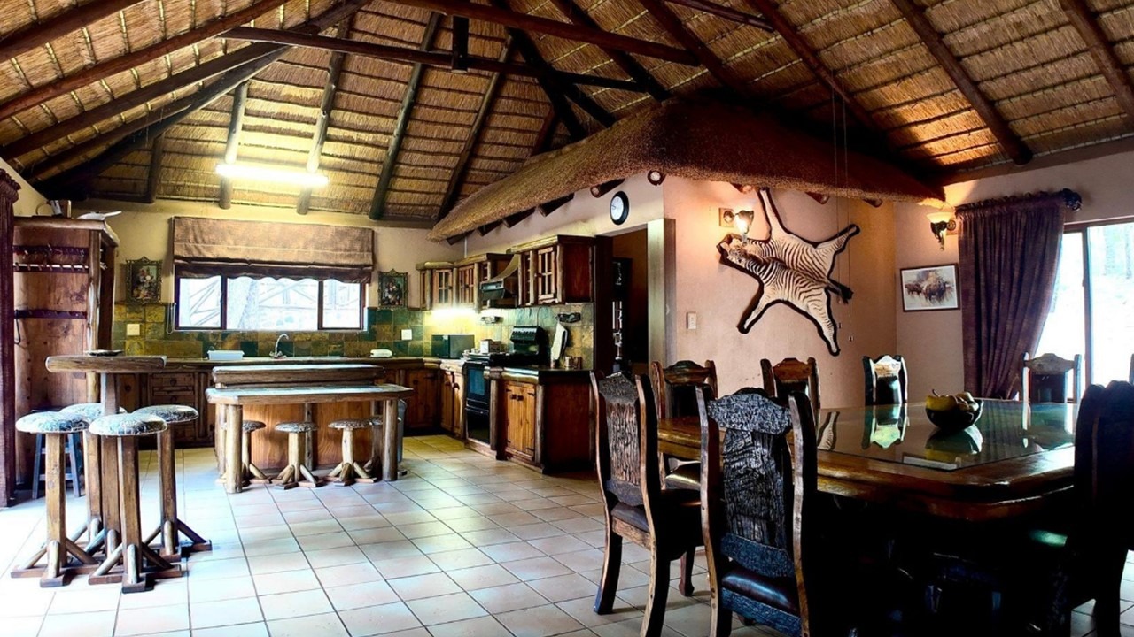 Accommodation at the lodge consist of 2x spacious houses, 3x chalets, 3x flatlets and five luxury rooms. The lodge can accommodate up to 80 guests. In another location a ranch managers house and a one-bedroom chalet. In another secluded area with elevated location a cosy bush/hunters camp with absolute breathtaking vistas. Also, at the managers house a large shed, slaughtering facilities, a cool-room and farm labourer quarters.