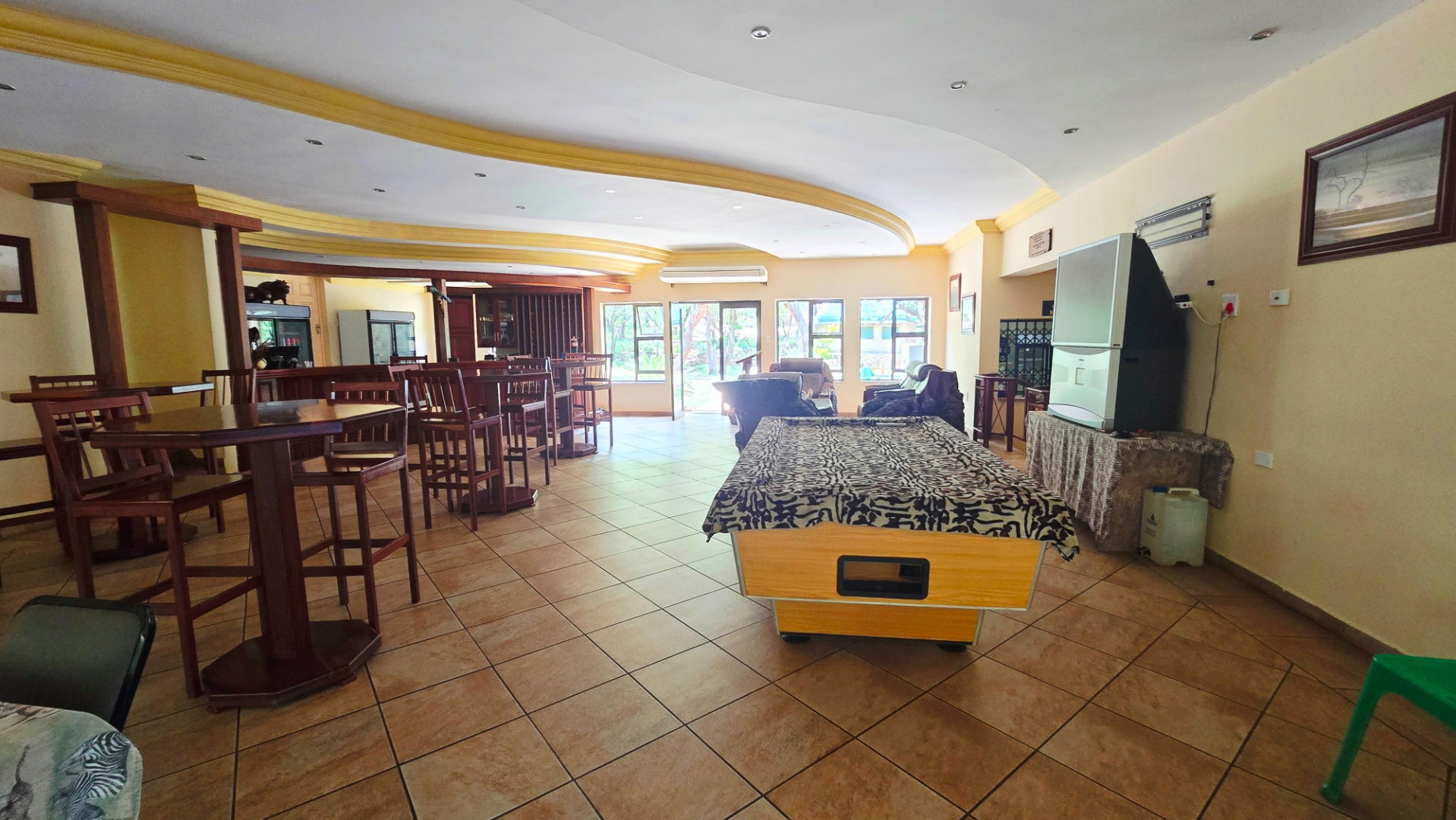 Improvements on the ranch include an unique and truly luxurious lodge with exceptional furnishings and décor. The lodge is quite expansive and offers a lounge, dining area, two bars, recreation areas, industrial kitchens, conference room, pools and decking, barbeque bomas, convenience shop, laundry, ablution facilities, mini putt-putt course, jungle gym and bird enclosures.
