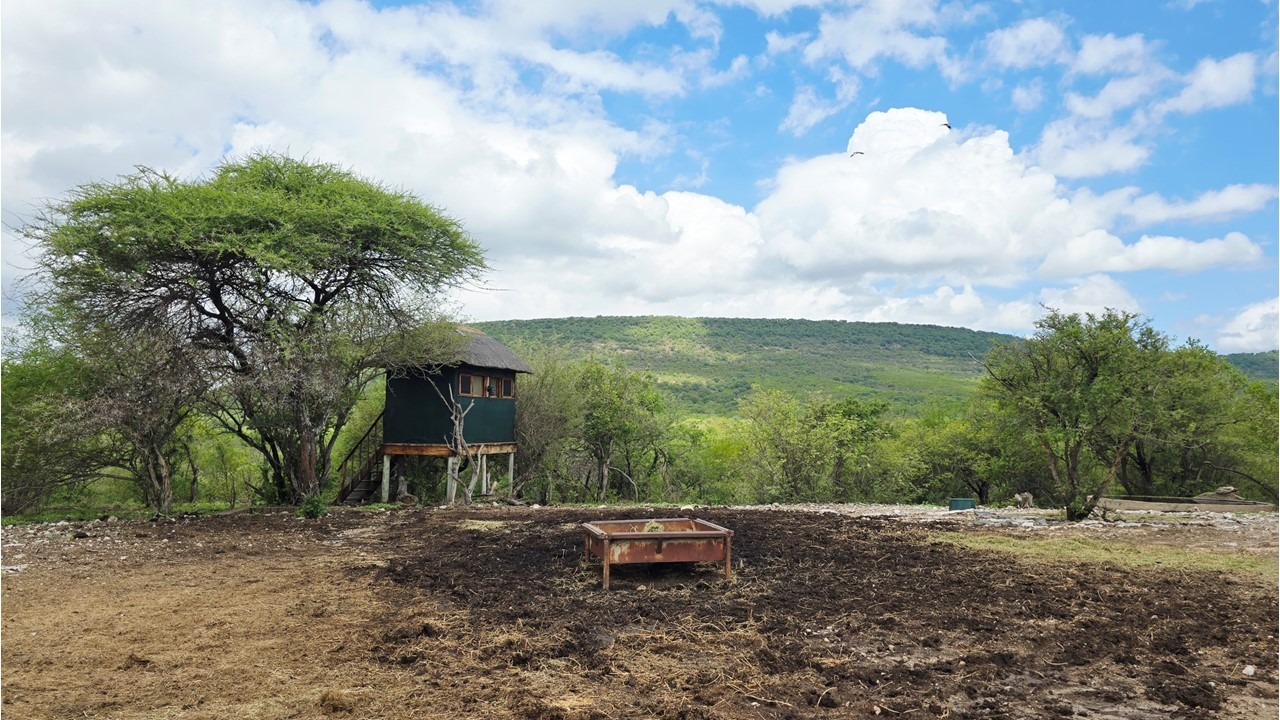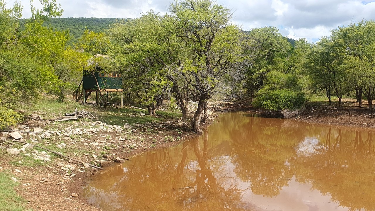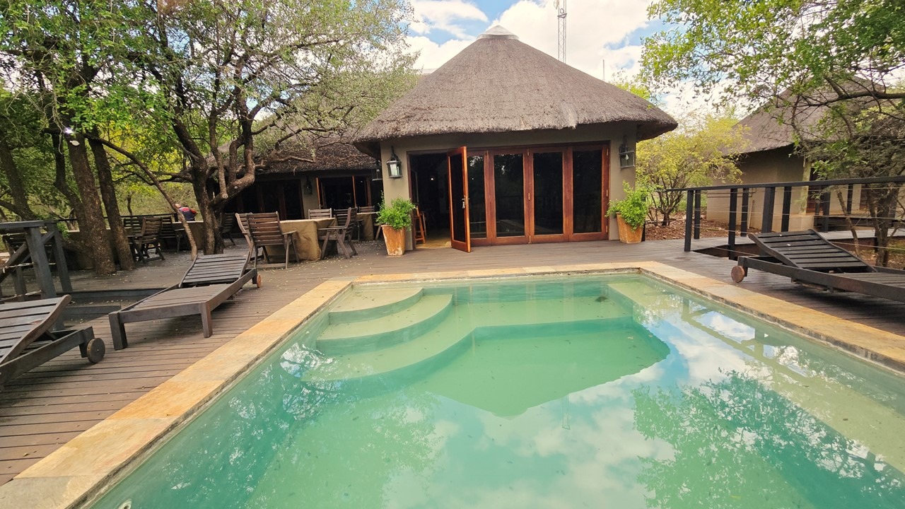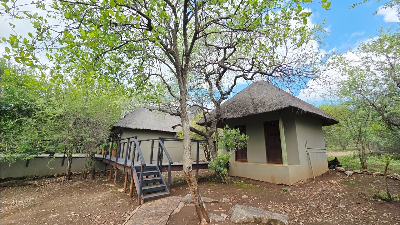 The main lodge is being utilized as a fully catered lodge and consist of a recreation/dining/lounge area, fully equipped industrial kitchen, awesome patio with bar boasting a lovely view over a watering point, natural stream and a soil dam, 2 comfortable en-suite chalets and 4 luxury, en-suite safari tent chalets, additional and separate ablution facilities and a swimming pool. All walkways between the main area and chalets are expertly done with stone which enhances the natural ambience of the lodge, complimented by a braai-boma and fire pit. A back-up generator supply power to the whole farm and all lodges/hunting camps if need be. This main lodge offers Wi-Fi access as well.