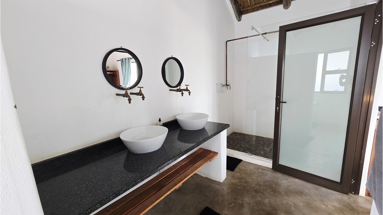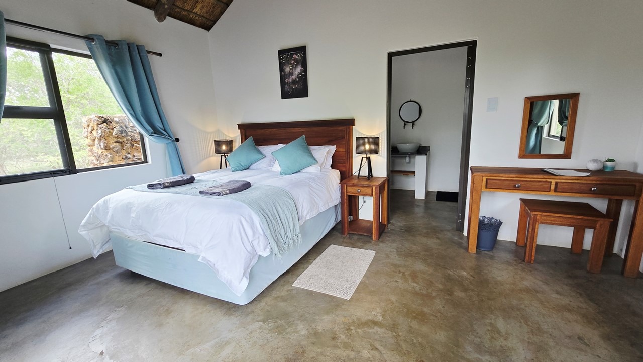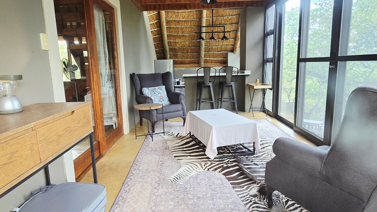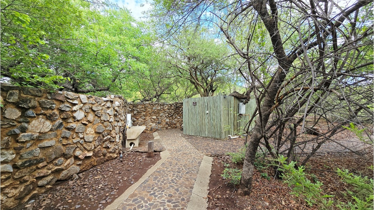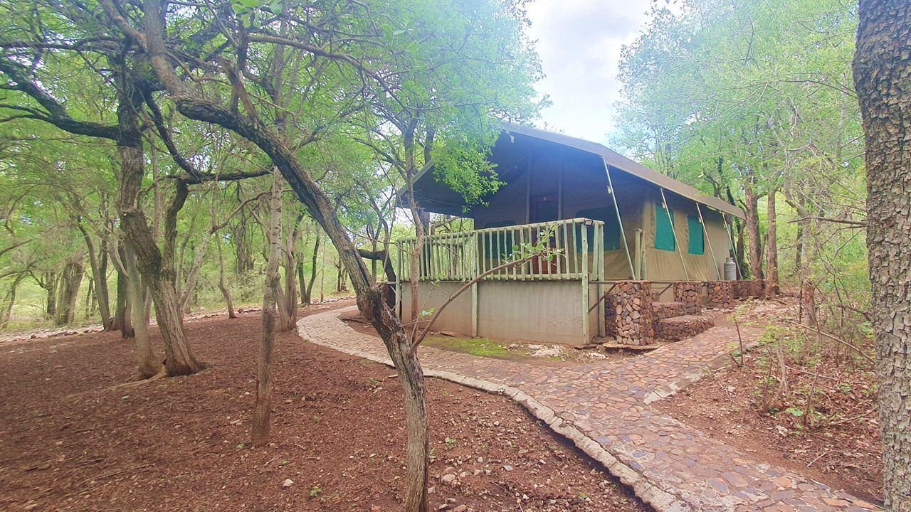 The main lodge is being utilized as a fully catered lodge and consist of a recreation/dining/lounge area, fully equipped industrial kitchen, awesome patio with bar boasting a lovely view over a watering point, natural stream and a soil dam, 2 comfortable en-suite chalets and 4 luxury, en-suite safari tent chalets, additional and separate ablution facilities and a swimming pool. All walkways between the main area and chalets are expertly done with stone which enhances the natural ambience of the lodge, complimented by a braai-boma and fire pit. A back-up generator supply power to the whole farm and all lodges/hunting camps if need be. This main lodge offers Wi-Fi access as well.