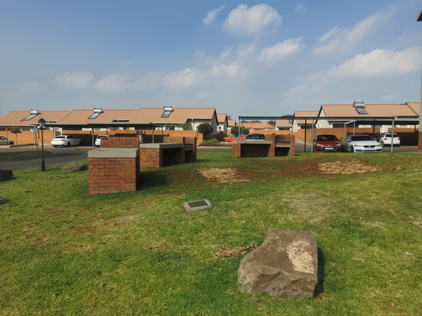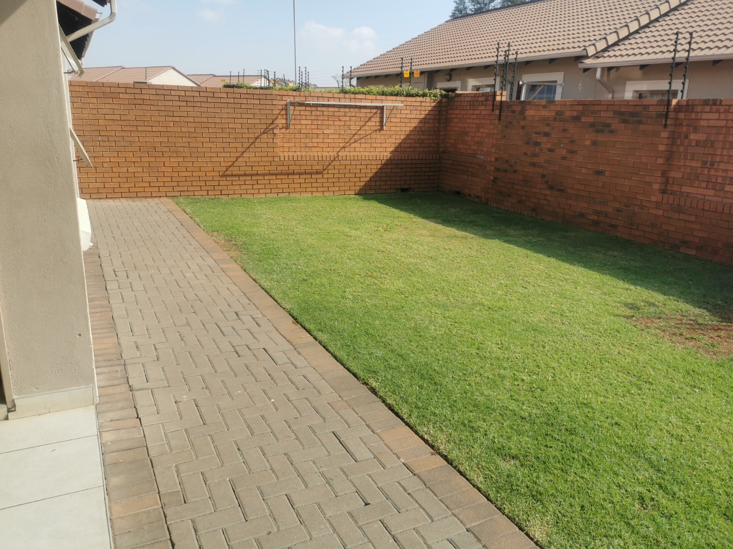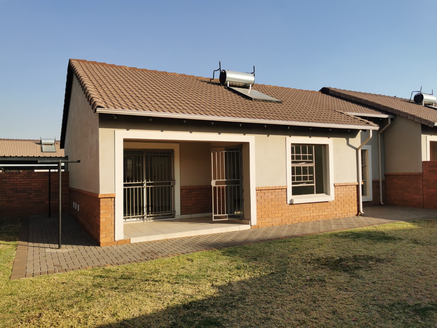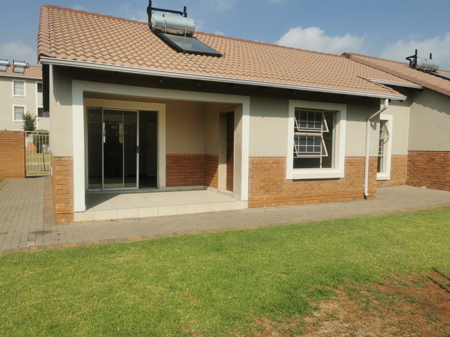 This modern 3-bedroom, 2-bathroom rental property offers comfortable living within a well-maintained complex in Monavoni, Centurion. Spanning 95 square meters, the residence features an open-plan design that seamlessly connects the living spaces, creating an inviting atmosphere. The interior boasts neutral wall colours and durable tiled flooring throughout, providing a versatile canvas for personal decor. The heart of the home is its contemporary kitchen, equipped with sleek wooden-look cabinetry, dark granite countertops, and an integrated stove and oven. A practical breakfast bar extends the counter space, ideal for casual dining. Natural light streams in through a kitchen window, complementing the modern light fixtures. Adjacent to the kitchen, the lounge and dining areas offer ample space for relaxation and meals. The three well-proportioned bedrooms include an ensuite bathroom, ensuring privacy and convenience. The property's exterior features a durable tiled roof and a combination of painted walls and brickwork. A covered patio with sliding glass doors provides an excellent outdoor living space, overlooking a private, neatly kept lawn and paved walkways, perfect for low-maintenance enjoyment. Prioritising peace of mind, the home is fitted with security bars on windows and security gates on doors, enhancing safety. Furthermore, the inclusion of solar water heaters contributes to energy efficiency, offering a sustainable living solution and potential cost savings. This property is designed for a convenient, secure, and energy-conscious lifestyle. Situated in Monavoni, Centurion, this property benefits from its location within a vibrant community. Residents enjoy easy access to local amenities and transport routes, making it an ideal choice for professionals or families seeking a balanced lifestyle in South Africa. Key Features: - Three spacious bedrooms, one with an ensuite - Two modern bathrooms - Contemporary kitchen with granite countertops and breakfast bar - Open-plan lounge and dining area - Covered patio and private lawn - Energy-efficient solar water heating - Enhanced security with burglar bars and security gates - Two dedicated parking spaces - Located in a well-maintained complex in Monavoni