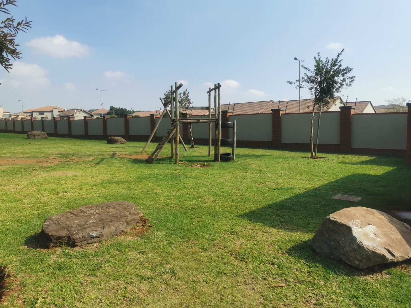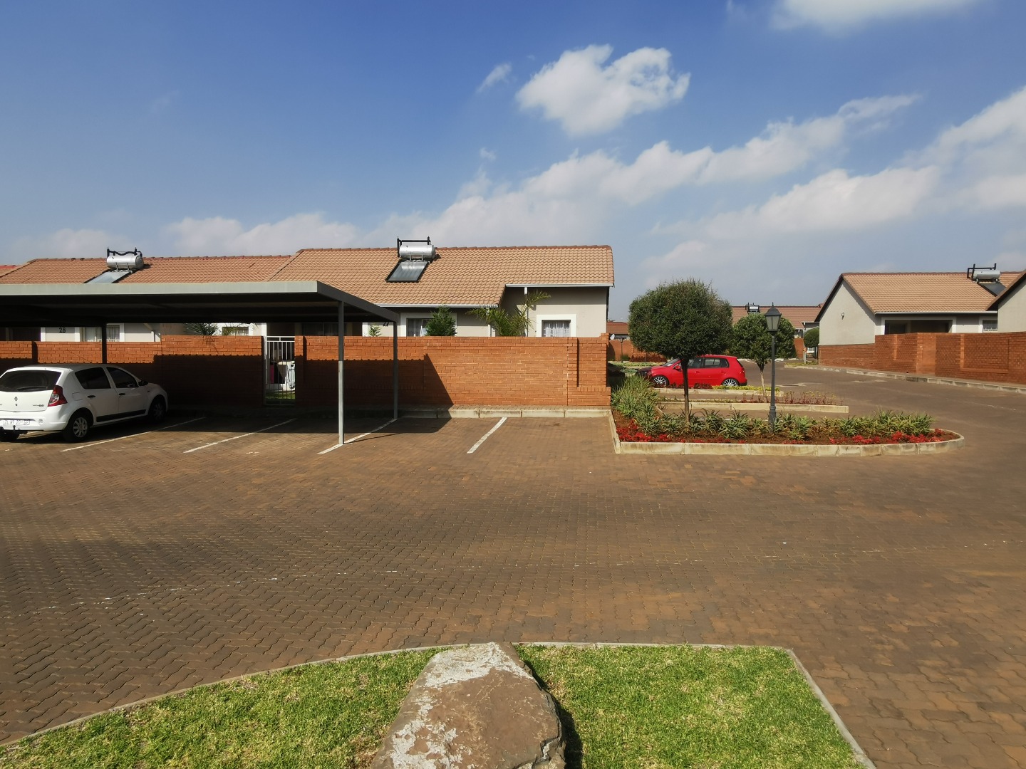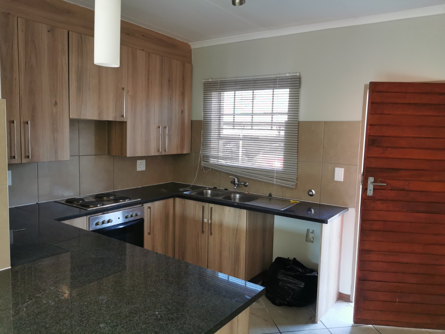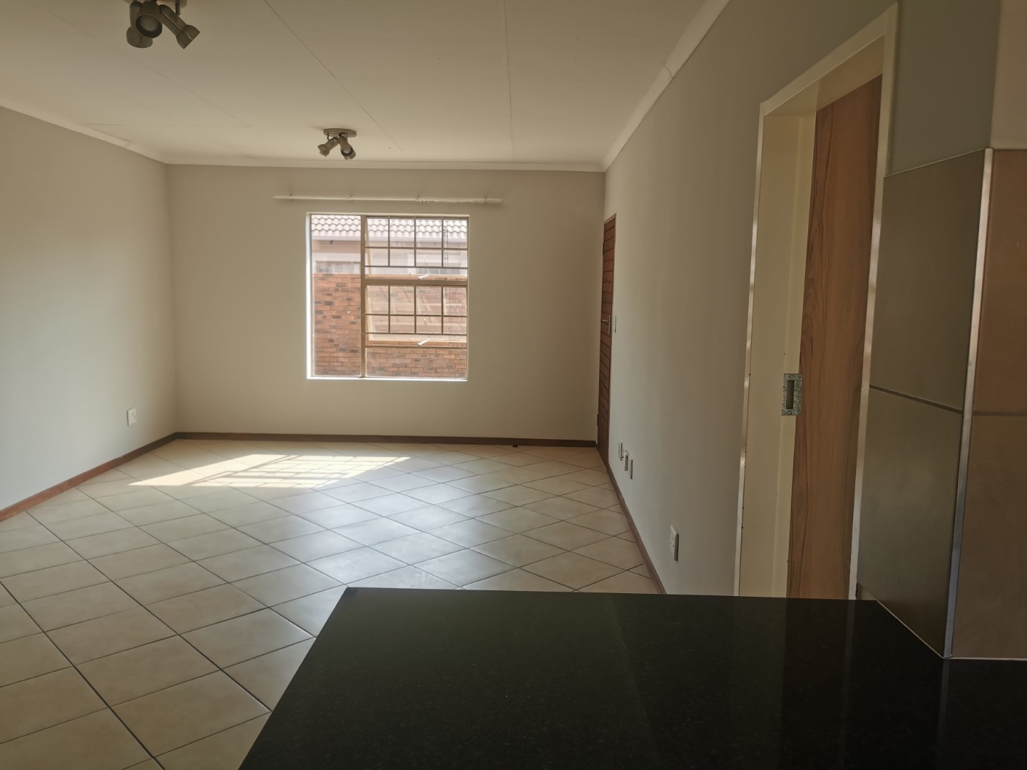 This modern 3-bedroom, 2-bathroom rental property offers comfortable living within a well-maintained complex in Monavoni, Centurion. Spanning 95 square meters, the residence features an open-plan design that seamlessly connects the living spaces, creating an inviting atmosphere. The interior boasts neutral wall colours and durable tiled flooring throughout, providing a versatile canvas for personal decor. The heart of the home is its contemporary kitchen, equipped with sleek wooden-look cabinetry, dark granite countertops, and an integrated stove and oven. A practical breakfast bar extends the counter space, ideal for casual dining. Natural light streams in through a kitchen window, complementing the modern light fixtures. Adjacent to the kitchen, the lounge and dining areas offer ample space for relaxation and meals. The three well-proportioned bedrooms include an ensuite bathroom, ensuring privacy and convenience. The property's exterior features a durable tiled roof and a combination of painted walls and brickwork. A covered patio with sliding glass doors provides an excellent outdoor living space, overlooking a private, neatly kept lawn and paved walkways, perfect for low-maintenance enjoyment. Prioritising peace of mind, the home is fitted with security bars on windows and security gates on doors, enhancing safety. Furthermore, the inclusion of solar water heaters contributes to energy efficiency, offering a sustainable living solution and potential cost savings. This property is designed for a convenient, secure, and energy-conscious lifestyle. Situated in Monavoni, Centurion, this property benefits from its location within a vibrant community. Residents enjoy easy access to local amenities and transport routes, making it an ideal choice for professionals or families seeking a balanced lifestyle in South Africa. Key Features: - Three spacious bedrooms, one with an ensuite - Two modern bathrooms - Contemporary kitchen with granite countertops and breakfast bar - Open-plan lounge and dining area - Covered patio and private lawn - Energy-efficient solar water heating - Enhanced security with burglar bars and security gates - Two dedicated parking spaces - Located in a well-maintained complex in Monavoni