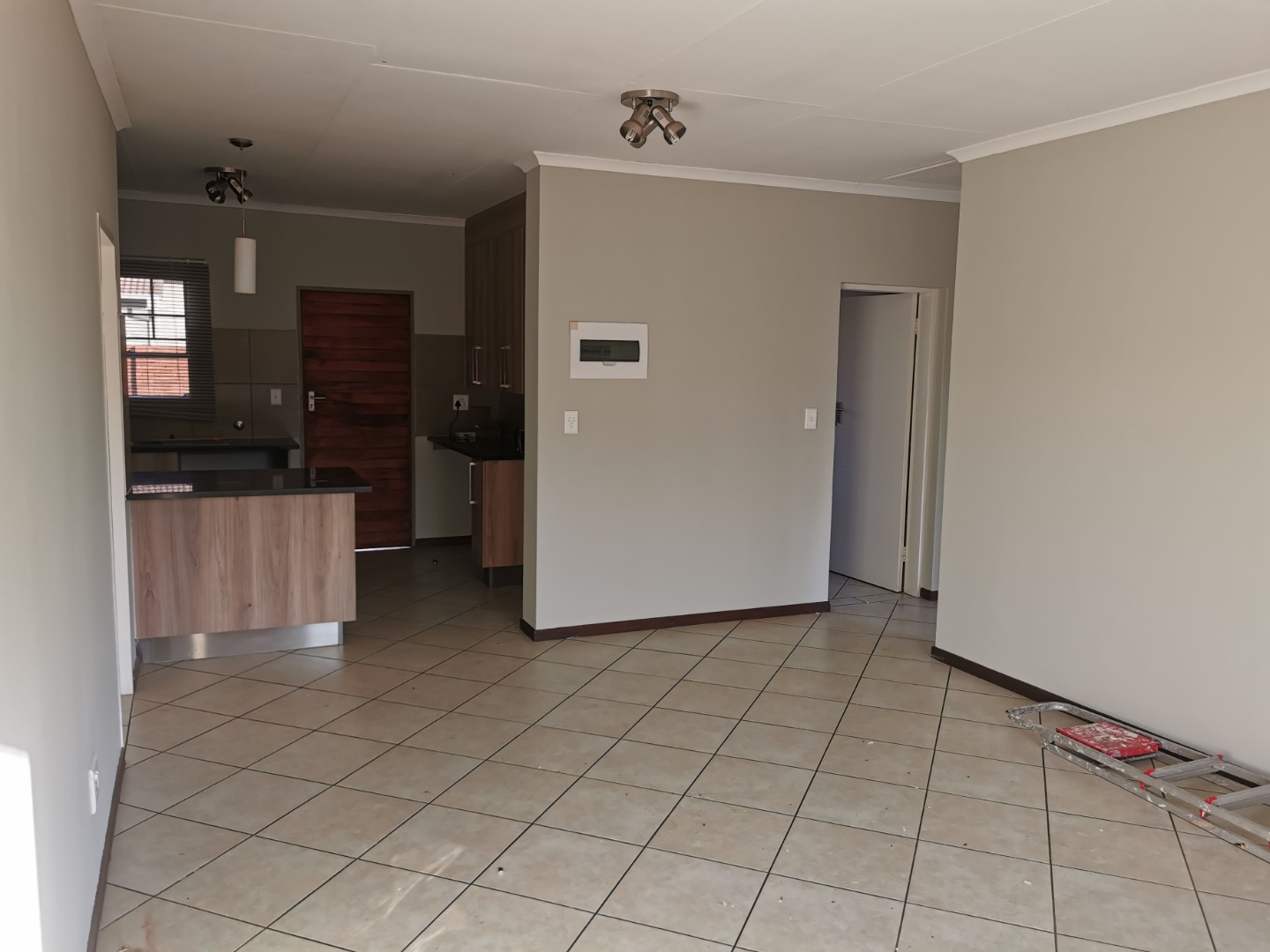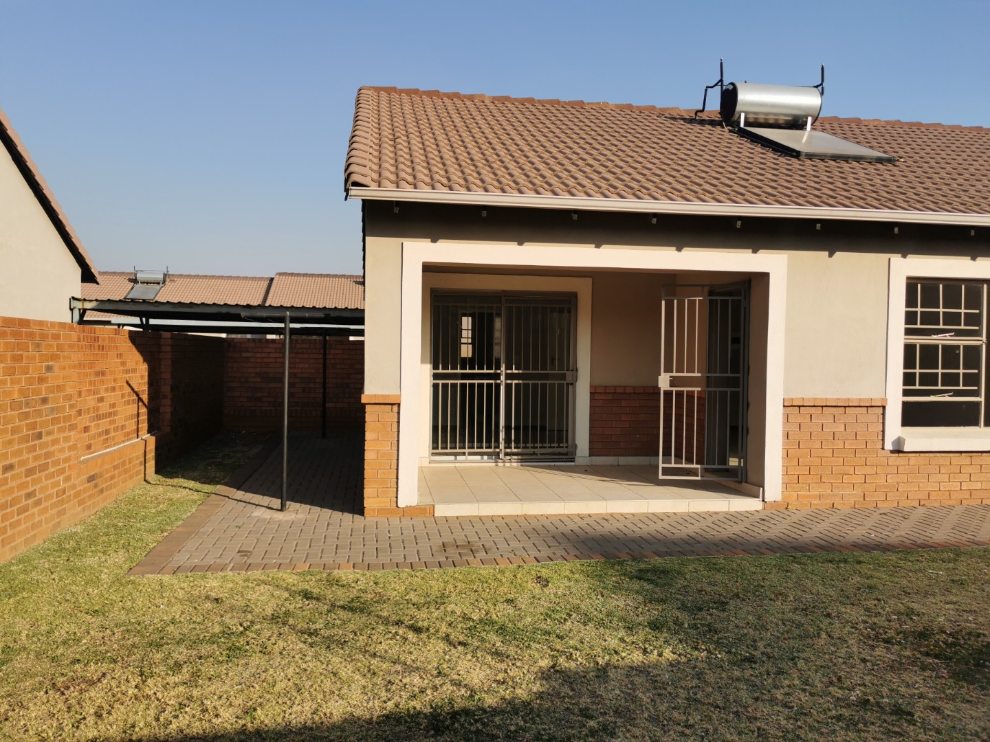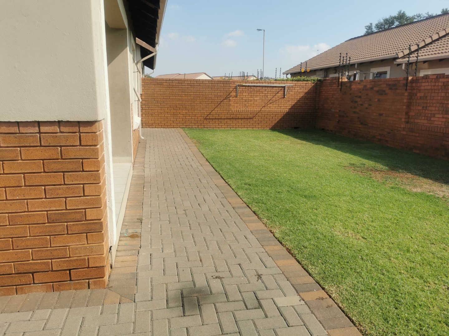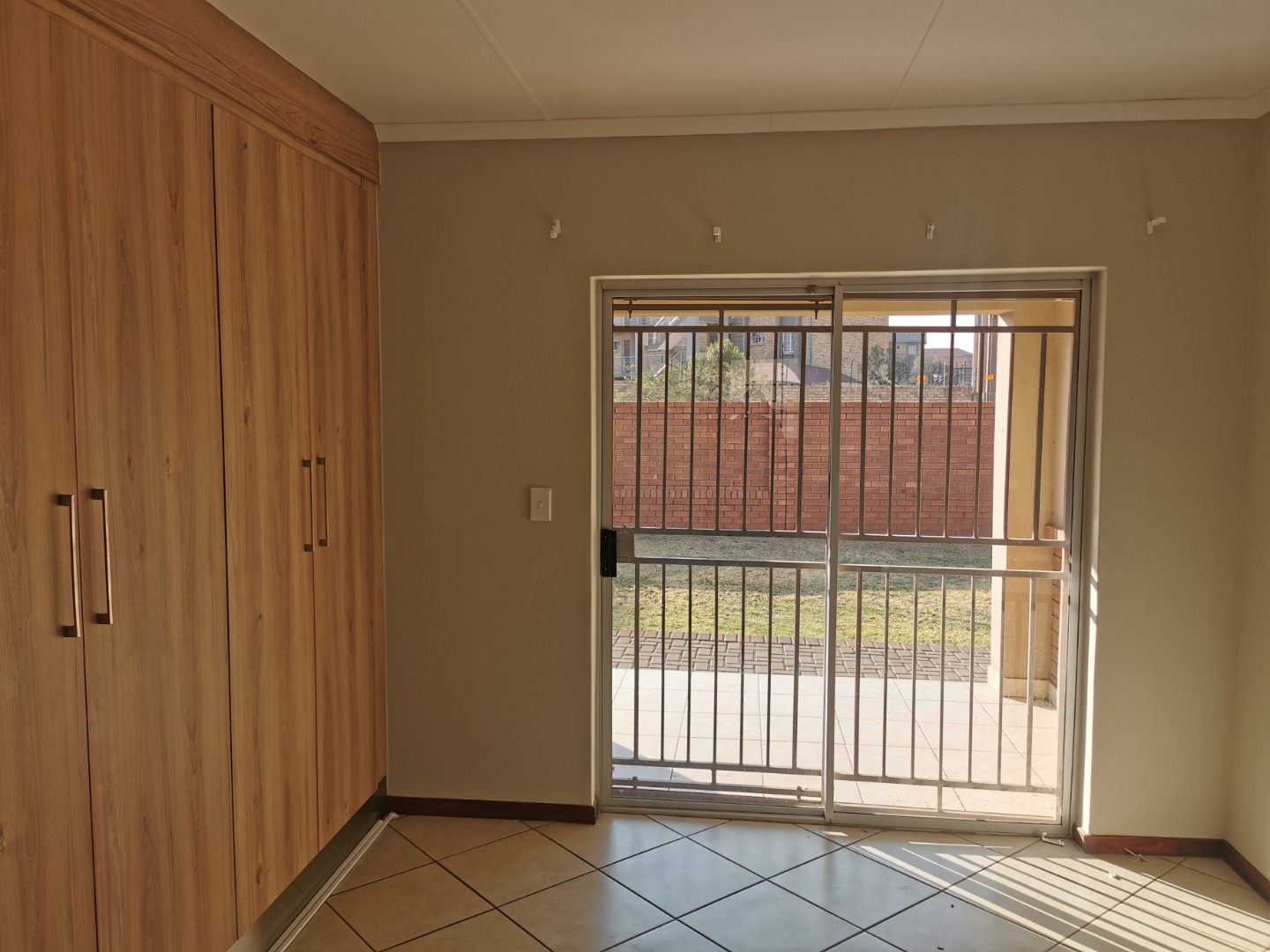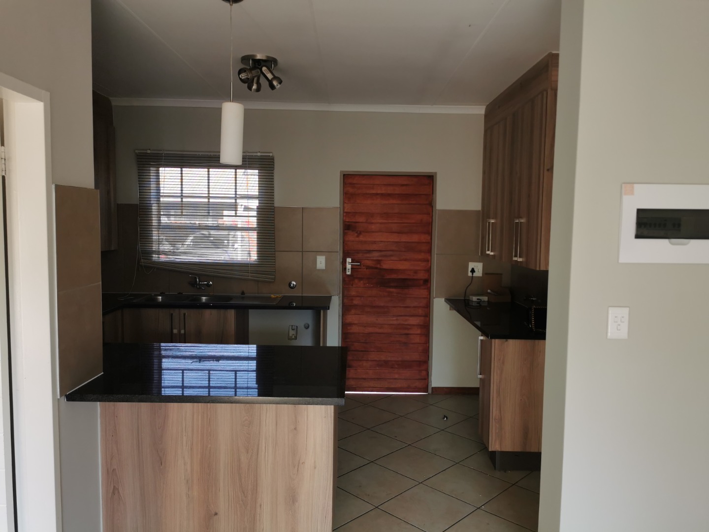 This modern 3-bedroom, 2-bathroom rental property offers comfortable living within a well-maintained complex in Monavoni, Centurion. Spanning 95 square meters, the residence features an open-plan design that seamlessly connects the living spaces, creating an inviting atmosphere. The interior boasts neutral wall colours and durable tiled flooring throughout, providing a versatile canvas for personal decor. The heart of the home is its contemporary kitchen, equipped with sleek wooden-look cabinetry, dark granite countertops, and an integrated stove and oven. A practical breakfast bar extends the counter space, ideal for casual dining. Natural light streams in through a kitchen window, complementing the modern light fixtures. Adjacent to the kitchen, the lounge and dining areas offer ample space for relaxation and meals. The three well-proportioned bedrooms include an ensuite bathroom, ensuring privacy and convenience. The property's exterior features a durable tiled roof and a combination of painted walls and brickwork. A covered patio with sliding glass doors provides an excellent outdoor living space, overlooking a private, neatly kept lawn and paved walkways, perfect for low-maintenance enjoyment. Prioritising peace of mind, the home is fitted with security bars on windows and security gates on doors, enhancing safety. Furthermore, the inclusion of solar water heaters contributes to energy efficiency, offering a sustainable living solution and potential cost savings. This property is designed for a convenient, secure, and energy-conscious lifestyle. Situated in Monavoni, Centurion, this property benefits from its location within a vibrant community. Residents enjoy easy access to local amenities and transport routes, making it an ideal choice for professionals or families seeking a balanced lifestyle in South Africa. Key Features: - Three spacious bedrooms, one with an ensuite - Two modern bathrooms - Contemporary kitchen with granite countertops and breakfast bar - Open-plan lounge and dining area - Covered patio and private lawn - Energy-efficient solar water heating - Enhanced security with burglar bars and security gates - Two dedicated parking spaces - Located in a well-maintained complex in Monavoni