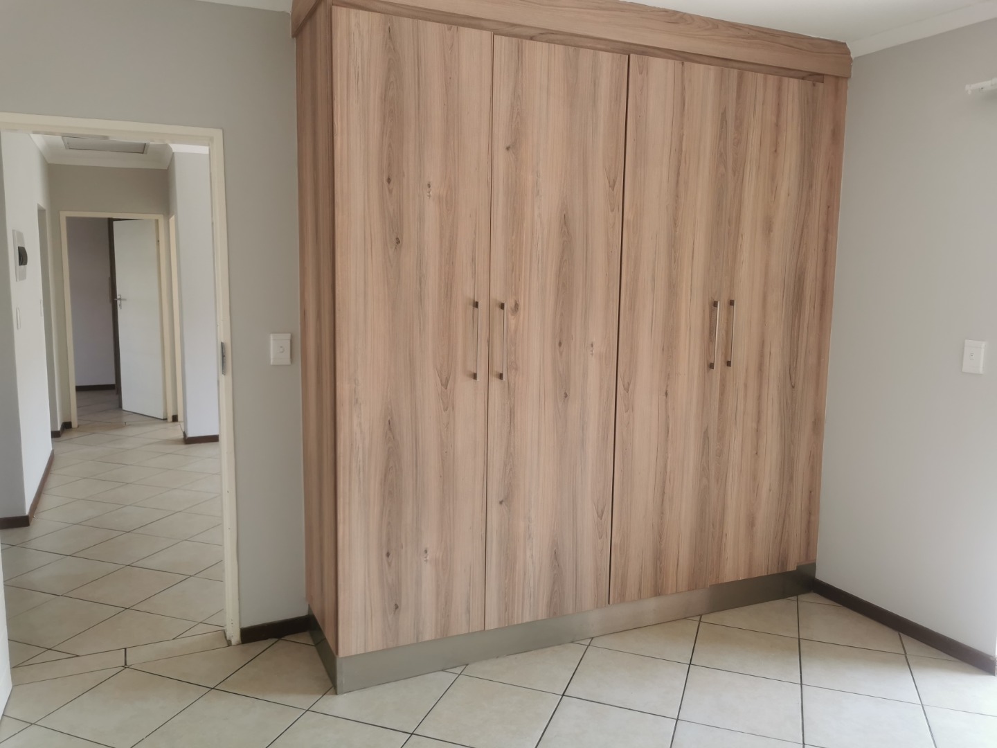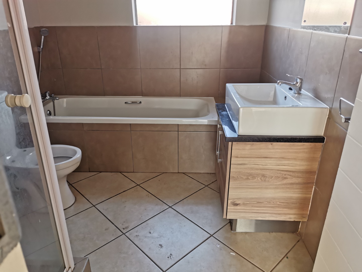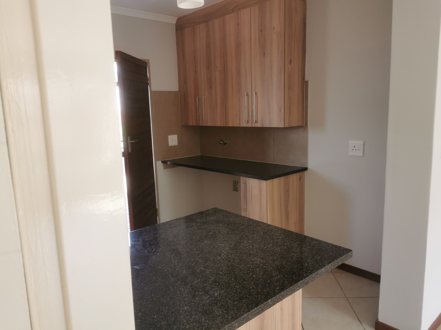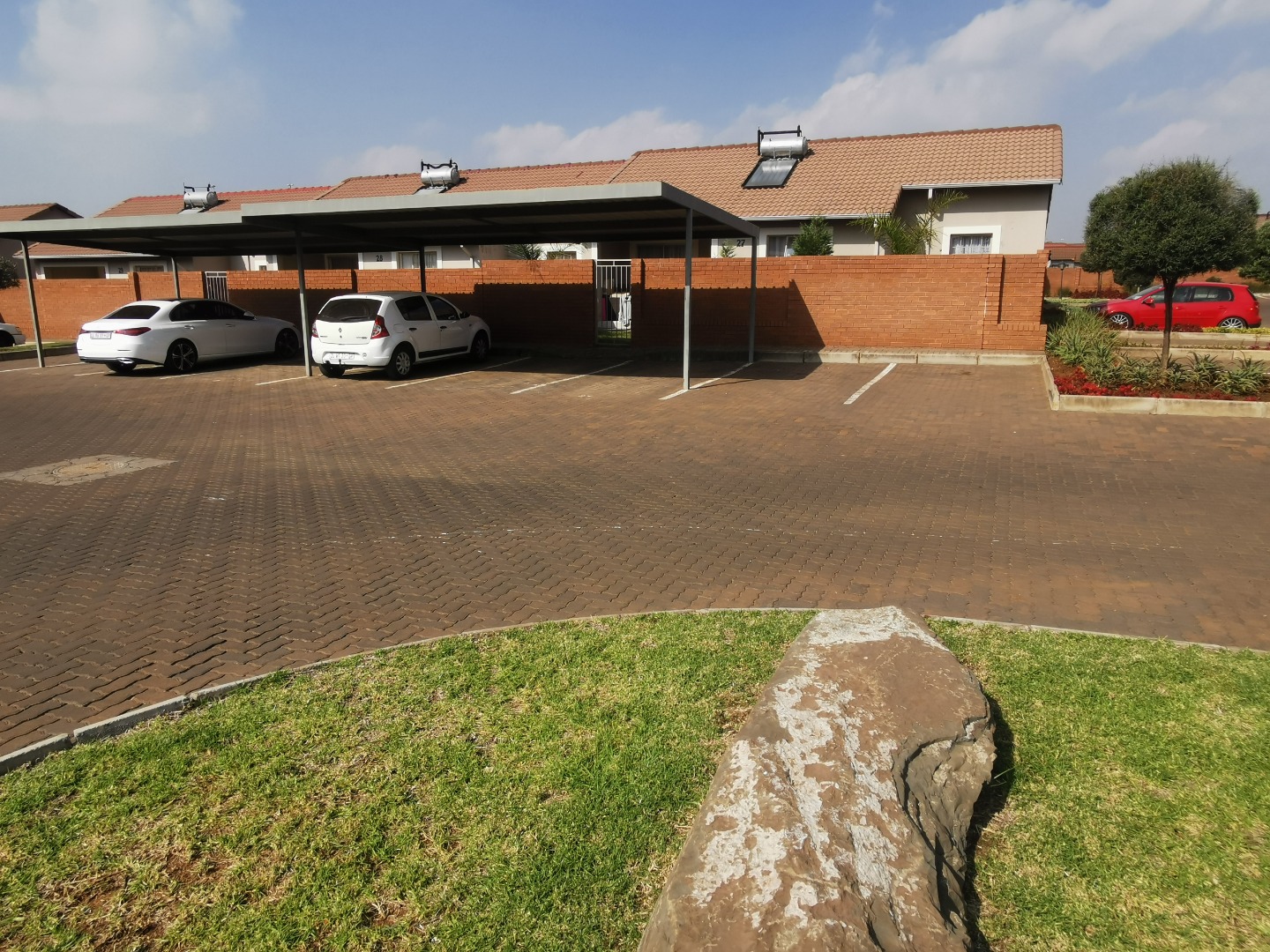 This modern 3-bedroom, 2-bathroom rental property offers comfortable living within a well-maintained complex in Monavoni, Centurion. Spanning 95 square meters, the residence features an open-plan design that seamlessly connects the living spaces, creating an inviting atmosphere. The interior boasts neutral wall colours and durable tiled flooring throughout, providing a versatile canvas for personal decor. The heart of the home is its contemporary kitchen, equipped with sleek wooden-look cabinetry, dark granite countertops, and an integrated stove and oven. A practical breakfast bar extends the counter space, ideal for casual dining. Natural light streams in through a kitchen window, complementing the modern light fixtures. Adjacent to the kitchen, the lounge and dining areas offer ample space for relaxation and meals. The three well-proportioned bedrooms include an ensuite bathroom, ensuring privacy and convenience. The property's exterior features a durable tiled roof and a combination of painted walls and brickwork. A covered patio with sliding glass doors provides an excellent outdoor living space, overlooking a private, neatly kept lawn and paved walkways, perfect for low-maintenance enjoyment. Prioritising peace of mind, the home is fitted with security bars on windows and security gates on doors, enhancing safety. Furthermore, the inclusion of solar water heaters contributes to energy efficiency, offering a sustainable living solution and potential cost savings. This property is designed for a convenient, secure, and energy-conscious lifestyle. Situated in Monavoni, Centurion, this property benefits from its location within a vibrant community. Residents enjoy easy access to local amenities and transport routes, making it an ideal choice for professionals or families seeking a balanced lifestyle in South Africa. Key Features: - Three spacious bedrooms, one with an ensuite - Two modern bathrooms - Contemporary kitchen with granite countertops and breakfast bar - Open-plan lounge and dining area - Covered patio and private lawn - Energy-efficient solar water heating - Enhanced security with burglar bars and security gates - Two dedicated parking spaces - Located in a well-maintained complex in Monavoni