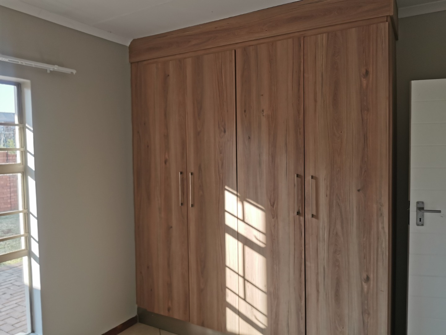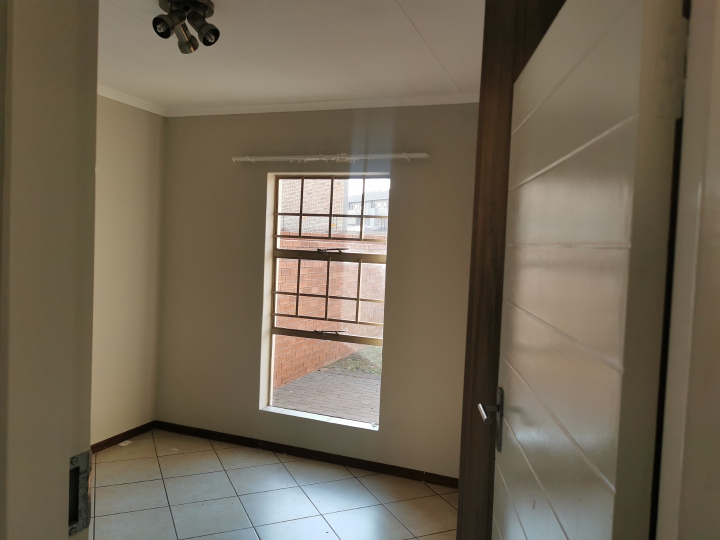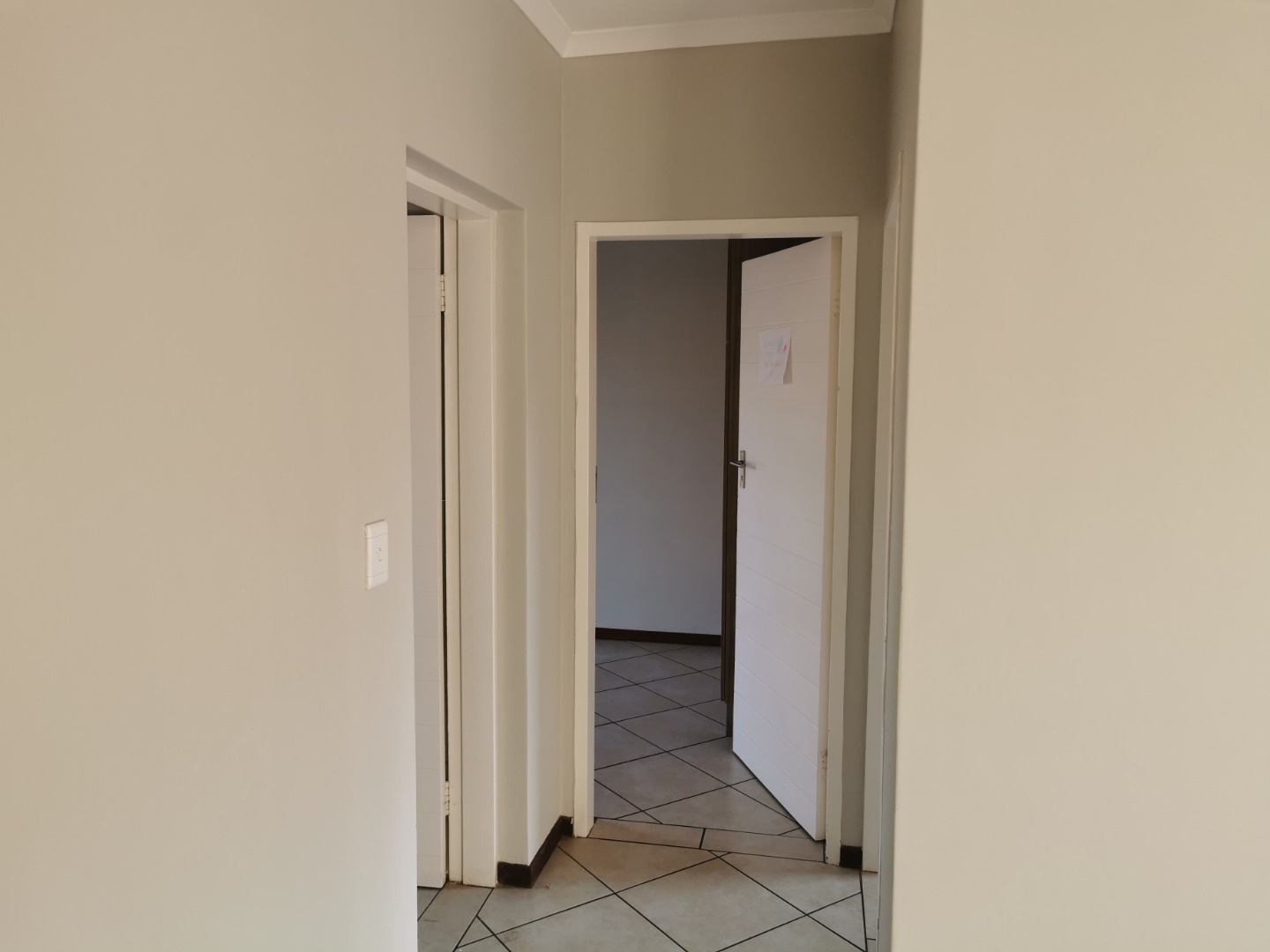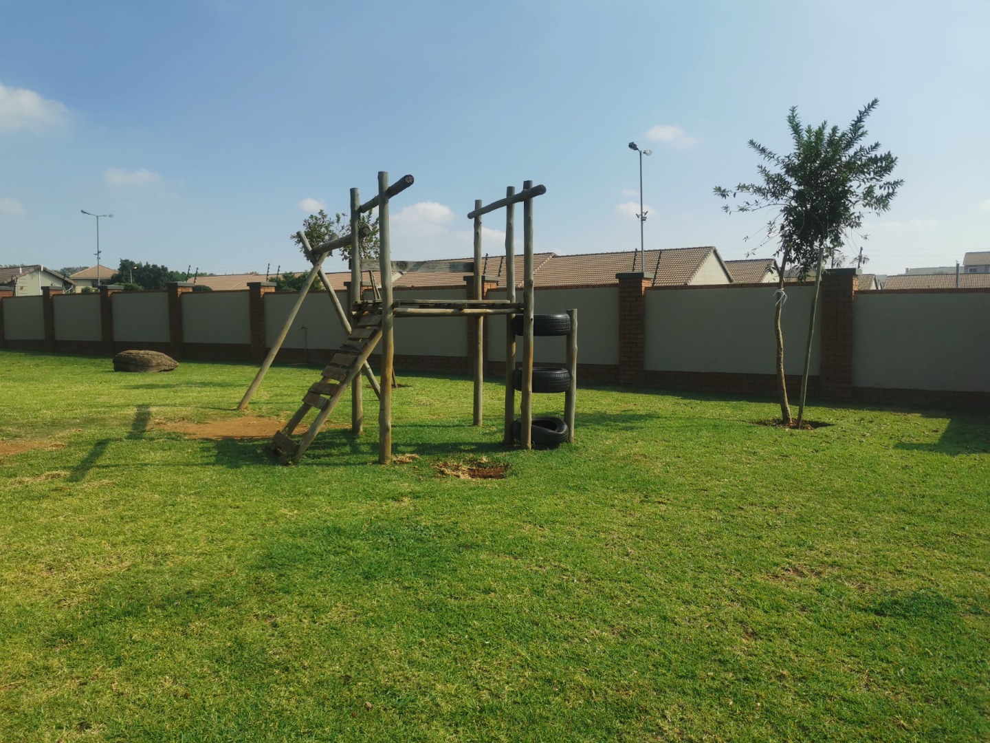 This modern 3-bedroom, 2-bathroom rental property offers comfortable living within a well-maintained complex in Monavoni, Centurion. Spanning 95 square meters, the residence features an open-plan design that seamlessly connects the living spaces, creating an inviting atmosphere. The interior boasts neutral wall colours and durable tiled flooring throughout, providing a versatile canvas for personal decor. The heart of the home is its contemporary kitchen, equipped with sleek wooden-look cabinetry, dark granite countertops, and an integrated stove and oven. A practical breakfast bar extends the counter space, ideal for casual dining. Natural light streams in through a kitchen window, complementing the modern light fixtures. Adjacent to the kitchen, the lounge and dining areas offer ample space for relaxation and meals. The three well-proportioned bedrooms include an ensuite bathroom, ensuring privacy and convenience. The property's exterior features a durable tiled roof and a combination of painted walls and brickwork. A covered patio with sliding glass doors provides an excellent outdoor living space, overlooking a private, neatly kept lawn and paved walkways, perfect for low-maintenance enjoyment. Prioritising peace of mind, the home is fitted with security bars on windows and security gates on doors, enhancing safety. Furthermore, the inclusion of solar water heaters contributes to energy efficiency, offering a sustainable living solution and potential cost savings. This property is designed for a convenient, secure, and energy-conscious lifestyle. Situated in Monavoni, Centurion, this property benefits from its location within a vibrant community. Residents enjoy easy access to local amenities and transport routes, making it an ideal choice for professionals or families seeking a balanced lifestyle in South Africa. Key Features: - Three spacious bedrooms, one with an ensuite - Two modern bathrooms - Contemporary kitchen with granite countertops and breakfast bar - Open-plan lounge and dining area - Covered patio and private lawn - Energy-efficient solar water heating - Enhanced security with burglar bars and security gates - Two dedicated parking spaces - Located in a well-maintained complex in Monavoni