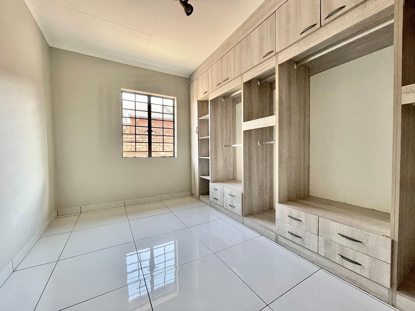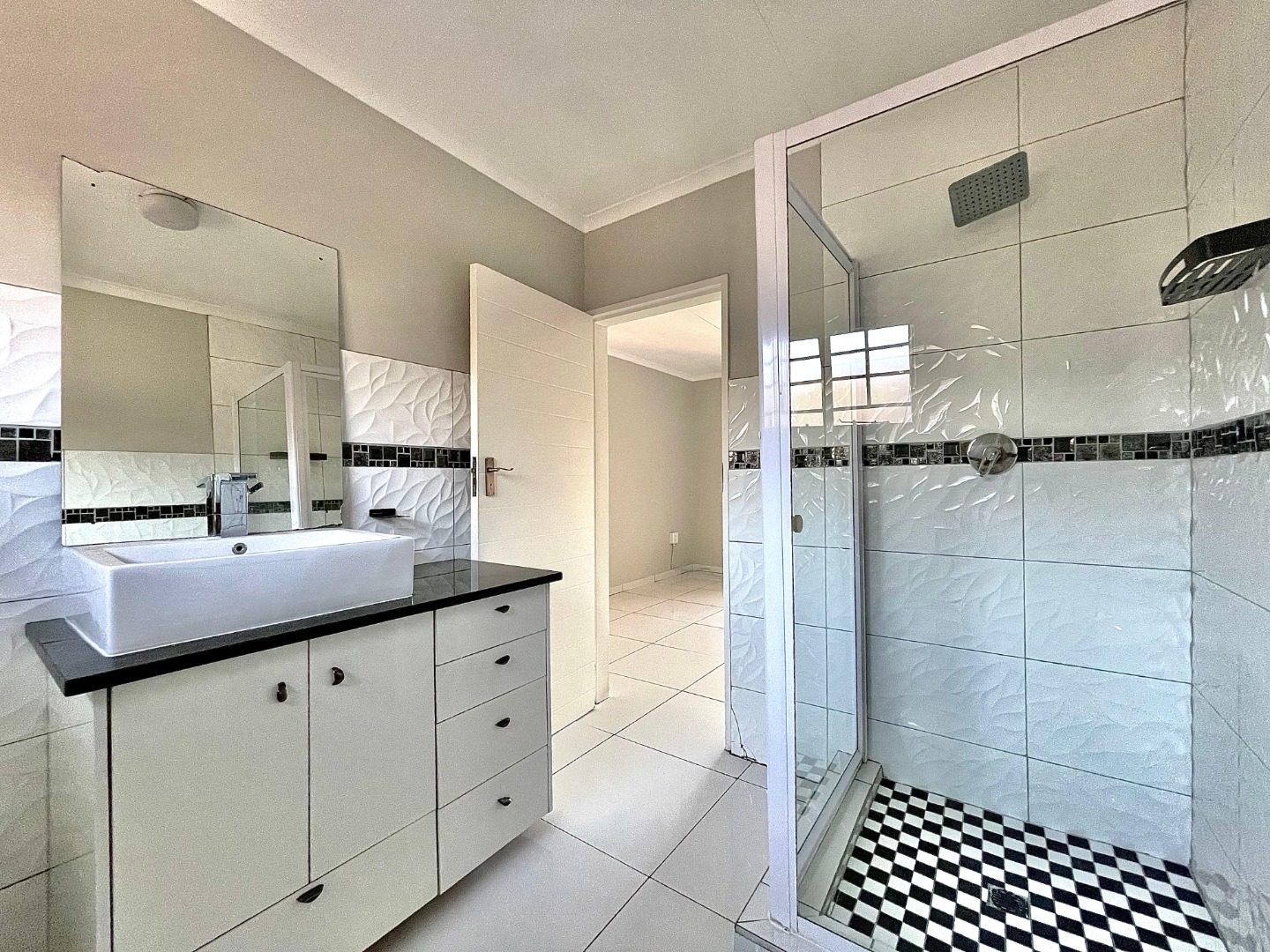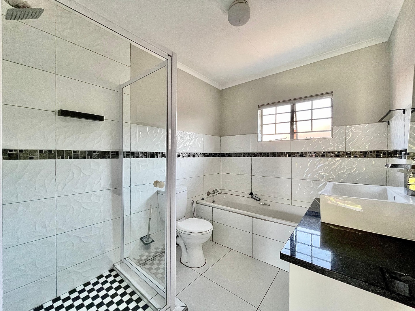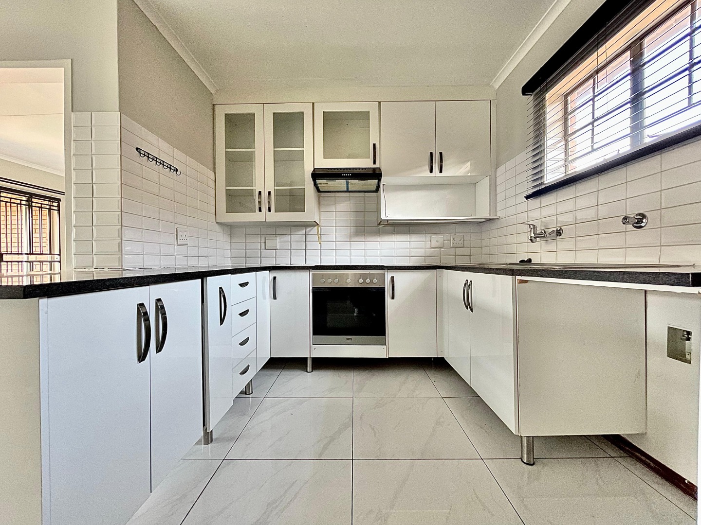 Presenting a meticulously appointed residential rental property spanning 95 square metres, ideally situated within a secure complex in Sagewood, Midrand. This contemporary residence comprises three well-proportioned bedrooms and two bathrooms, including a private en-suite, offering optimal comfort and privacy for its occupants. The interior boasts a modern aesthetic, featuring a dedicated lounge and a distinct dining room, providing ample space for both relaxation and formal entertaining. The heart of this home is its sophisticated kitchen, designed for both style and functionality. It showcases sleek white cabinetry complemented by dark granite countertops and a pristine white subway tile backsplash. Equipped with a built-in oven, extractor fan, and a double sink, the kitchen also benefits from an integrated wine rack and a dedicated alcove for a refrigerator, ensuring a seamless culinary experience. The property further includes two designated parking bays, enhancing convenience for residents. Externally, the property features durable red face-brick construction with modern dark grey accents, ensuring a low-maintenance facade. Security is paramount, with a robust security gate and window grilles providing peace of mind. The neatly paved walkways contribute to the property's well-maintained appearance, reflecting a commitment to quality living. This rental property represents a prudent choice for professionals or small families seeking a modern, secure, and conveniently located home in Midrand. Sagewood offers excellent connectivity to major arterial routes and essential amenities, making it a highly desirable residential node within South Africa's dynamic economic hub. Key Features: * Three Bedrooms, Two Bathrooms (One En-suite) * Modern Kitchen with Granite Countertops and Built-in Oven * Dedicated Lounge and Dining Room * 95 sqm Floor Size * Two Parking Bays * Secure Complex Living with Security Gate and Window Grilles * Durable Face-Brick Exterior * Contemporary Finishes Throughout