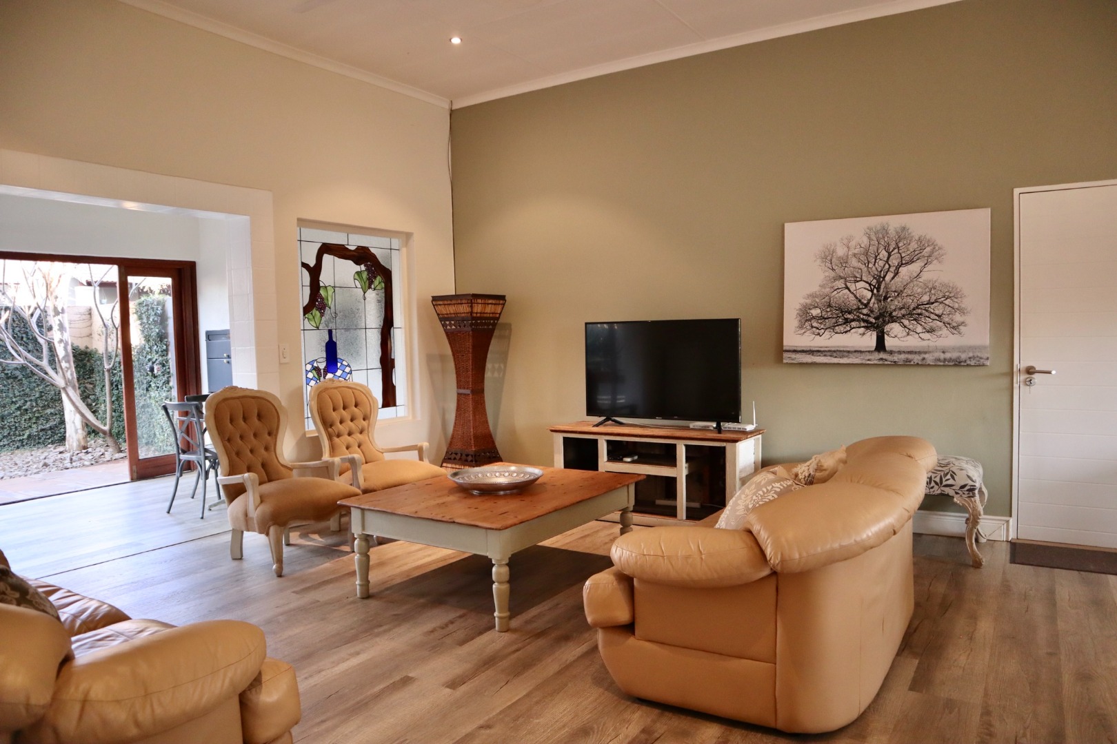 This property is perfectly tailored for discerning professionals or small families seeking a lock-up-and-go lifestyle without compromising on luxury or convenience. The private patio, complete with a built-in braai, extends into a charming garden, offering a serene escape and a picturesque scenic view. Small pets are welcome, adding to the home's appeal. Residents benefit from access to an array of exclusive estate amenities, including a communal braai area, a sophisticated club house, and recreational facilities such as a squash court and tennis court.