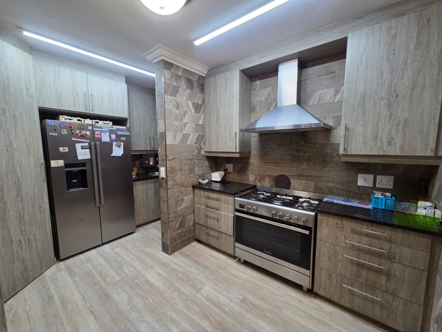 The stunning contemporary kitchen boasts generous cupboard space, a large gas hob, electric oven, and is complemented by a spacious scullery and laundry with room for three appliances – plus a dedicated coffee station for your morning routine.