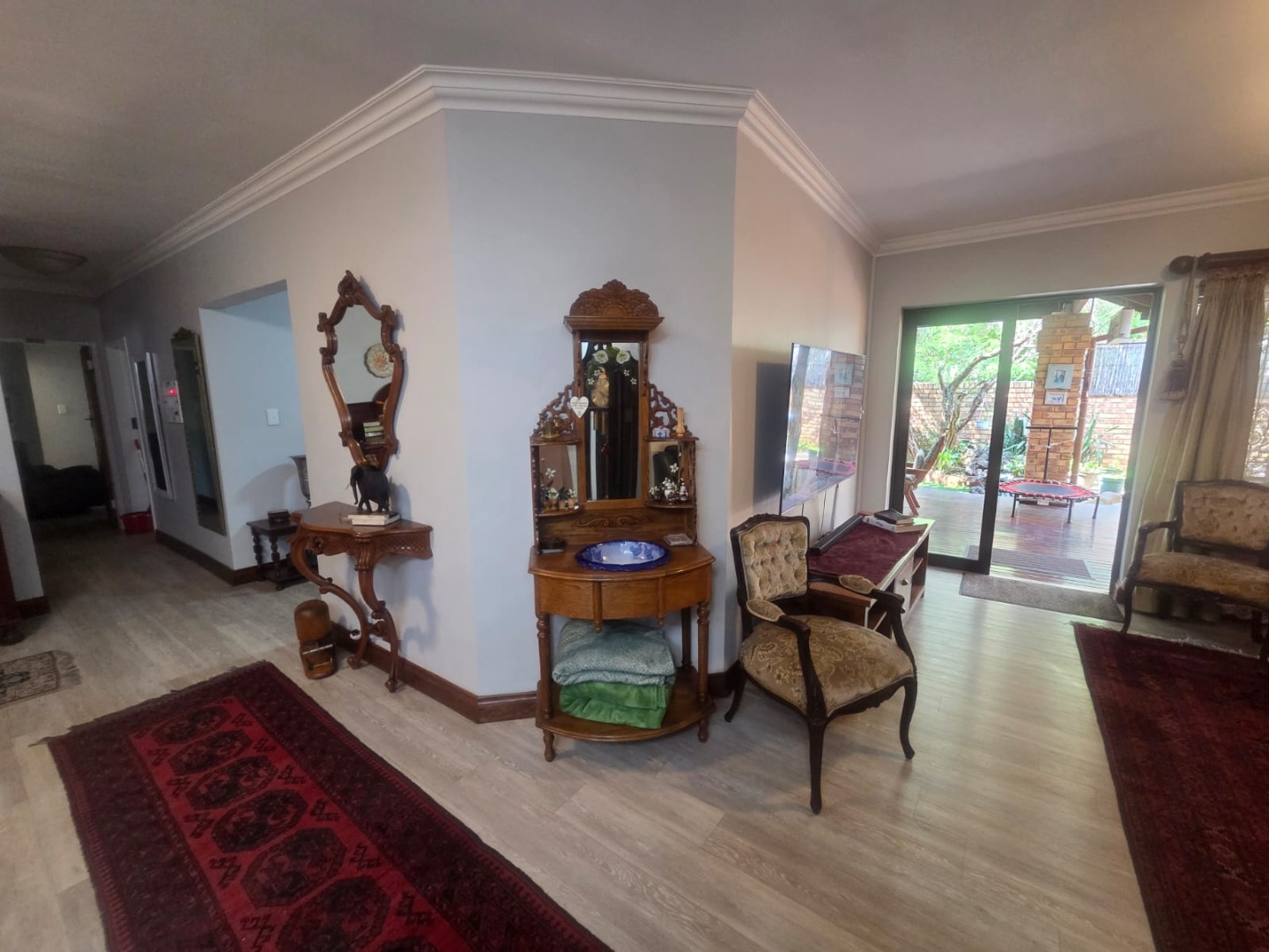 Multiple living areas include a formal lounge and a separate TV/family room, creating versatile spaces for both relaxation and entertaining. These flow seamlessly onto a large undercover patio with ample space for both dining and outdoor lounging.