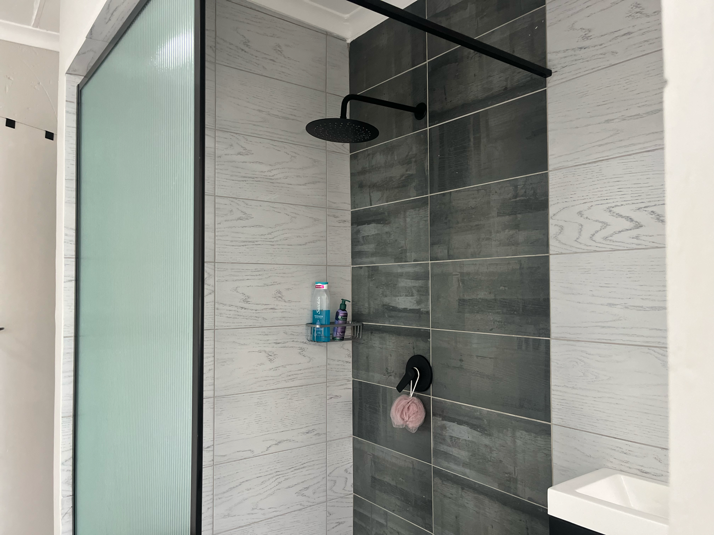 The three well-proportioned bedrooms provide comfortable retreats. The two bathrooms are tastefully designed, with the main en-suite featuring a luxurious freestanding bathtub, tiled walls with a mosaic accent, and modern chrome fixtures.