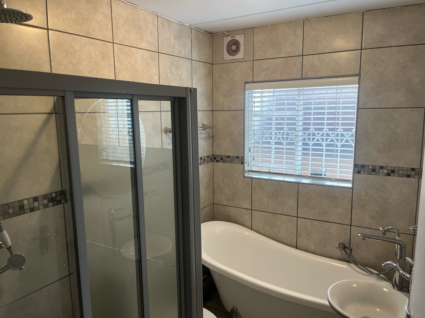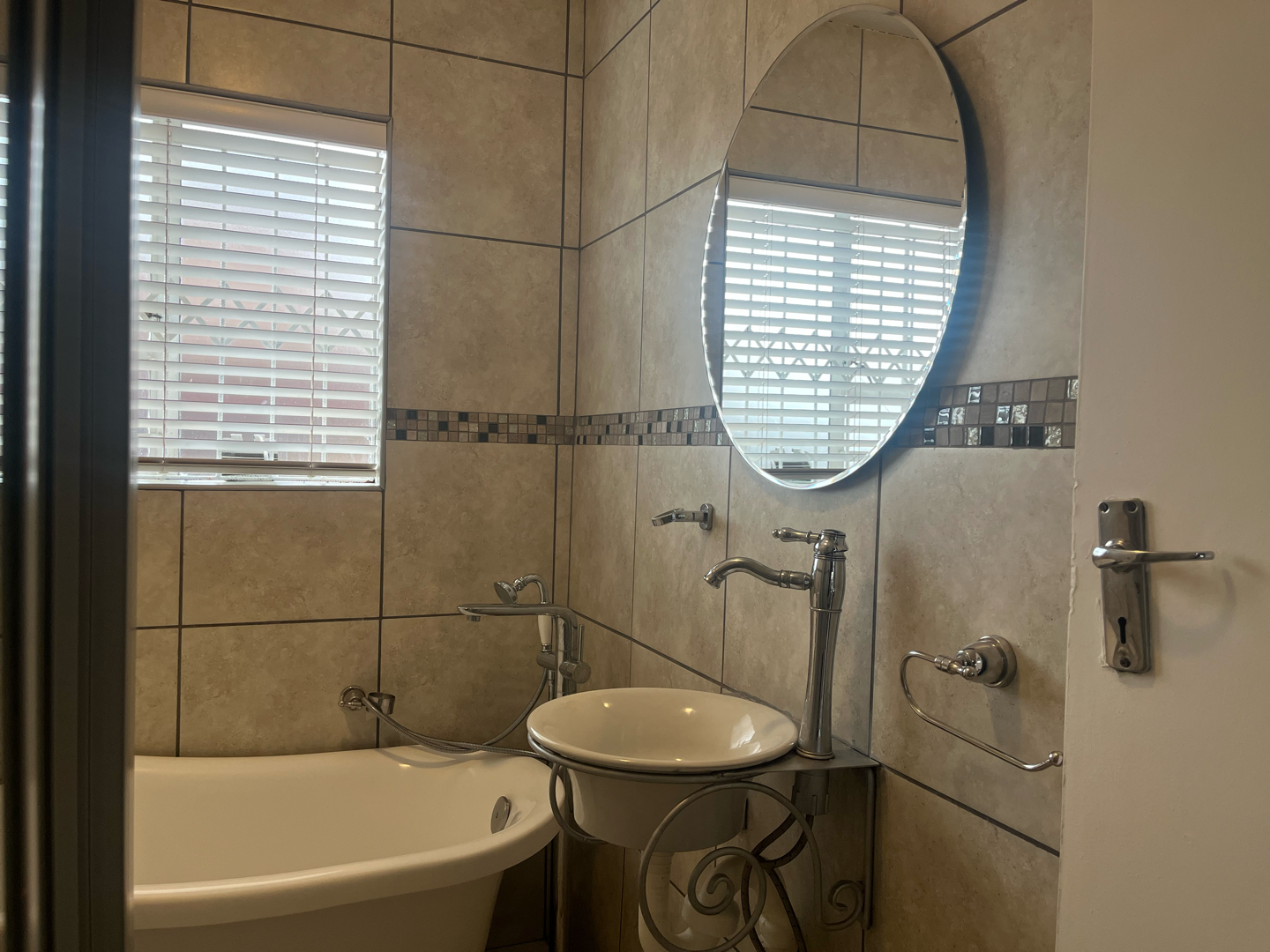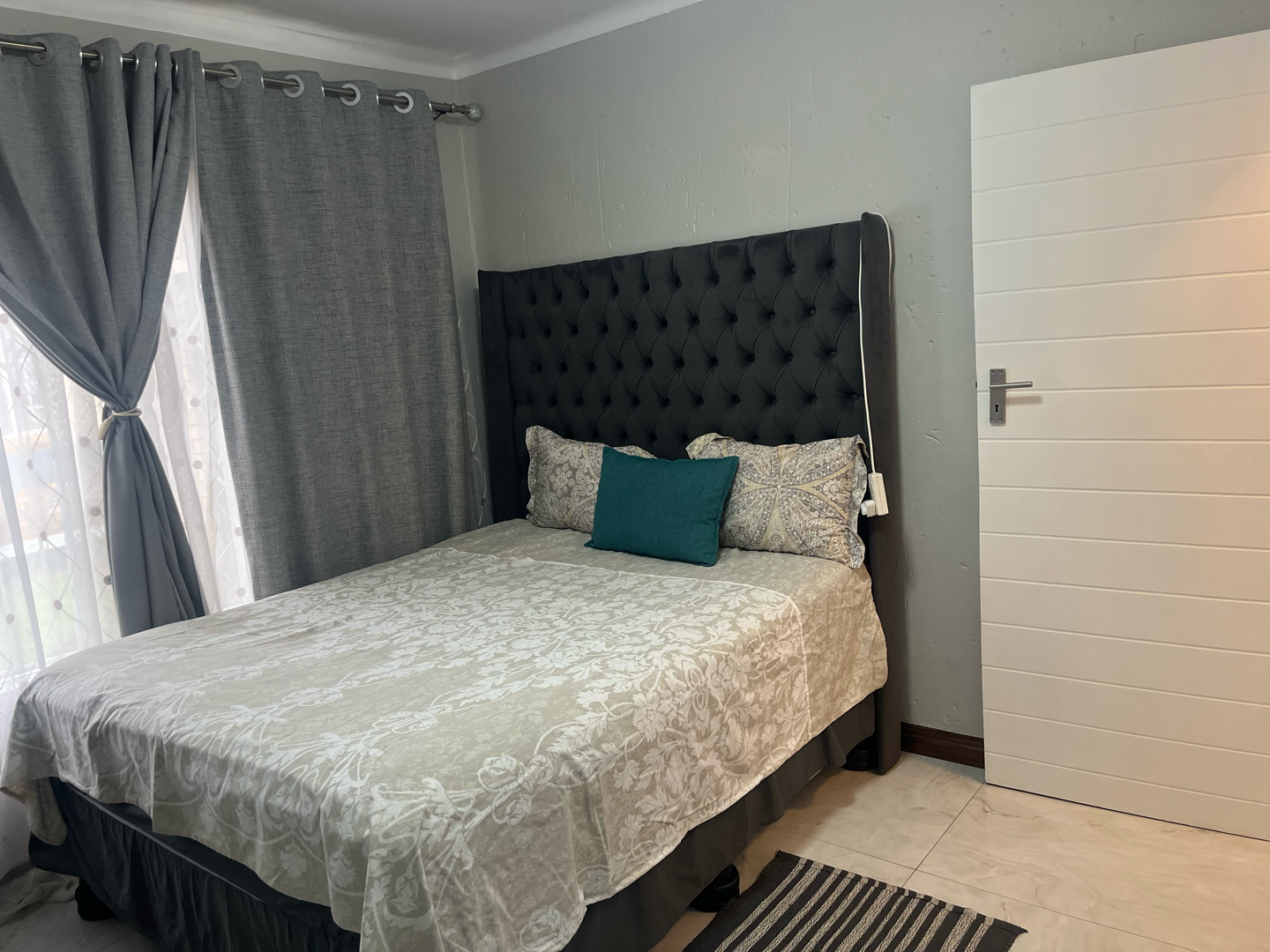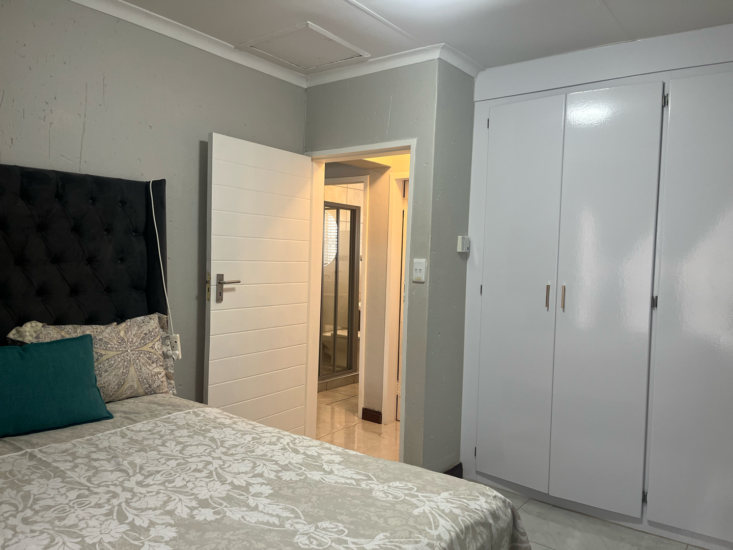 Outside, the property offers a meticulously maintained garden with manicured lawns, decorative pebble paths, and stepping stones. Raised garden beds and a mature fruit tree add charm, while an in-ground trampoline provides a dedicated play area. The home benefits from excellent security features, including 24-hour security, an access gate, intercom system, security post, burglar bars, and security trellis gates on all glass doors and windows, ensuring peace of mind. The property is totally walled and includes electric fencing. Pets are allowed, making this an ideal family home, complete with a single garage and additional parking.