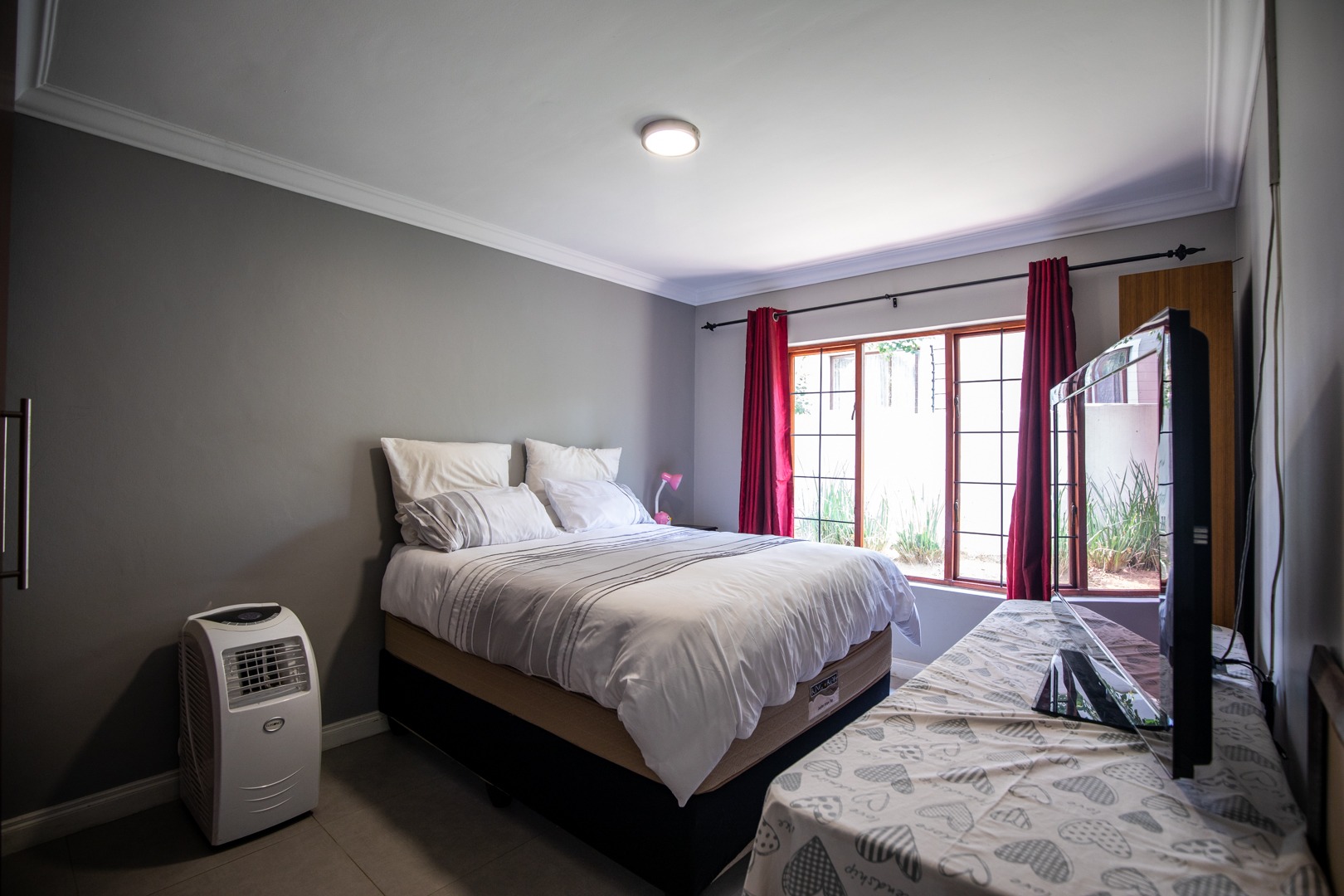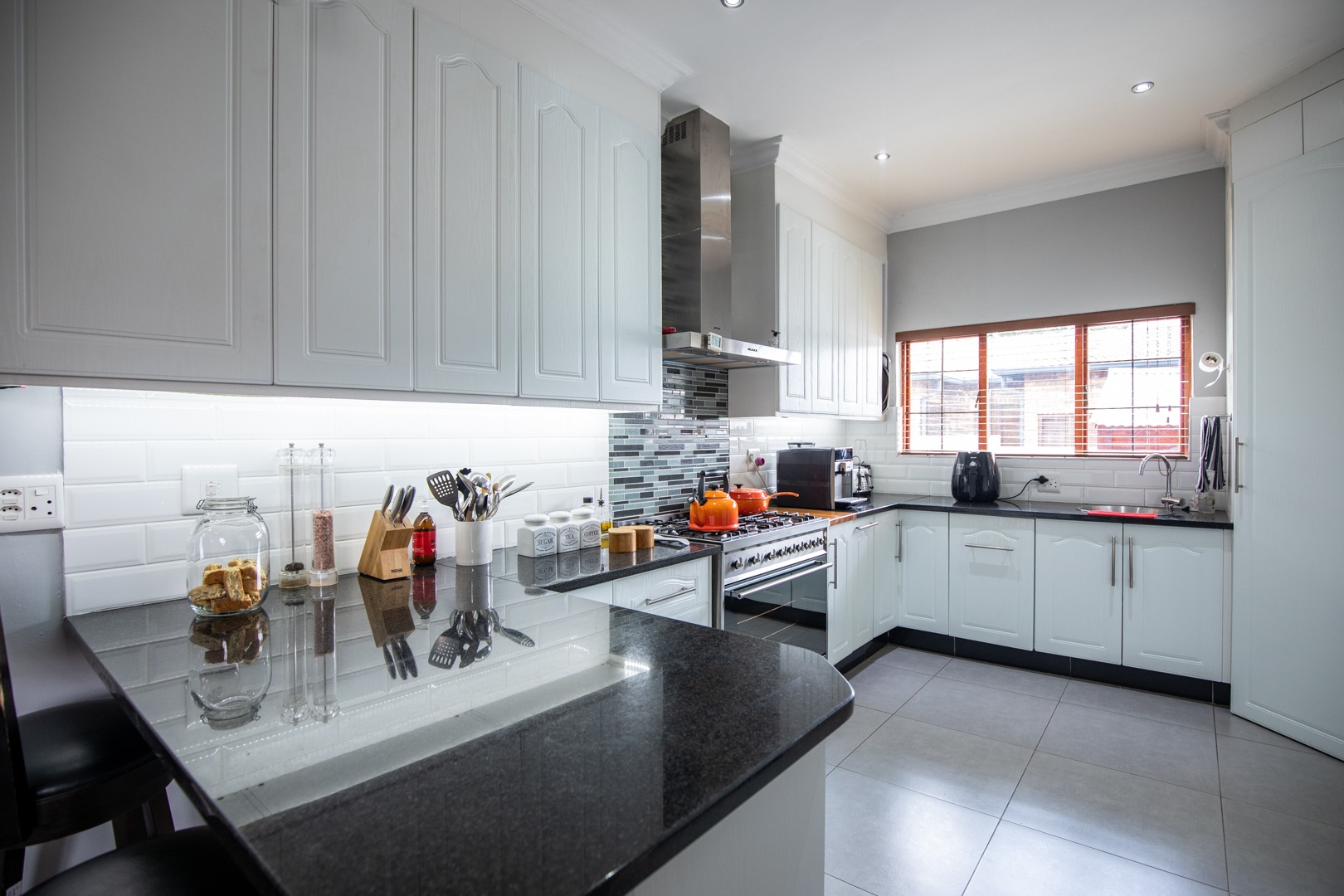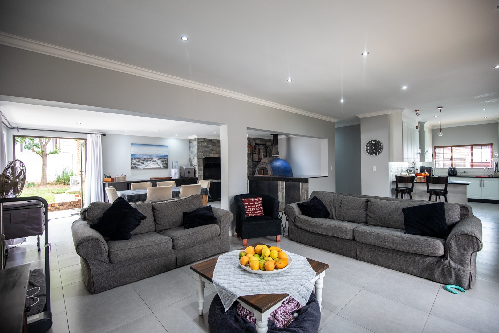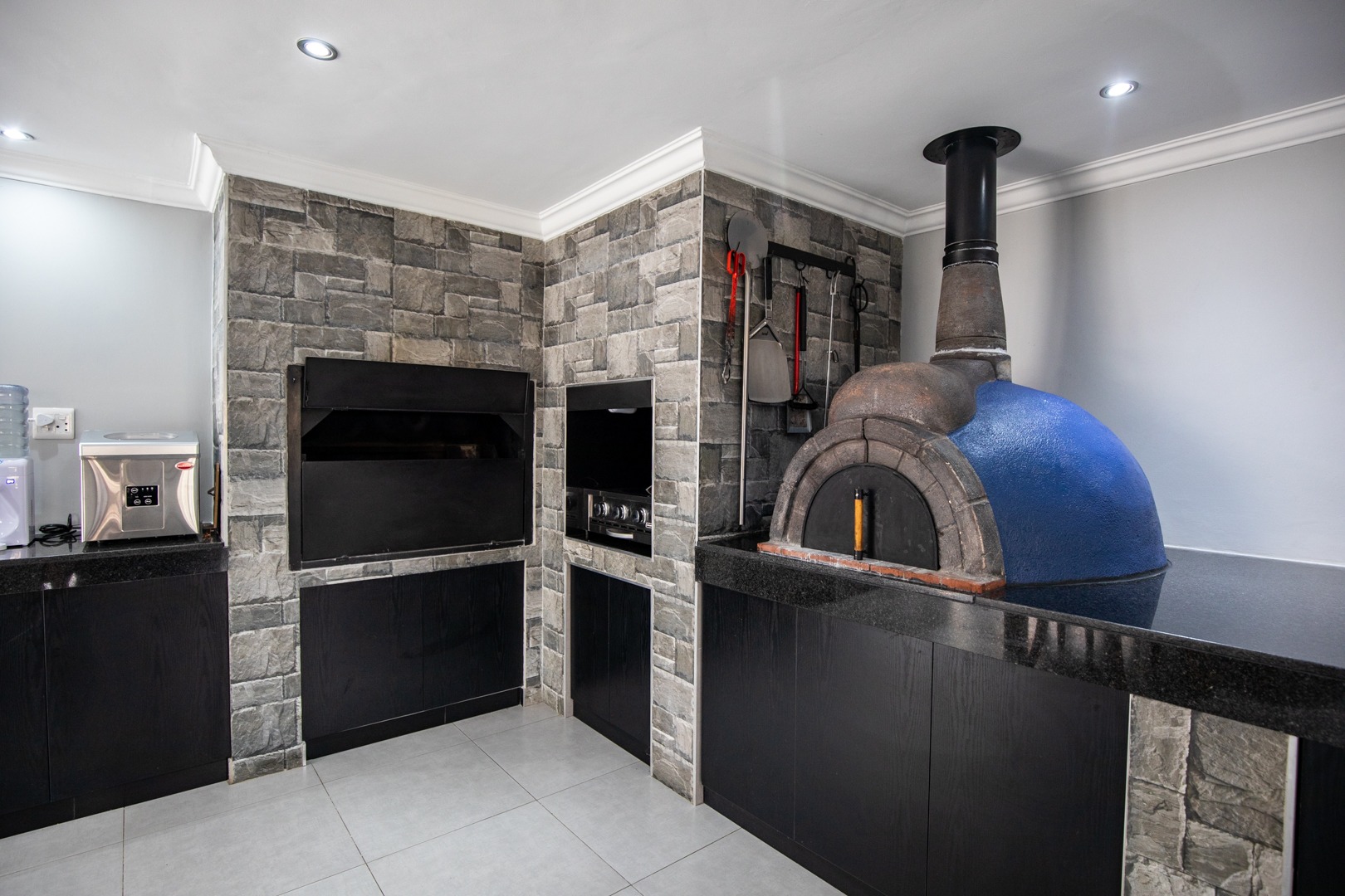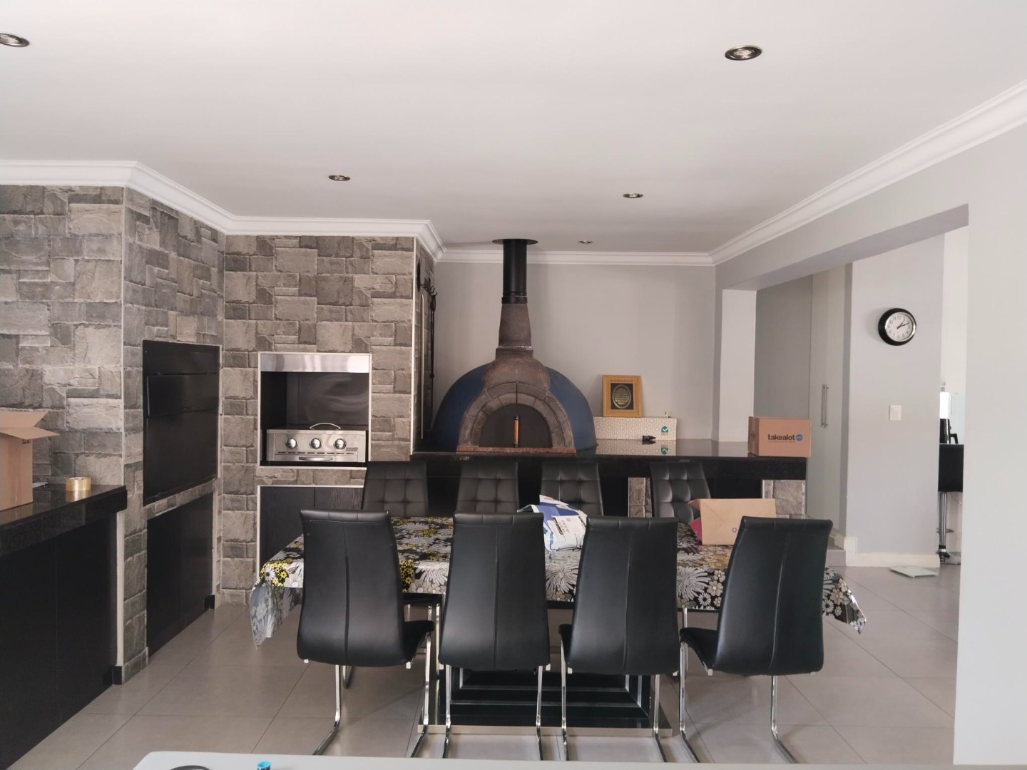 Nestled within a secure estate in a tranquil cul-de-sac in Amberfield, Centurion, this modern 4-bedroom residence offers both comfort and peace of mind. The property boasts excellent kerb appeal with its classic brick exterior, tiled roof, and established landscaping. A spacious paved driveway leads to a double garage and an additional carport, providing ample secure parking. Enhanced security features include a large access gate and a security gate at the main entrance, ensuring a safe environment for residents. Step inside to discover a thoughtfully designed open-plan layout, seamlessly connecting the living, dining, and kitchen areas. The interior features modern neutral grey walls, durable tiled flooring throughout, and elegant recessed lighting, creating a bright and inviting atmosphere. The well-appointed kitchen includes a scullery, while the expansive entertainment area is a true highlight, featuring a unique built-in braai and a traditional pizza oven, perfect for hosting gatherings. Sliding doors provide direct access to the garden, blending indoor and outdoor living. This home offers four comfortable bedrooms and two bathrooms, with one being a private ensuite, providing ample space for family living. Practical amenities include a dedicated laundry area, air conditioning for climate control, and outside toilets for convenience. The property is situated within a security estate with 24-hour security, further complemented by a perimeter fence and security gates, ensuring a secure lifestyle. Sustainability is addressed with a solar geyser and water tanks, contributing to reduced utility costs. Amberfield, Centurion, is a sought-after residential area known for its family-friendly environment and convenient access to amenities. Key Features: * 4 Bedrooms, 2 Bathrooms (1 Ensuite) * Open-Plan Living with Tiled Flooring * Built-in Braai and Pizza Oven Entertainment Area * Double Garage and Carport with Paved Driveway * Security Estate with 24-Hour Security & Access Gate * Solar Geyser and Water Tanks * Air Conditioning * Pets Allowed