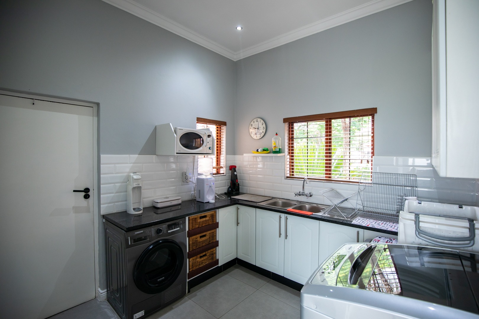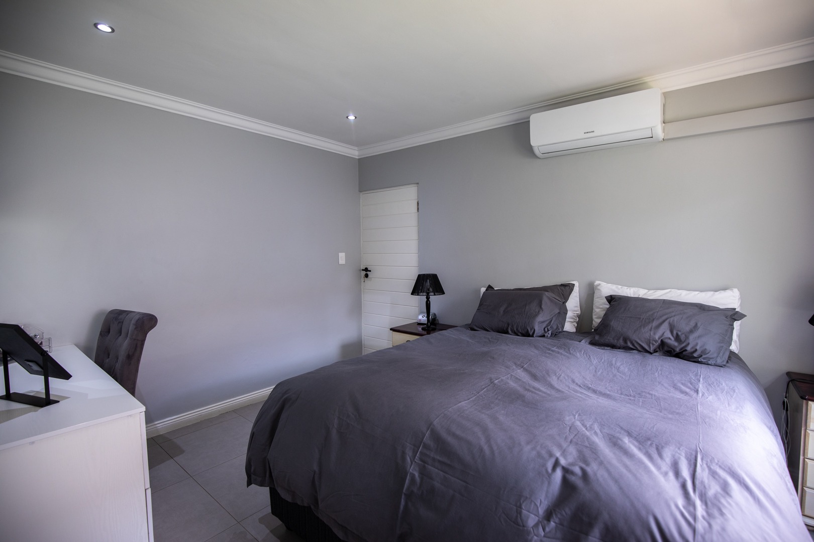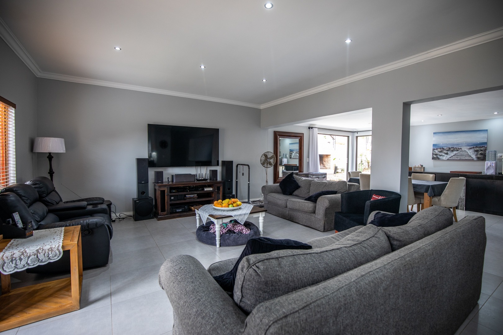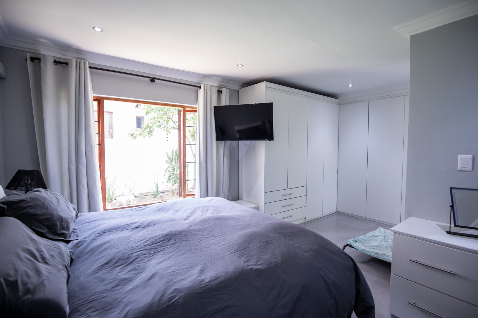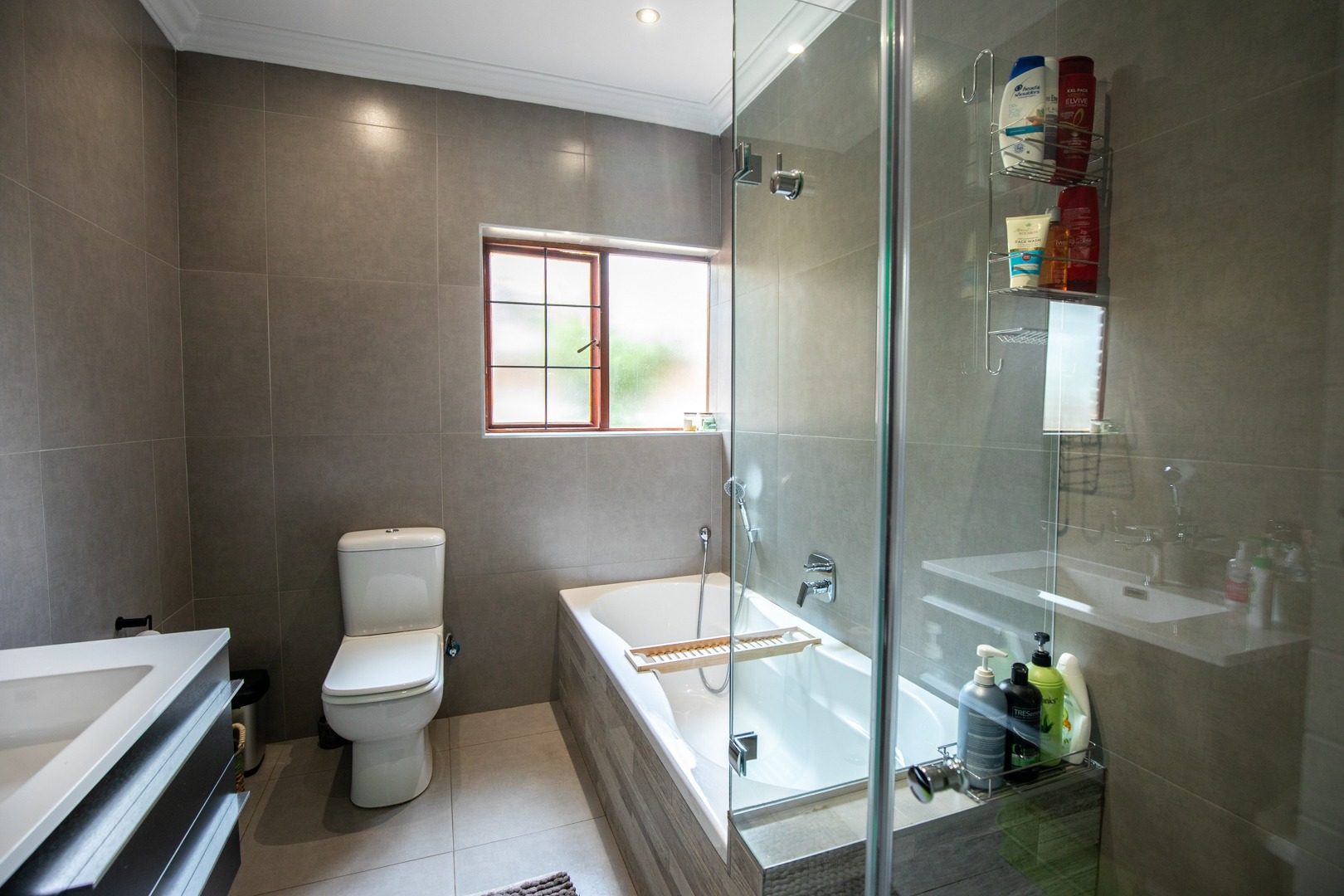 Nestled within a secure estate in a tranquil cul-de-sac in Amberfield, Centurion, this modern 4-bedroom residence offers both comfort and peace of mind. The property boasts excellent kerb appeal with its classic brick exterior, tiled roof, and established landscaping. A spacious paved driveway leads to a double garage and an additional carport, providing ample secure parking. Enhanced security features include a large access gate and a security gate at the main entrance, ensuring a safe environment for residents. Step inside to discover a thoughtfully designed open-plan layout, seamlessly connecting the living, dining, and kitchen areas. The interior features modern neutral grey walls, durable tiled flooring throughout, and elegant recessed lighting, creating a bright and inviting atmosphere. The well-appointed kitchen includes a scullery, while the expansive entertainment area is a true highlight, featuring a unique built-in braai and a traditional pizza oven, perfect for hosting gatherings. Sliding doors provide direct access to the garden, blending indoor and outdoor living. This home offers four comfortable bedrooms and two bathrooms, with one being a private ensuite, providing ample space for family living. Practical amenities include a dedicated laundry area, air conditioning for climate control, and outside toilets for convenience. The property is situated within a security estate with 24-hour security, further complemented by a perimeter fence and security gates, ensuring a secure lifestyle. Sustainability is addressed with a solar geyser and water tanks, contributing to reduced utility costs. Amberfield, Centurion, is a sought-after residential area known for its family-friendly environment and convenient access to amenities. Key Features: * 4 Bedrooms, 2 Bathrooms (1 Ensuite) * Open-Plan Living with Tiled Flooring * Built-in Braai and Pizza Oven Entertainment Area * Double Garage and Carport with Paved Driveway * Security Estate with 24-Hour Security & Access Gate * Solar Geyser and Water Tanks * Air Conditioning * Pets Allowed