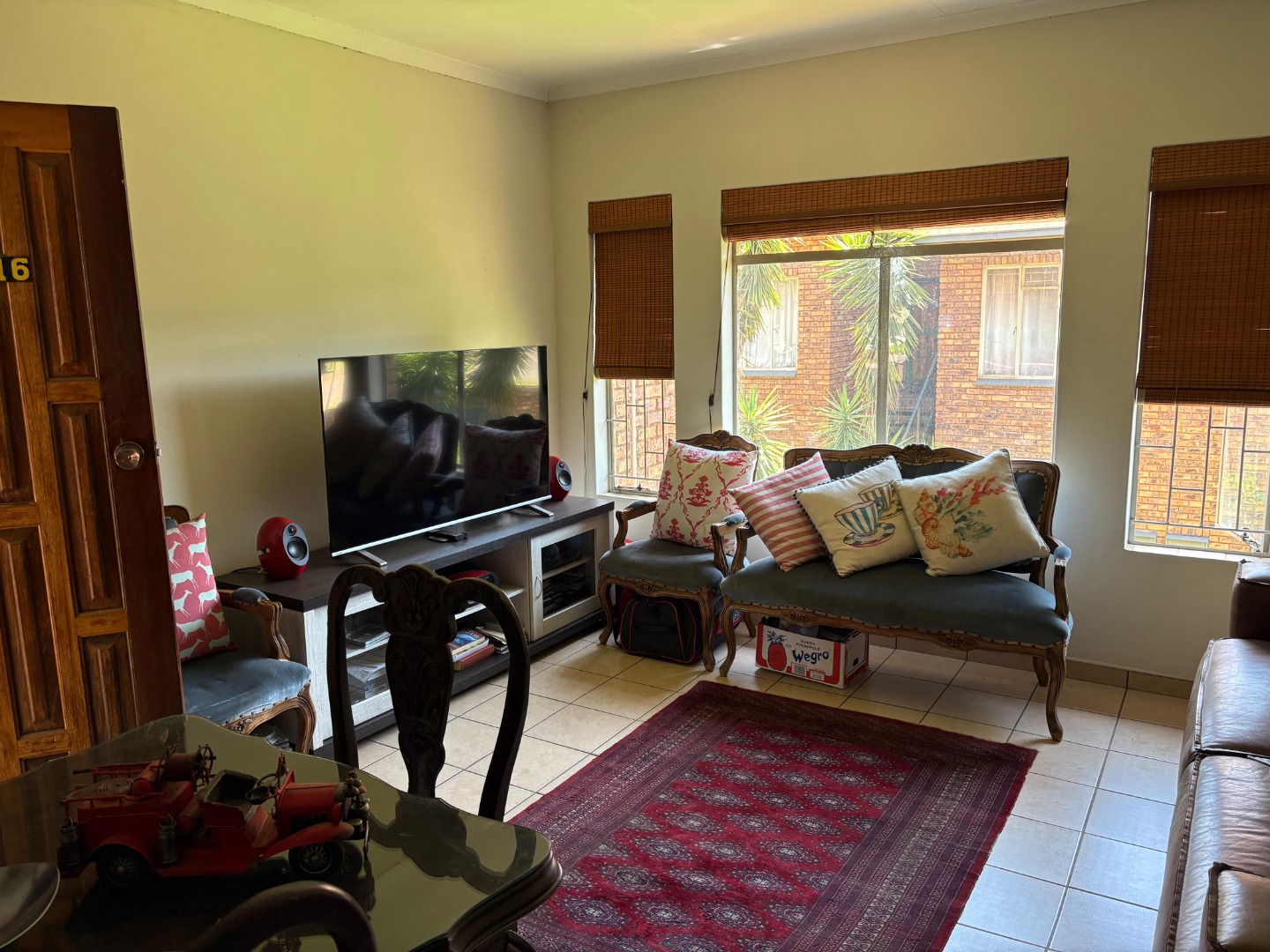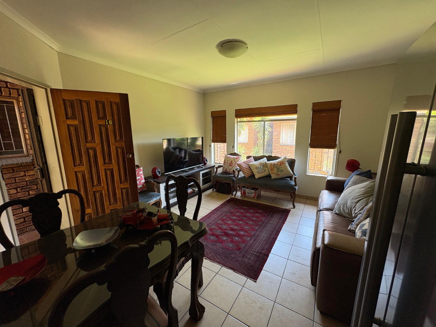 Step into this charming 2-bedroom, 1-bathroom home located in a secure complex in Clubview, Centurion. You'll immediately notice the bright and airy open-plan living and dining area, flooded with natural light from large windows. The durable tiled flooring throughout makes for easy maintenance, and the neutral walls are a blank canvas for your personal touch. Bamboo blinds offer privacy, and for added peace of mind, security bars are fitted on the windows.