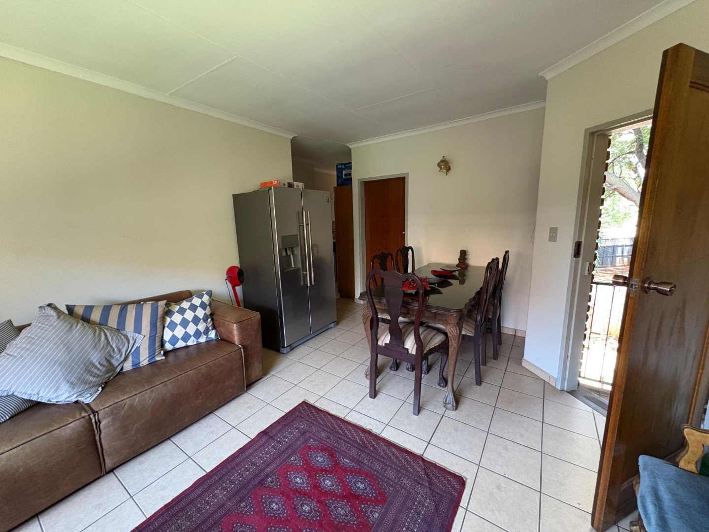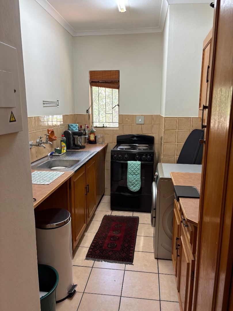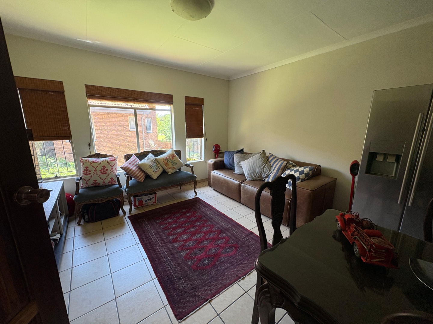 Step into this charming 2-bedroom, 1-bathroom home located in a secure complex in Clubview, Centurion. You'll immediately notice the bright and airy open-plan living and dining area, flooded with natural light from large windows. The durable tiled flooring throughout makes for easy maintenance, and the neutral walls are a blank canvas for your personal touch. Bamboo blinds offer privacy, and for added peace of mind, security bars are fitted on the windows.