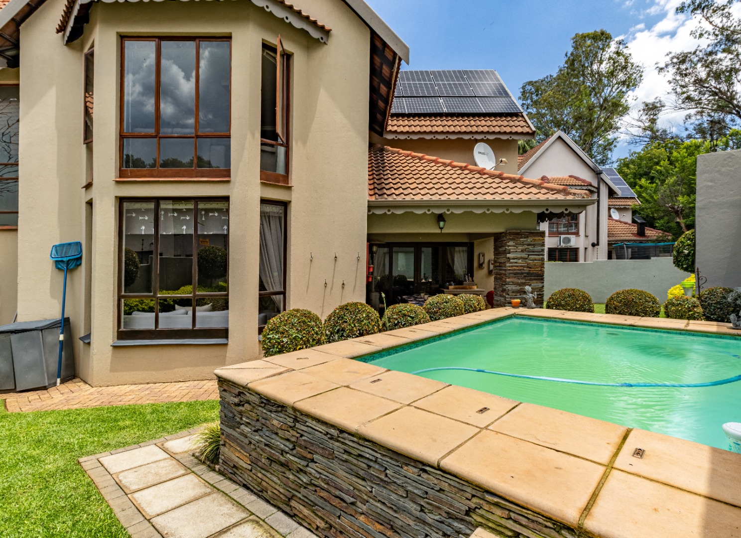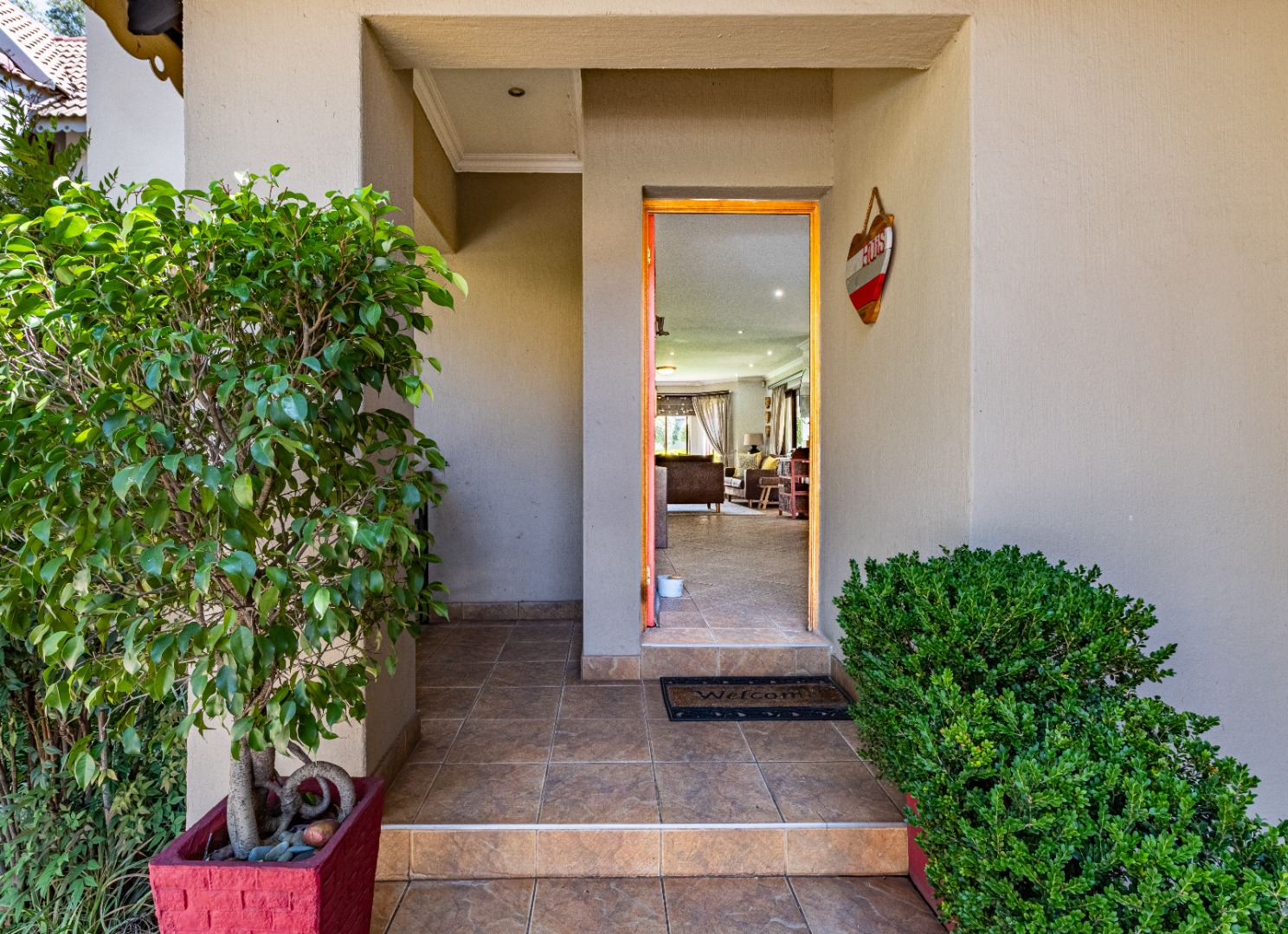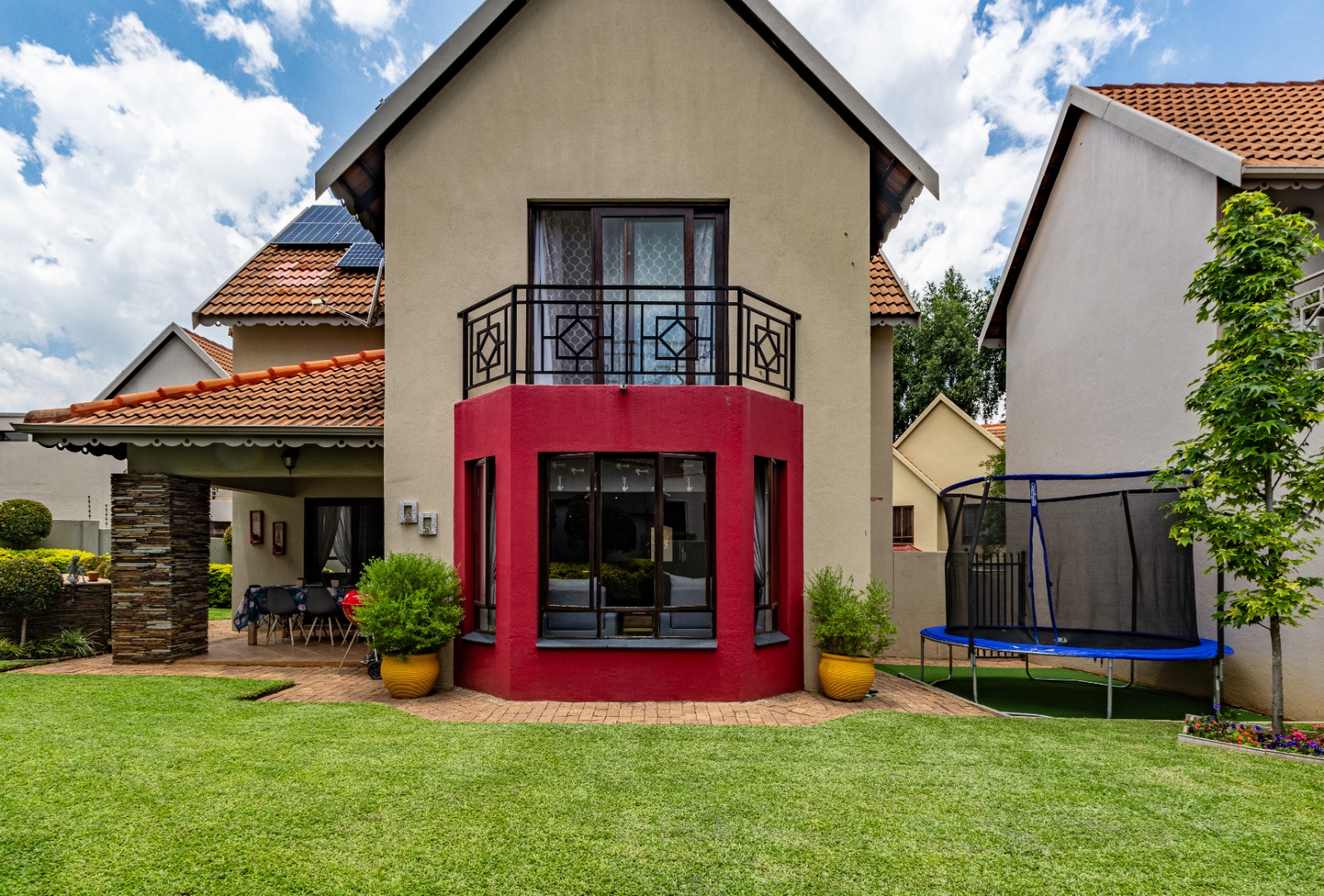 Nestled within the vibrant metropolitan heart of Centurion, this distinguished multi-story residence in Clubview presents an immediate impression of refined elegance and architectural grandeur. The meticulously maintained exterior, adorned with a sophisticated neutral stucco finish and a classic terra cotta tiled roof, exudes timeless appeal. Architectural nuances such as charming bay windows and elegant gables contribute to its distinctive character, while a striking red front door offers a welcoming splash of colour. A spacious paved driveway, leading to a double garage, ensures ample parking and enhances the property's commanding street presence, all set amidst lush, manicured landscaping that frames this exquisite home beautifully.