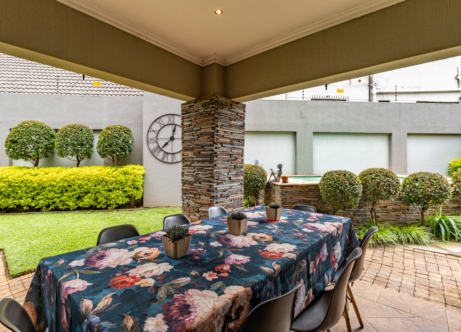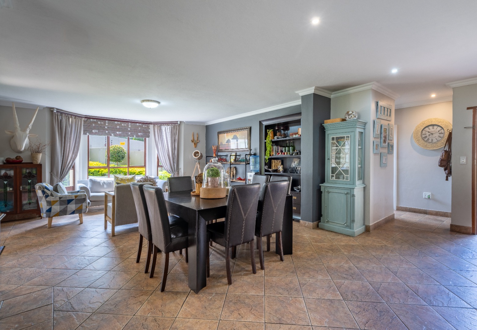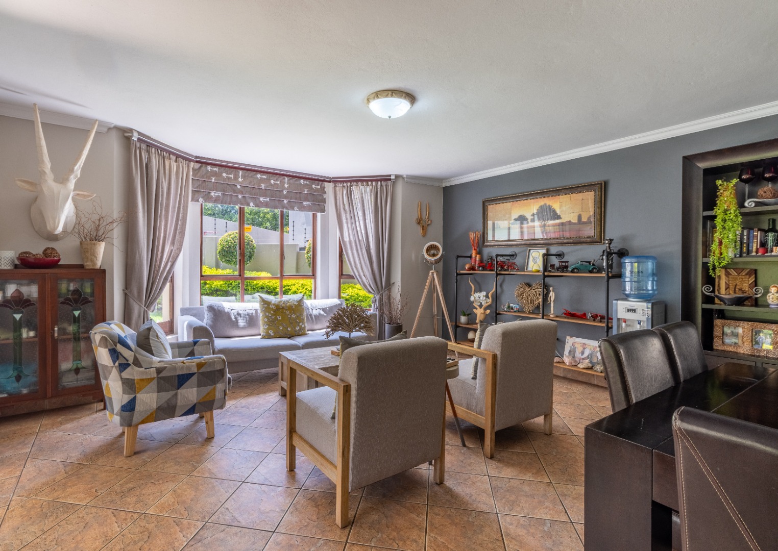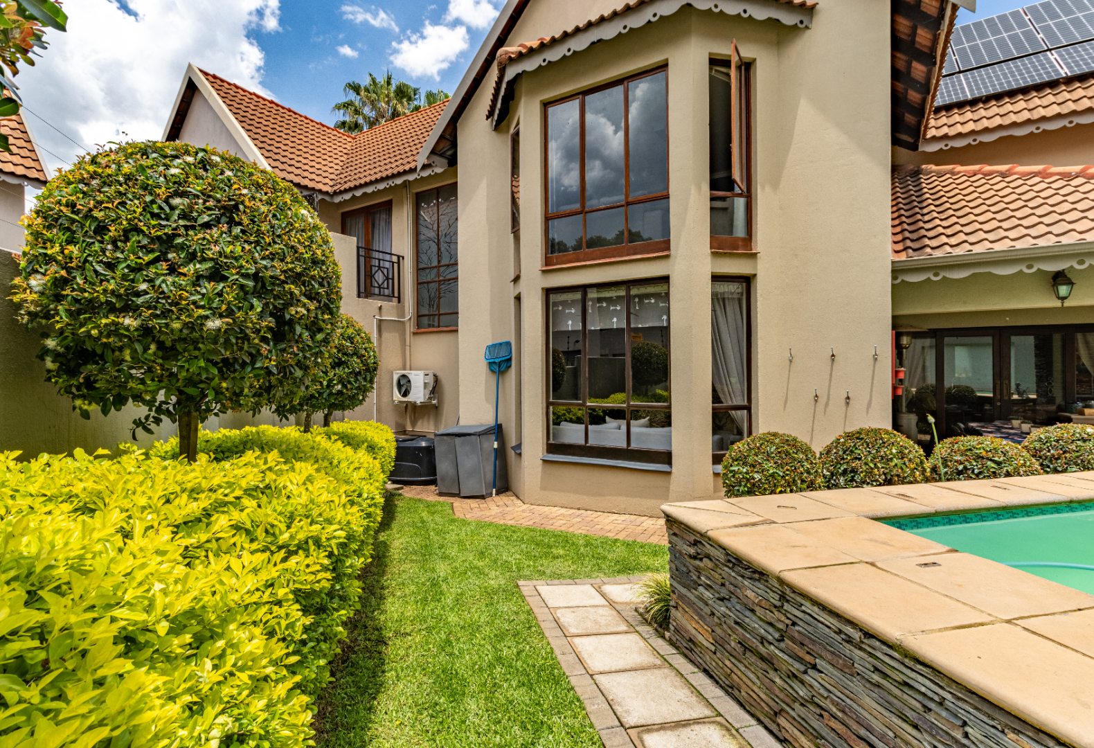 Nestled within the vibrant metropolitan heart of Centurion, this distinguished multi-story residence in Clubview presents an immediate impression of refined elegance and architectural grandeur. The meticulously maintained exterior, adorned with a sophisticated neutral stucco finish and a classic terra cotta tiled roof, exudes timeless appeal. Architectural nuances such as charming bay windows and elegant gables contribute to its distinctive character, while a striking red front door offers a welcoming splash of colour. A spacious paved driveway, leading to a double garage, ensures ample parking and enhances the property's commanding street presence, all set amidst lush, manicured landscaping that frames this exquisite home beautifully.