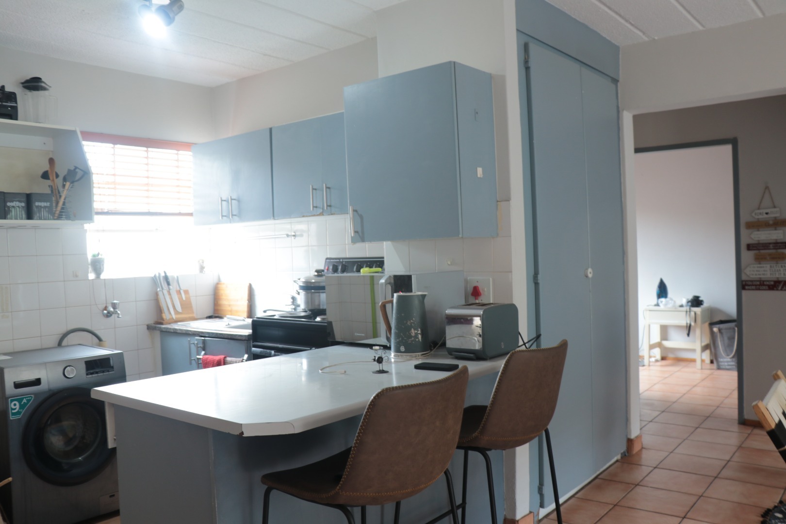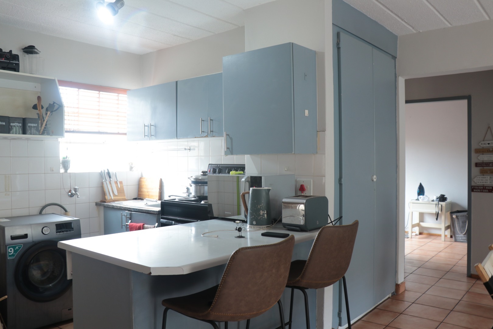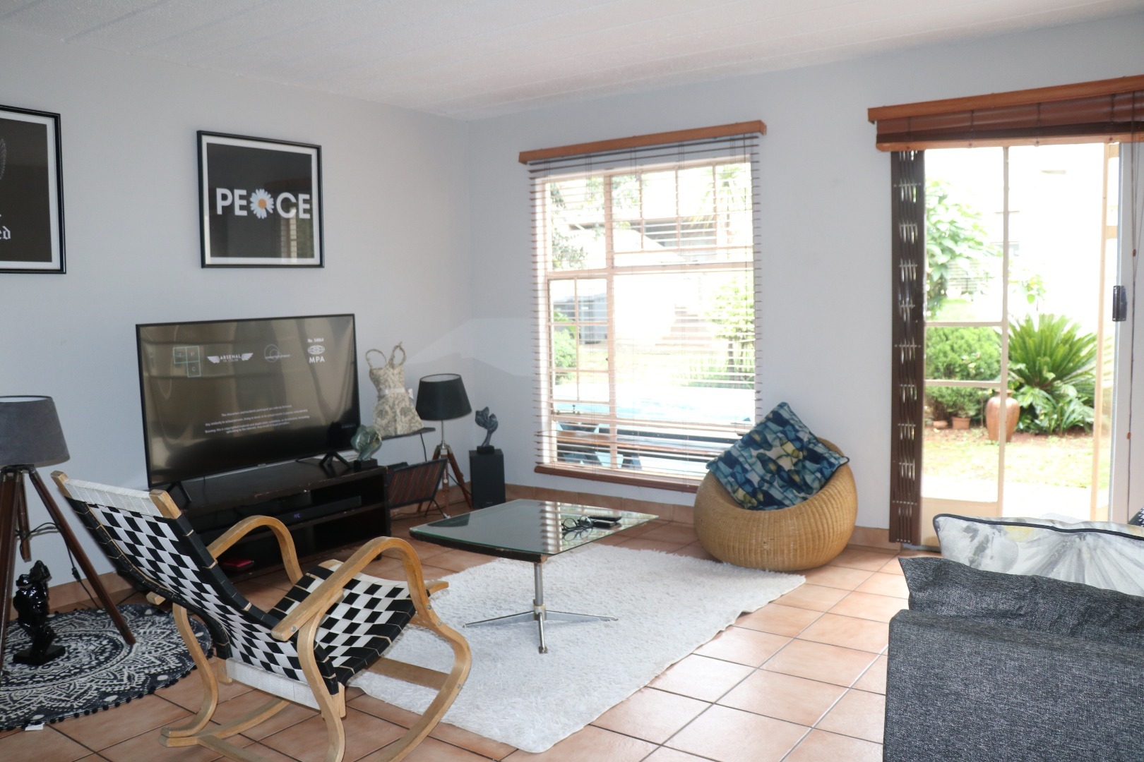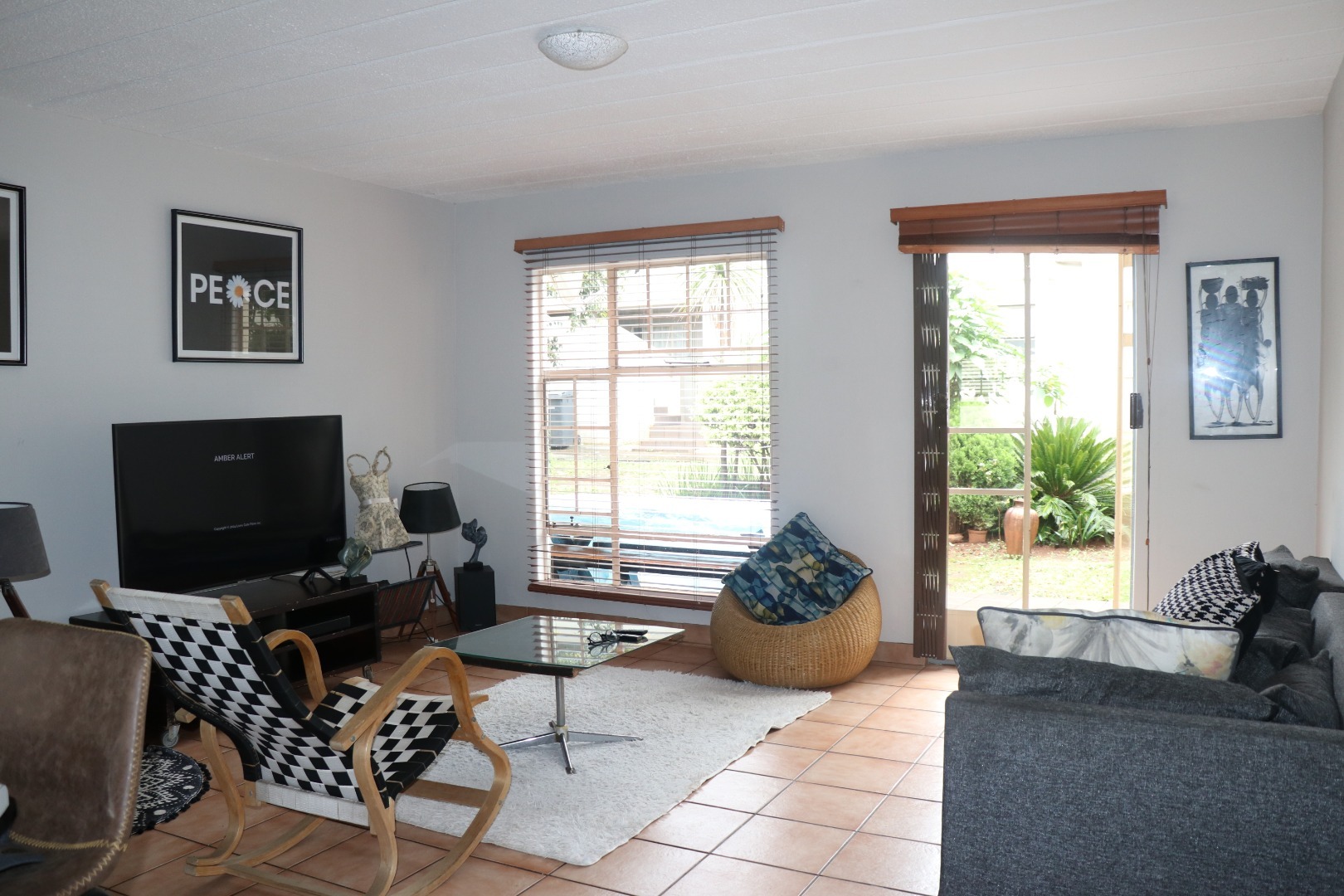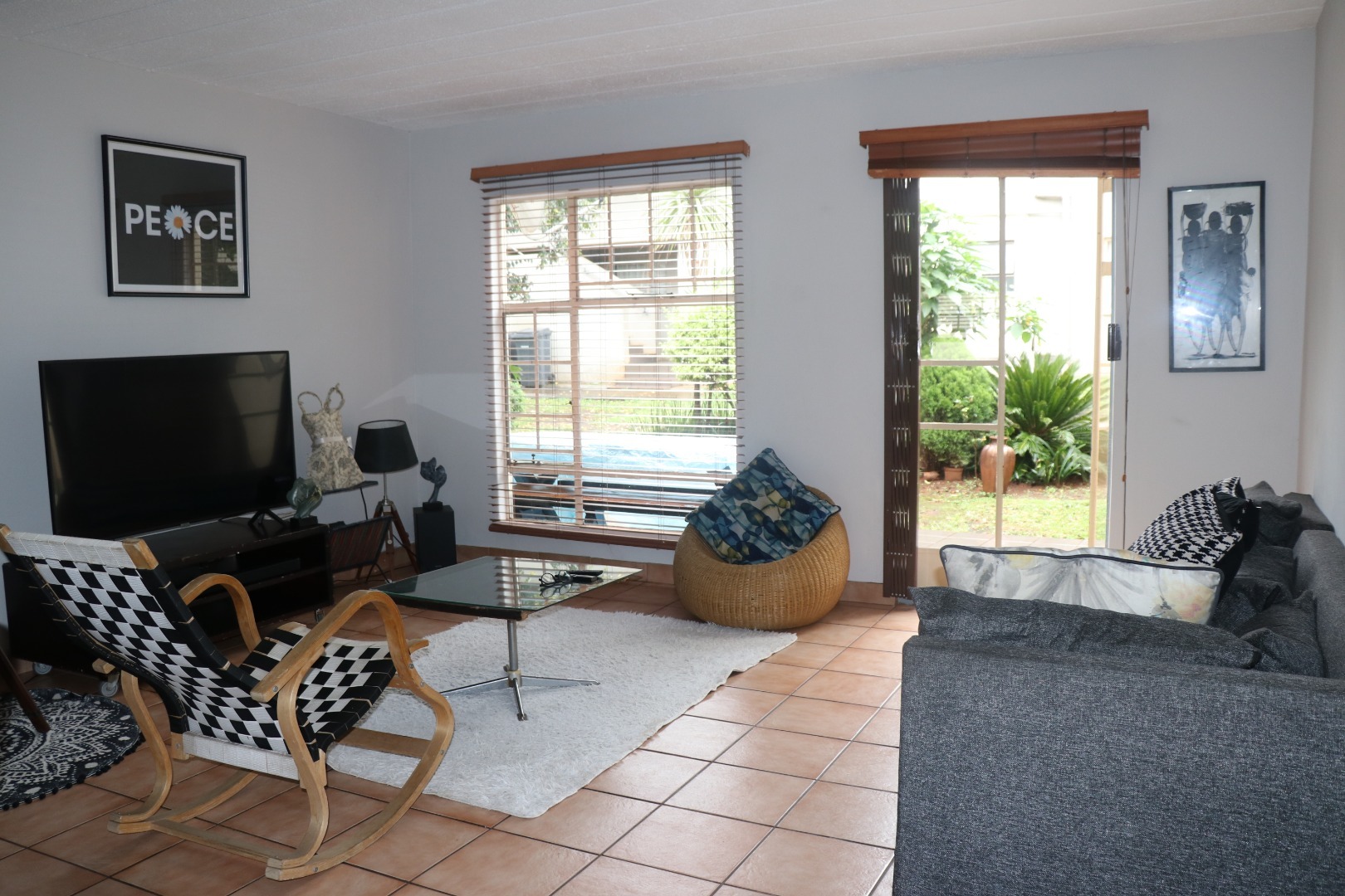 This inviting 2-bedroom, 1-bathroom apartment is situated within a secure complex in the desirable Die Hoewes area of Centurion. Offering a practical and comfortable living space, this property is ideal for individuals or small families seeking convenience and peace of mind within a well-maintained security estate. Upon entering, you are greeted by a bright living area featuring durable tiled flooring and ample natural light streaming through windows fitted with adjustable wooden blinds. The neutral white walls provide a versatile canvas, allowing for personalised decor. This functional space accommodates a modern grey sofa, creating a comfortable spot for relaxation and everyday living. The apartment comprises two well-proportioned bedrooms, one of which benefits from a practical built-in wardrobe, offering essential storage solutions. The single bathroom is thoughtfully designed with tiled walls and flooring, a modern sink vanity providing under-sink storage, and a convenient shower cubicle. A window ensures natural light and ventilation. Externally, the property includes a tiled outdoor area, perfect for a small seating arrangement or potted plants, enhancing the living experience. Residents also benefit from one dedicated parking bay within the complex, adding to the practicality of this home. The security estate environment provides an added layer of safety and community living. Die Hoewes is a well-established suburb in Centurion, known for its accessibility to local amenities, shopping centres, and major transport routes. This location offers a balanced lifestyle with urban conveniences close at hand. Key Features: * Two comfortable bedrooms * One modern bathroom with shower * Bright living area with tiled flooring * Natural light and wooden blinds * Built-in wardrobe in a bedroom * Tiled outdoor space * One dedicated parking bay * Located in a secure complex/estate