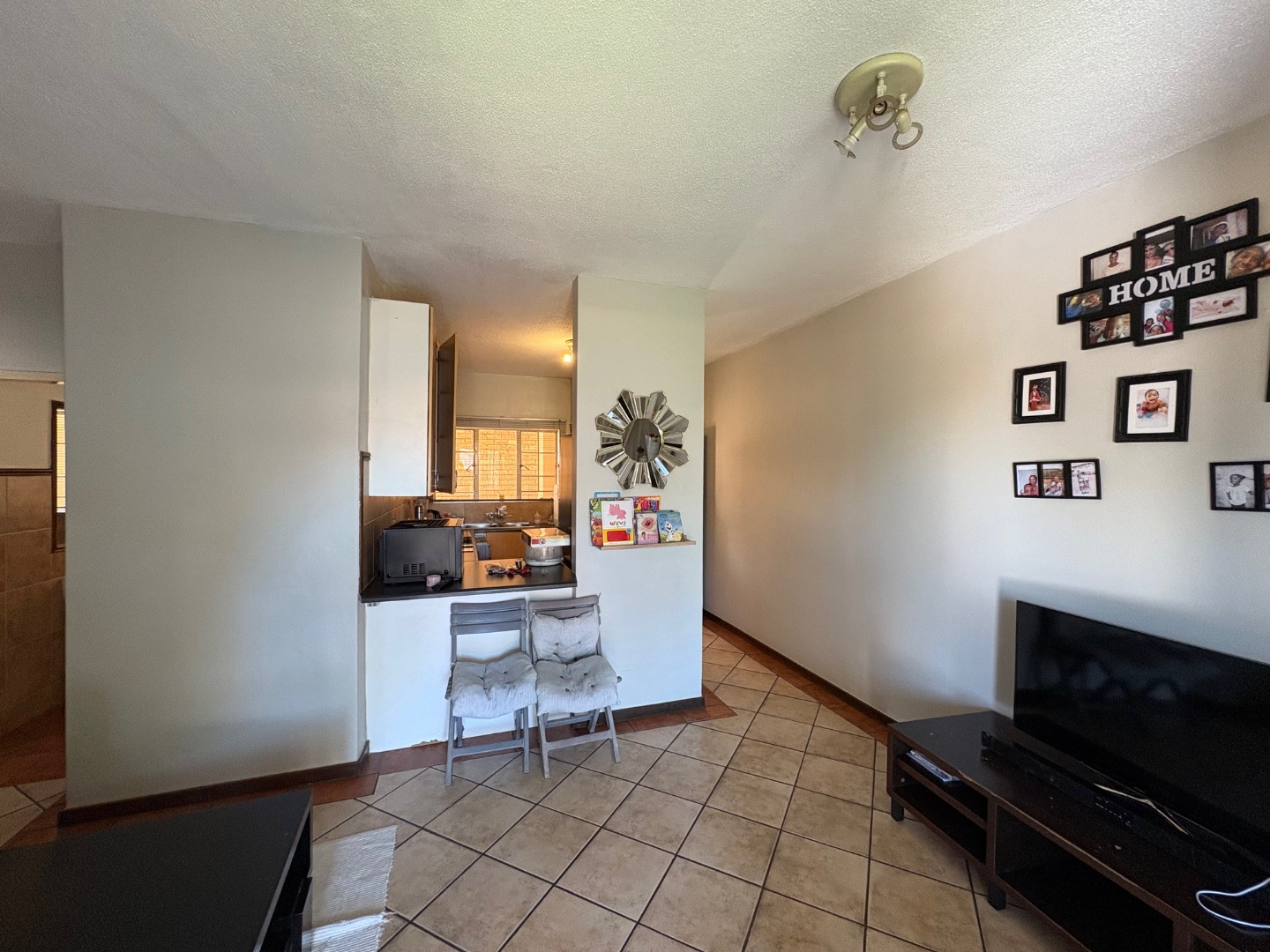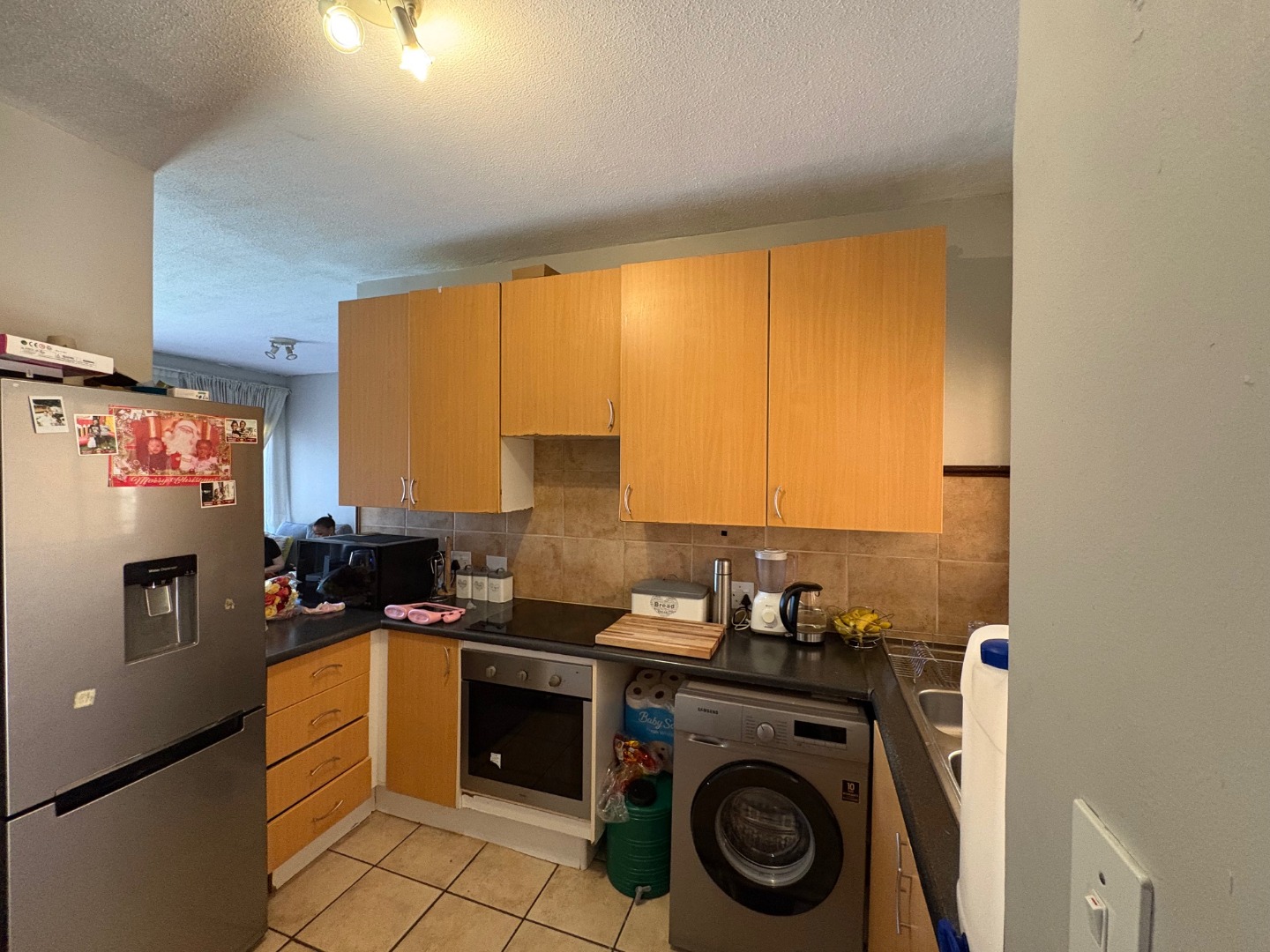 Step into the open-plan kitchen, which offers enough cupboard space, and under counter space for two appliances.