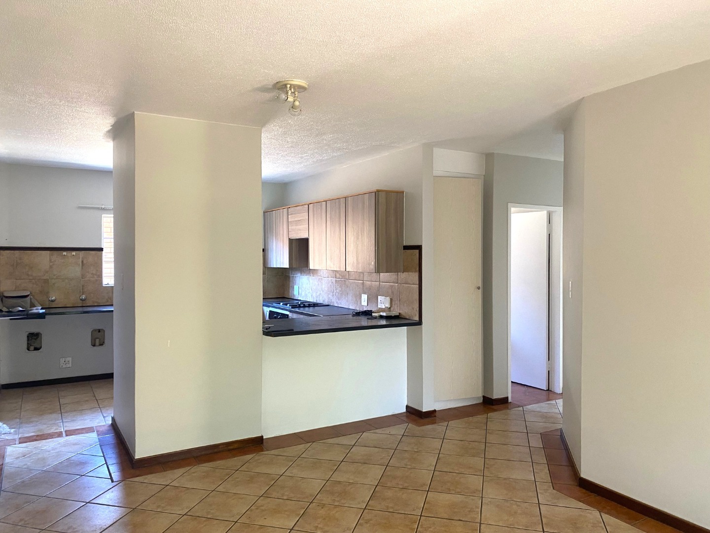 This inviting home boasts a beautifully fitted kitchen, with melamine counter tops, lots of cupboard space, electric stove and space for 2 u/c appliances..