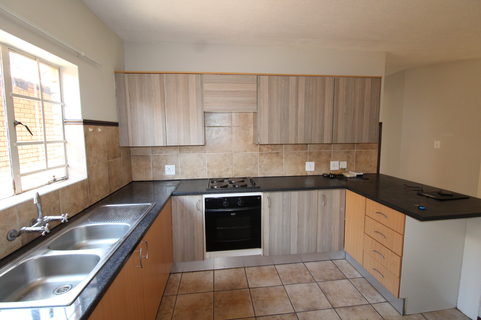 This inviting home boasts a beautifully fitted kitchen, with melamine counter tops, lots of cupboard space, electric stove and space for 2 u/c appliances..
