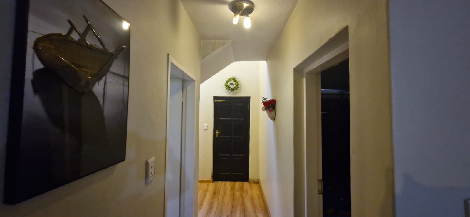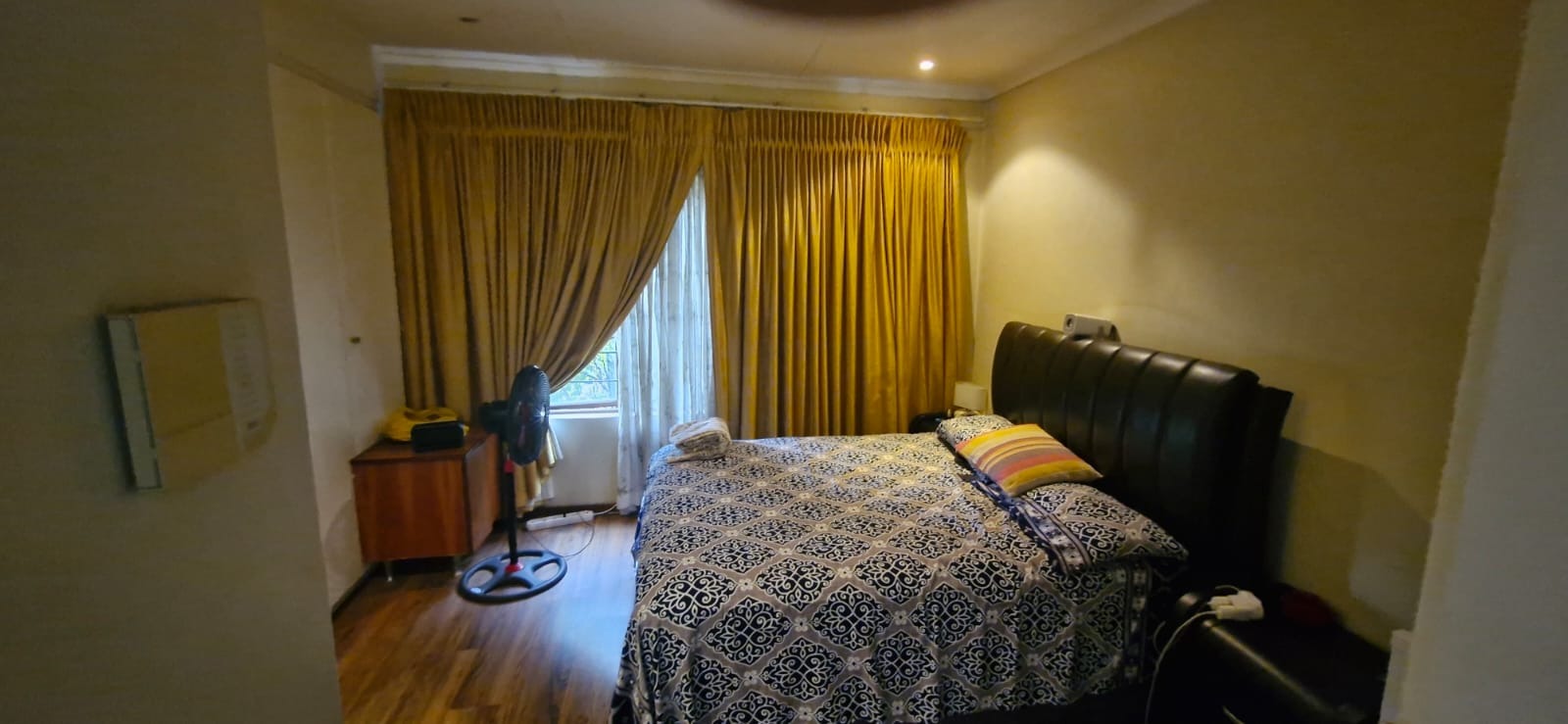 Laminated flooring adds a touch of warmth and modern elegance.