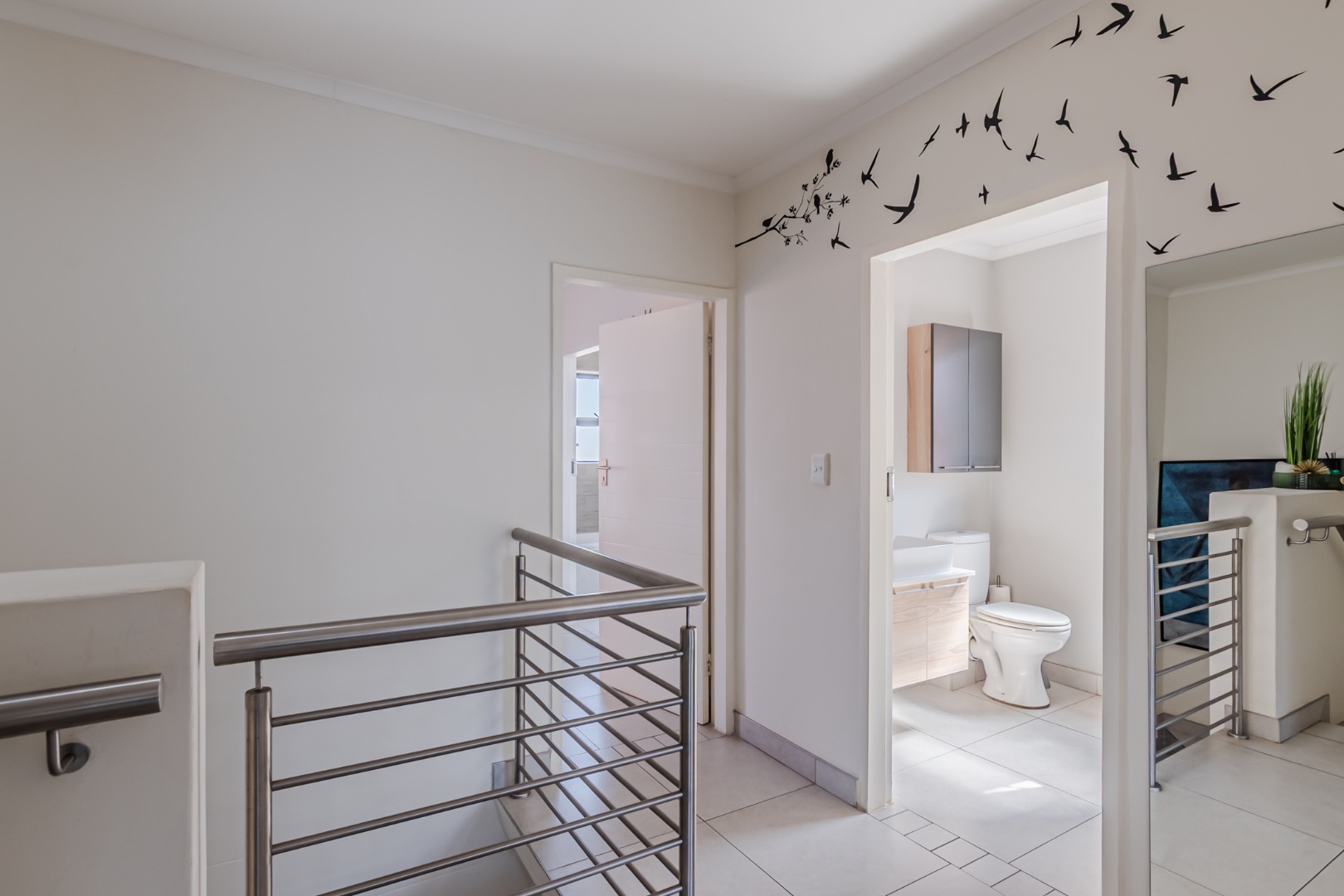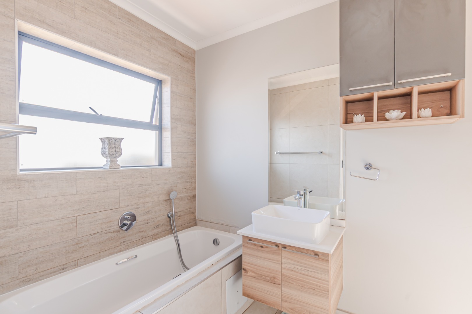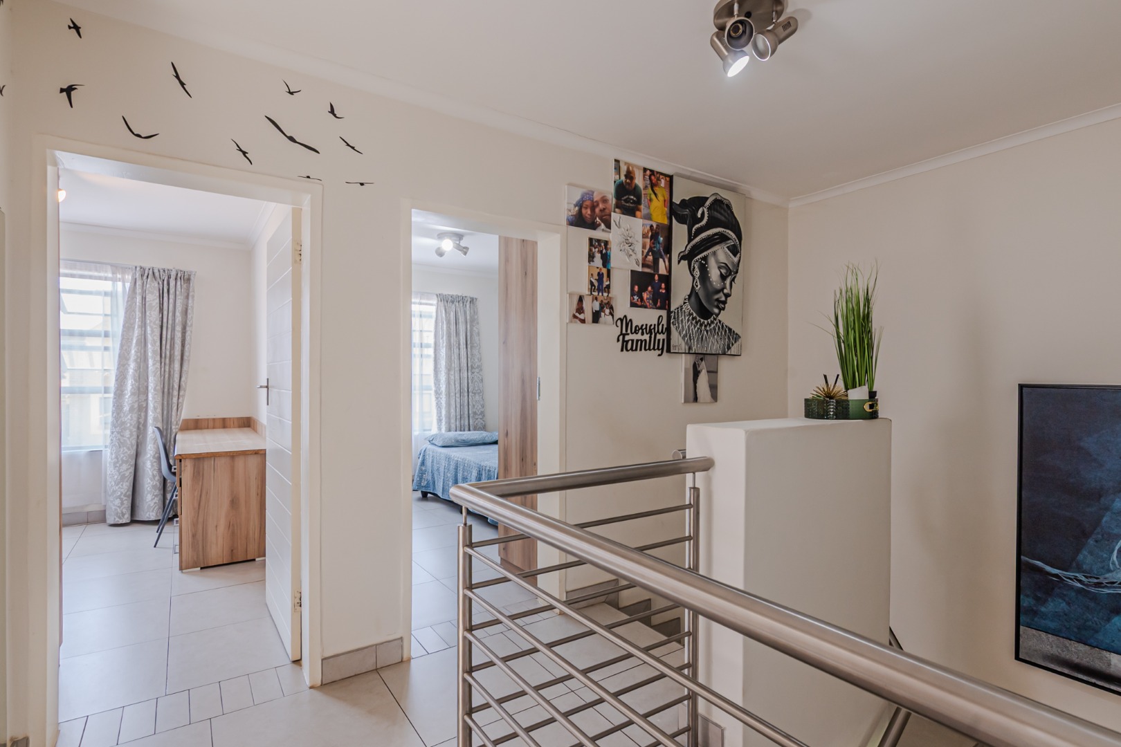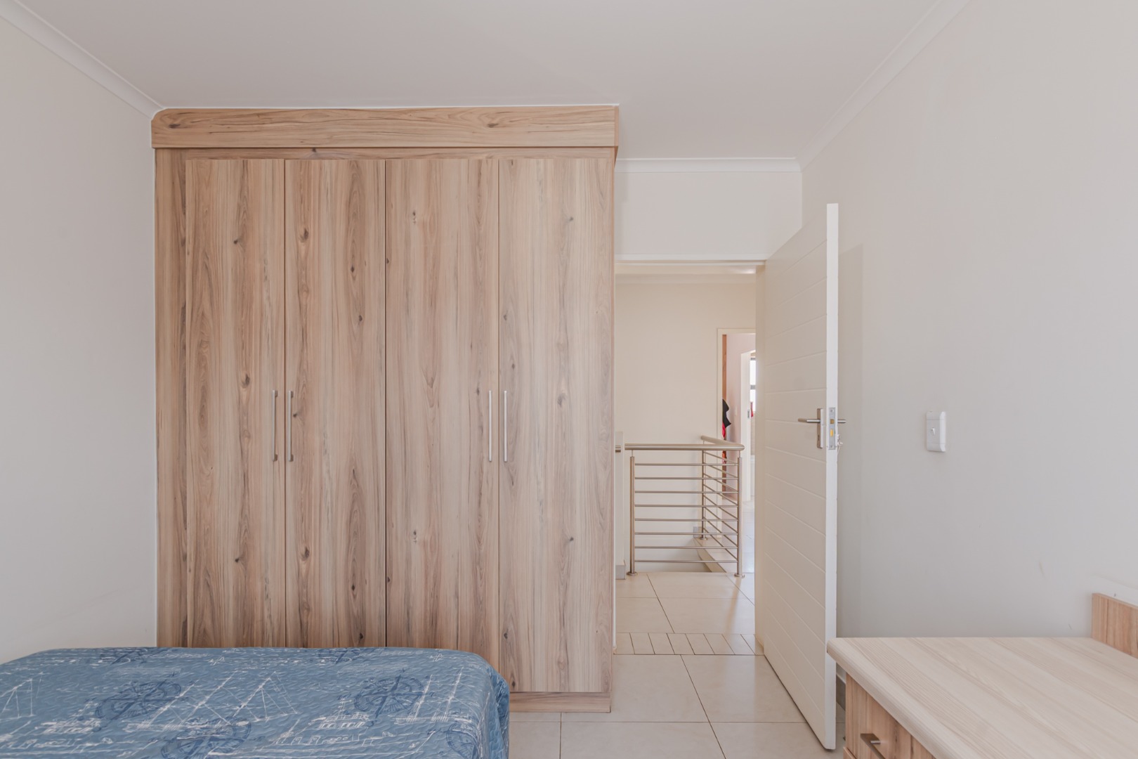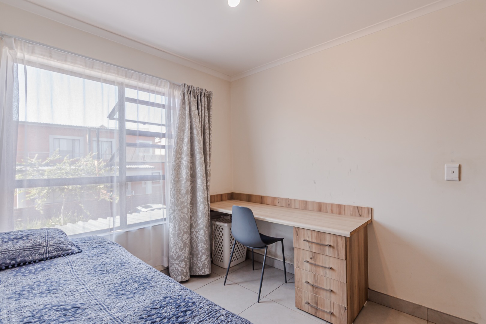 Outdoor amenities include a well-maintained garden and paving, providing a pleasant environment for pets, which are allowed. A double garage offers secure parking and additional storage. Residents benefit from the peace of mind provided by 24-hour security within the gated community, ensuring a safe and tranquil lifestyle. The home is also equipped with a gas geyser and fibre connectivity, catering to modern demands for efficiency and high-speed internet.