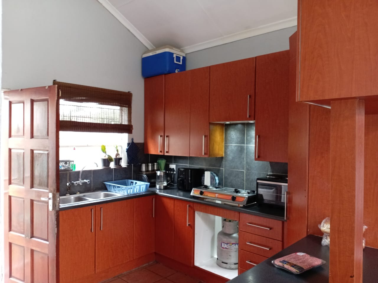 Downstairs is where life unfolds. Two well-sized bedrooms with fitted cupboards are serviced by a full bathroom, offering flexibility for family, guests, or even a work-from-home setup.