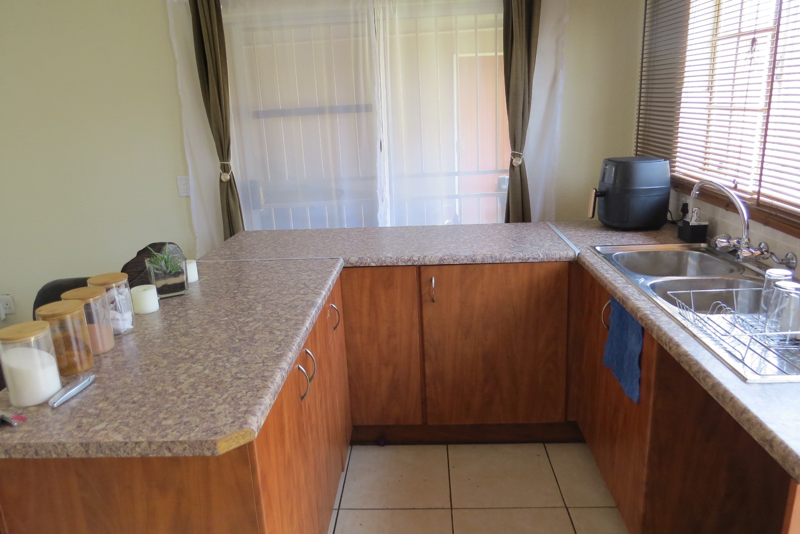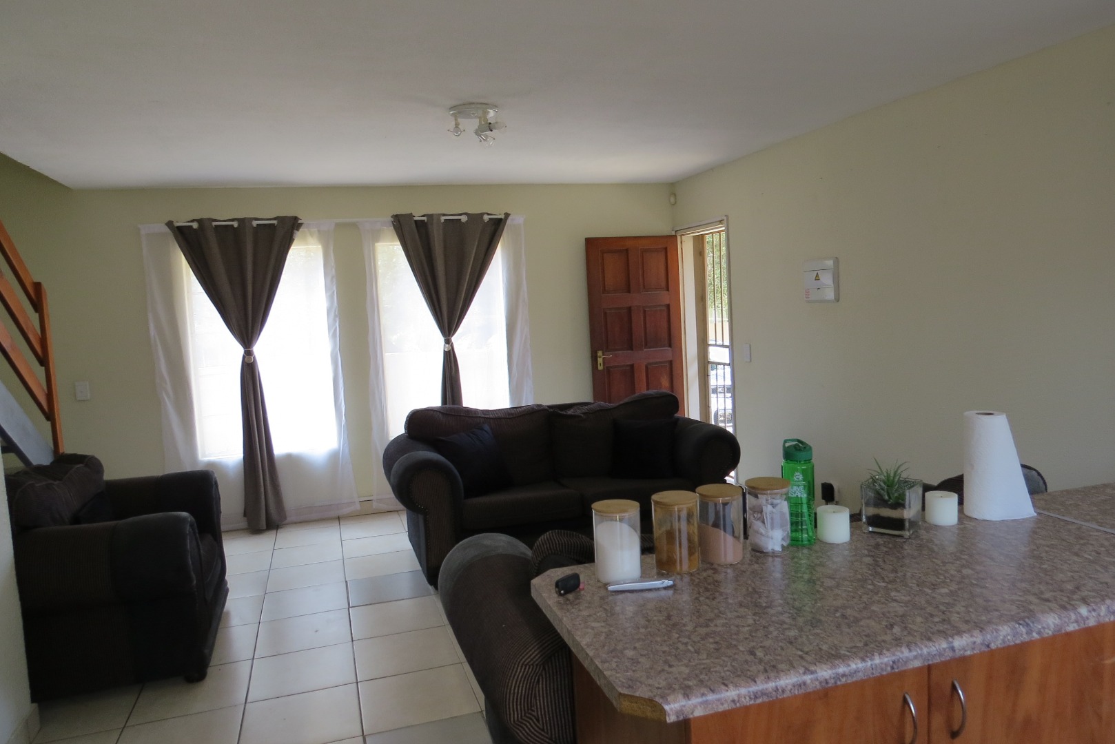 Step inside to discover a spacious 98 sqm floor plan, characterized by an open-plan living area with tiled flooring throughout. Abundant natural light streams in through large windows, creating a bright and airy atmosphere. A wooden staircase connects the levels, enhancing the flow of this comfortable home, also offering space underneath the staircase to be well utilised.
