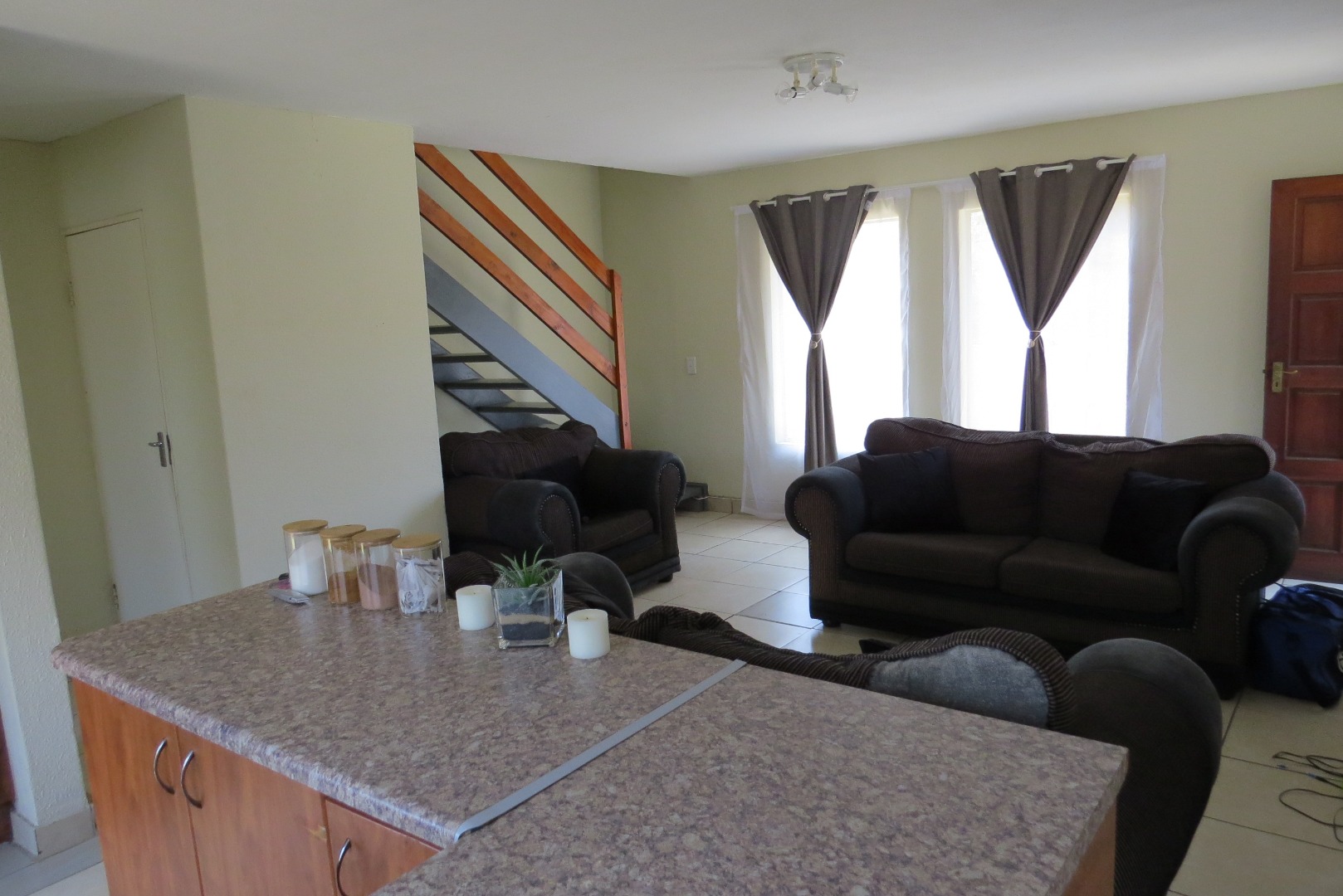 Step inside to discover a spacious 98 sqm floor plan, characterized by an open-plan living area with tiled flooring throughout. Abundant natural light streams in through large windows, creating a bright and airy atmosphere. A wooden staircase connects the levels, enhancing the flow of this comfortable home, also offering space underneath the staircase to be well utilised.