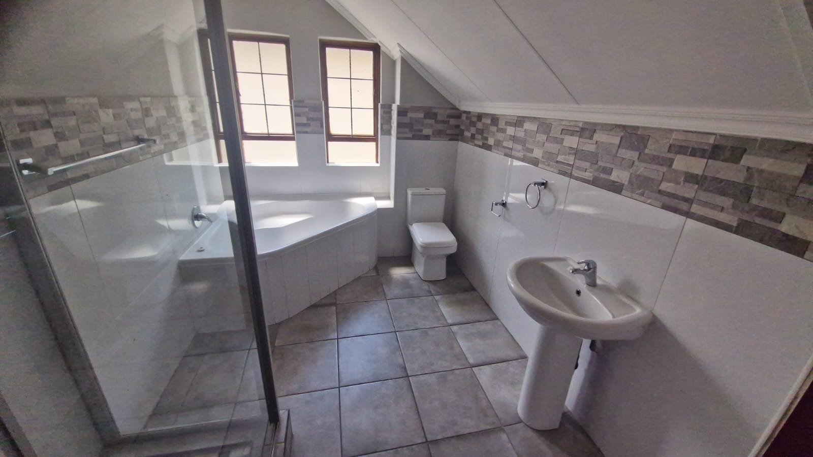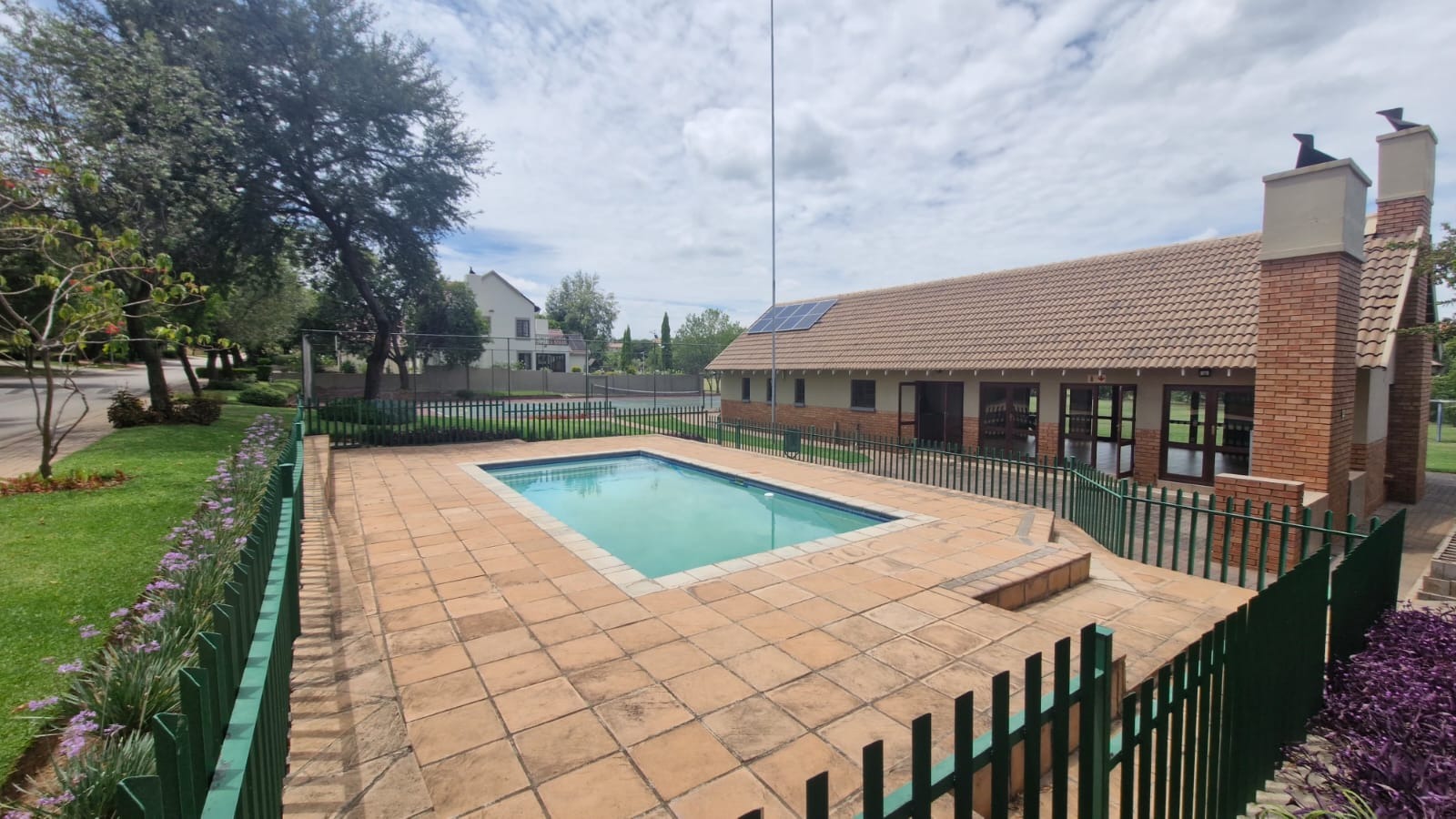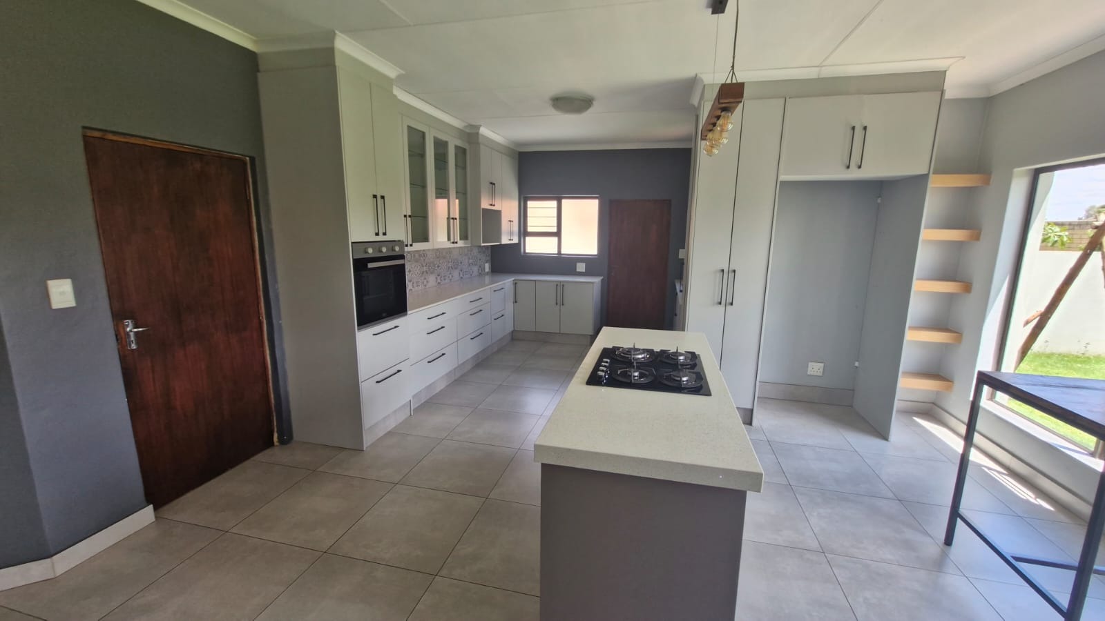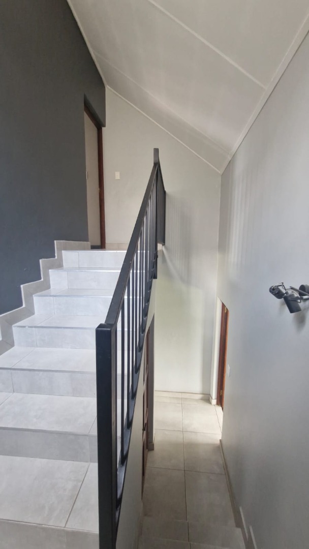 Discover this modern 3-bedroom, 2-bathroom home situated within a secure estate in Kosmosdal, Centurion. The property boasts an attractive, well-maintained exterior with a warm grey finish, tiled roof, and charming dormer windows, complemented by a double garage with wooden doors and a distinct cobblestone driveway. Manicured landscaping enhances its inviting kerb appeal. The interior features an open-plan layout, seamlessly connecting the living and kitchen areas. Modern light-colored tiled flooring, recessed lighting, and neutral grey walls create a contemporary ambiance. The kitchen is a highlight, equipped with grey cabinetry, light countertops, a central island with a gas hob, a built-in oven, and ample storage including a pantry. Large windows and sliding doors ensure abundant natural light throughout. Accommodation includes three comfortable bedrooms, with one featuring an en-suite bathroom. Bedrooms offer modern dark laminate flooring, built-in wardrobes, and two-tone paint schemes, providing both style and practicality. The home also benefits from a family TV room and a dedicated dining area. Outdoor living is catered for with a private garden, a built-in braai for entertaining, and access to a communal pool and club house within the estate. Practical features include air conditioning, solar panels, a battery inverter, and fibre connectivity, ensuring comfort and efficiency. Security is paramount with 24-hour security and burglar bars. Kosmosdal offers a convenient lifestyle in Centurion, known for its accessibility and growing community. This area provides a balance of suburban tranquility and easy access to urban amenities. Key Features: * 3 Bedrooms, 2 Bathrooms (1 En-suite) * Modern Open-Plan Living & Kitchen * Double Garage & 4 Parking Spaces * Private Garden with Built-in Braai * Communal Pool & Club House Access * Solar Panels & Battery Inverter * Fibre Connectivity & Air Conditioning * 24-Hour Security Estate with Burglar Bars * 500 sqm Erf Size, 255 sqm Floor Size